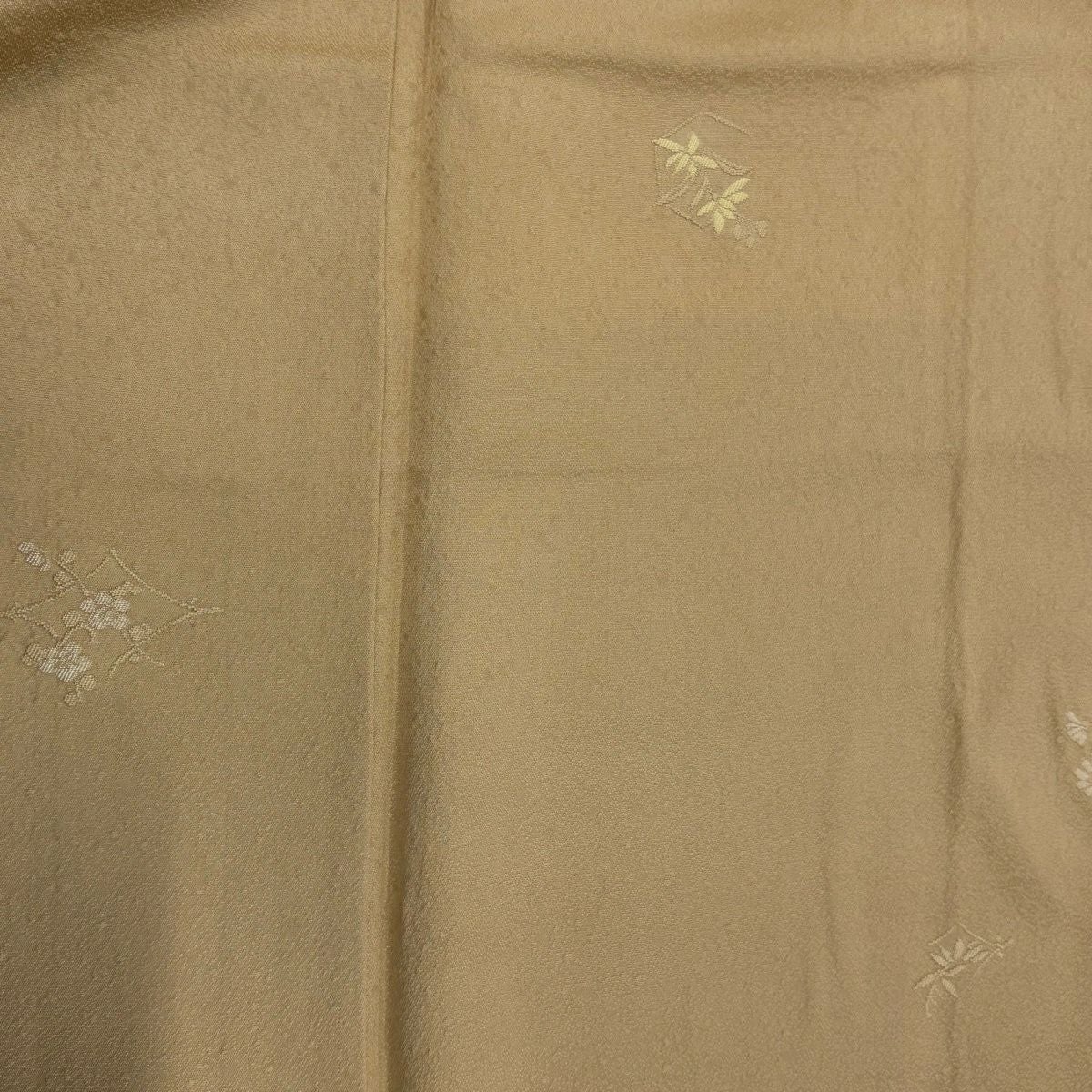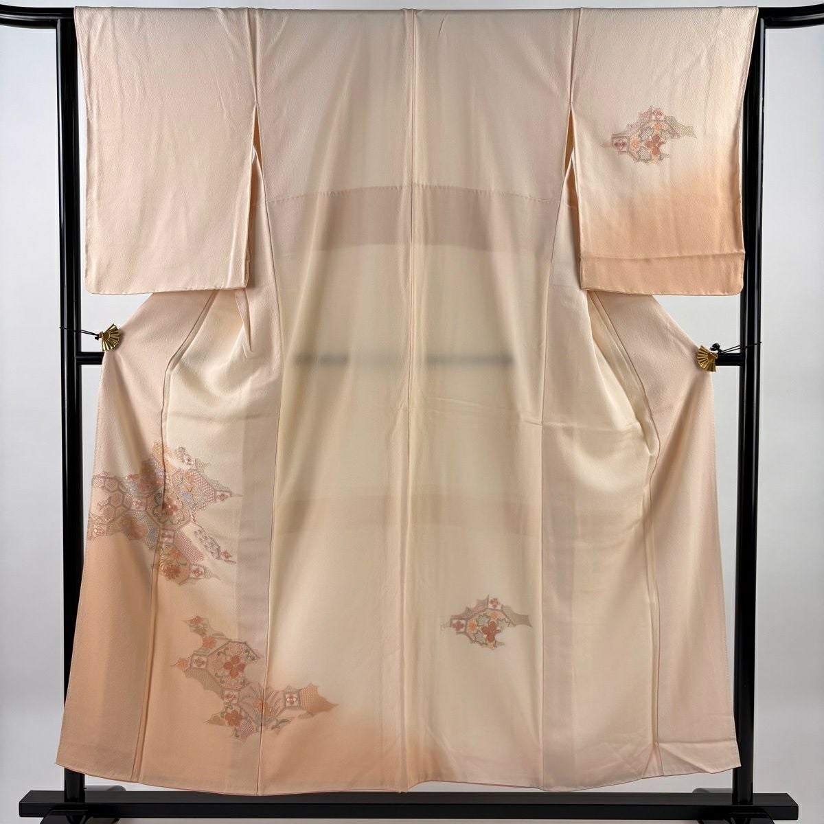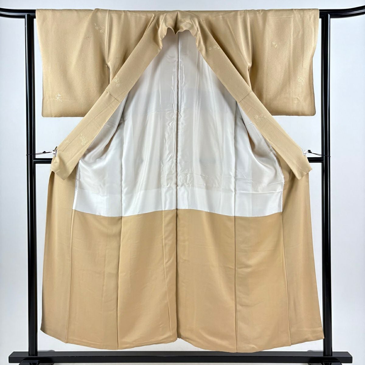 訪問着 身丈163.5cm 裄丈64cm M 袷 草花 丸紋 刺繍 金彩 ピンクベージュ 正絹 秀品