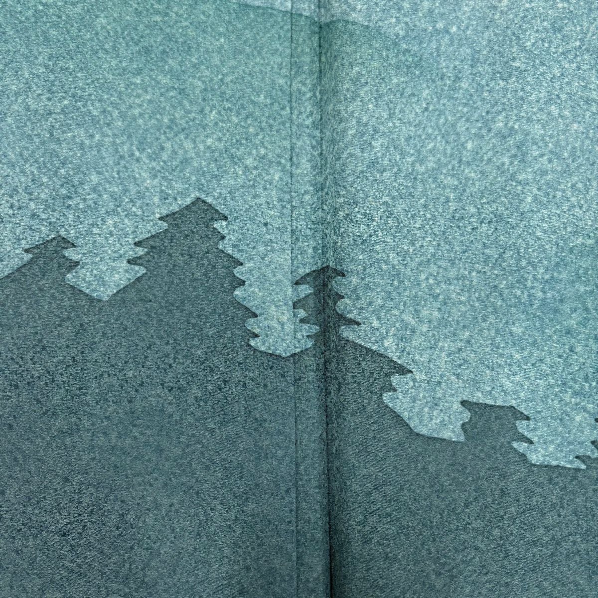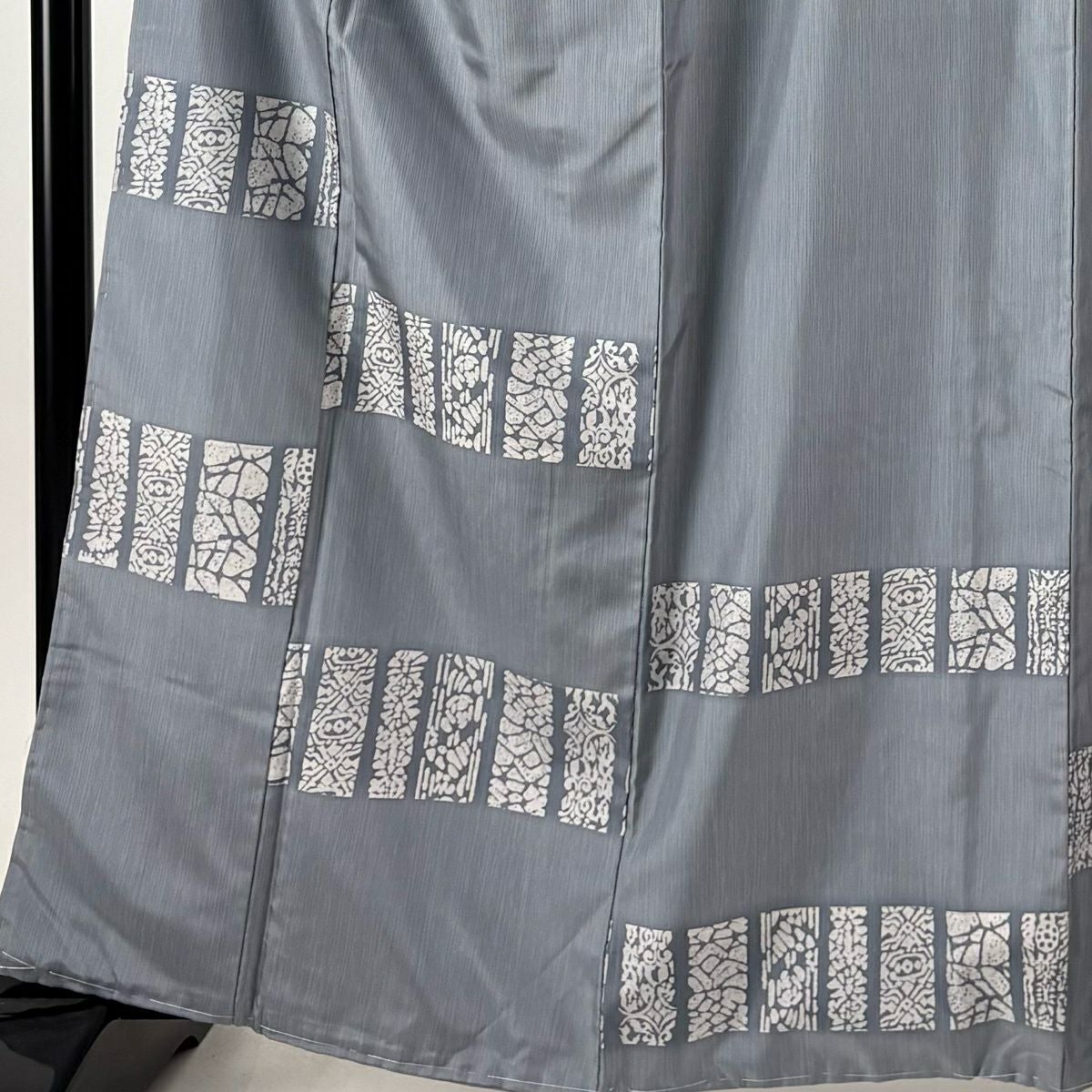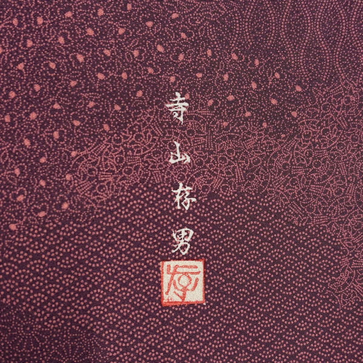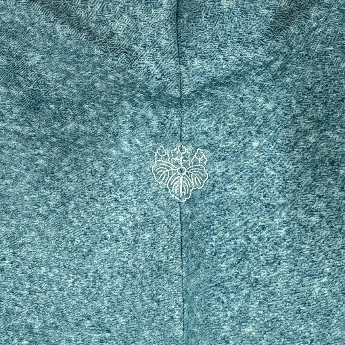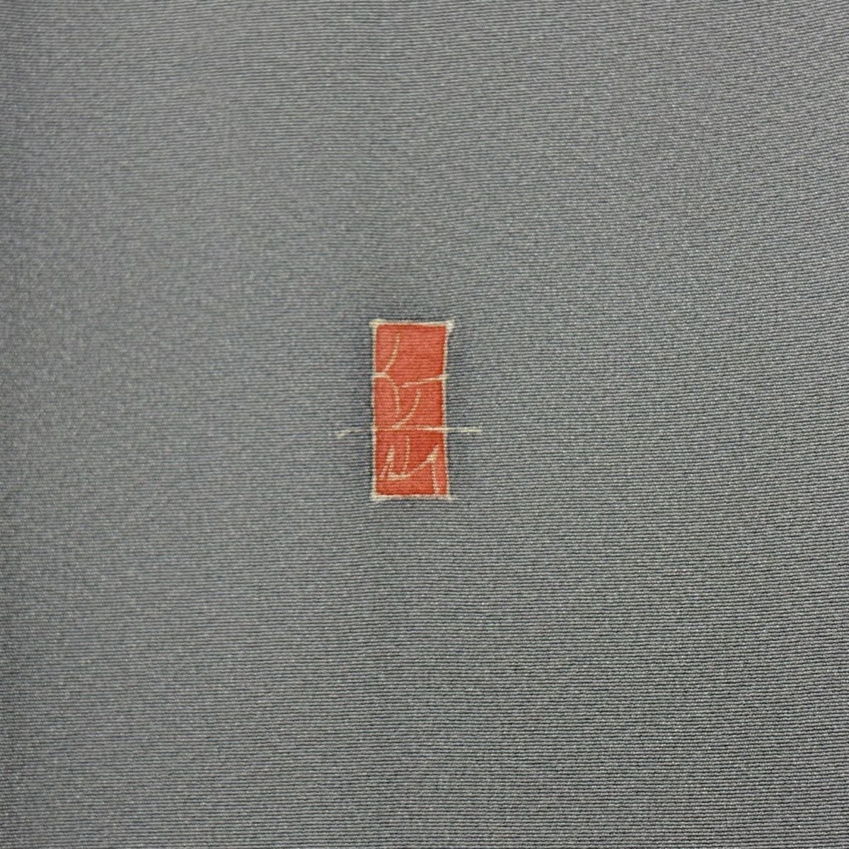 小紋 身丈162cm 裄丈66cm M 袷 斉藤三才 やまと 落款あり ぼかし柄 灰緑 正絹 秀品 一つ紋