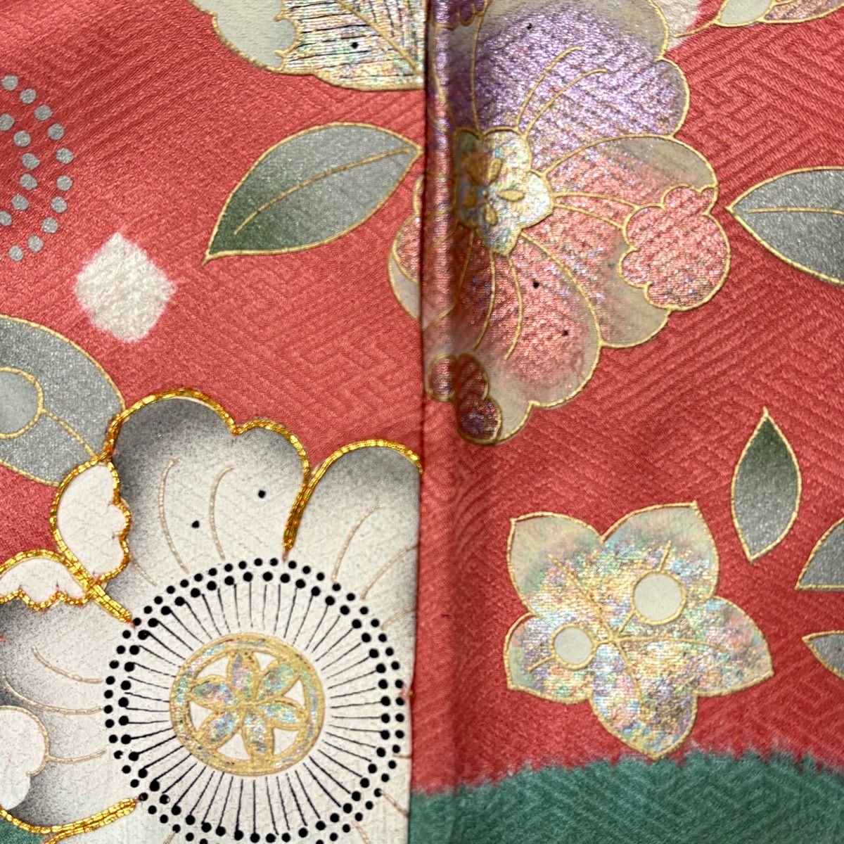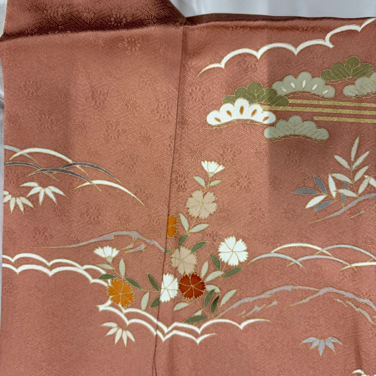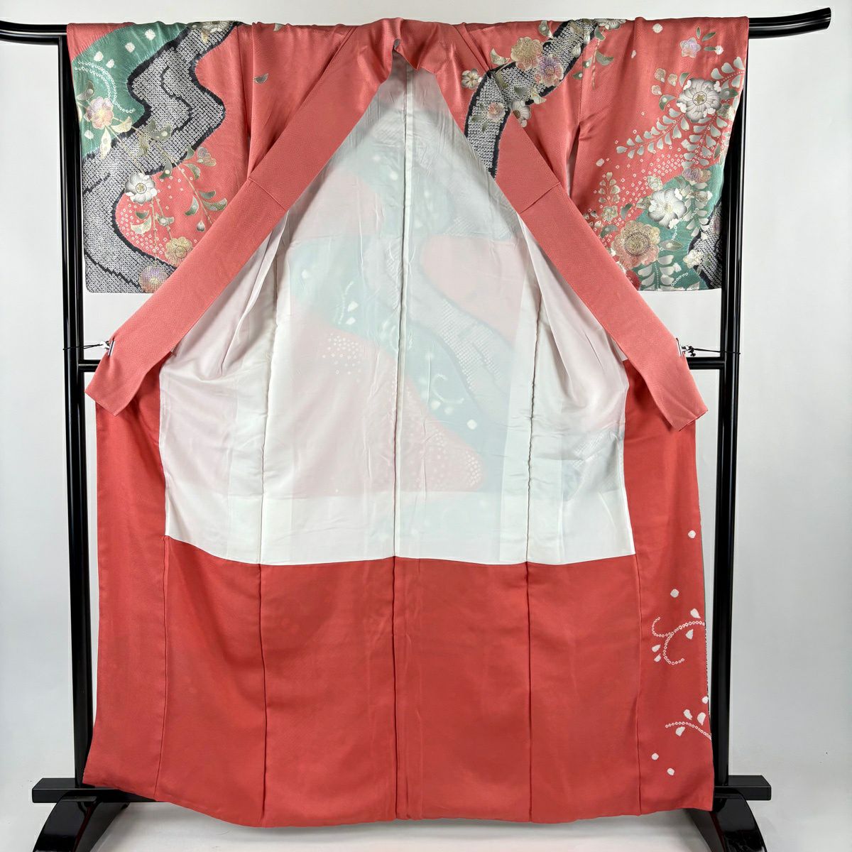 【美品】 振袖 身丈153.5cm 裄丈62cm S 袷 二尺袖 枝梅 雲文 金通し 金彩 赤茶 正絹 秀品