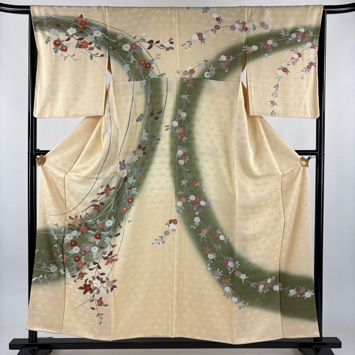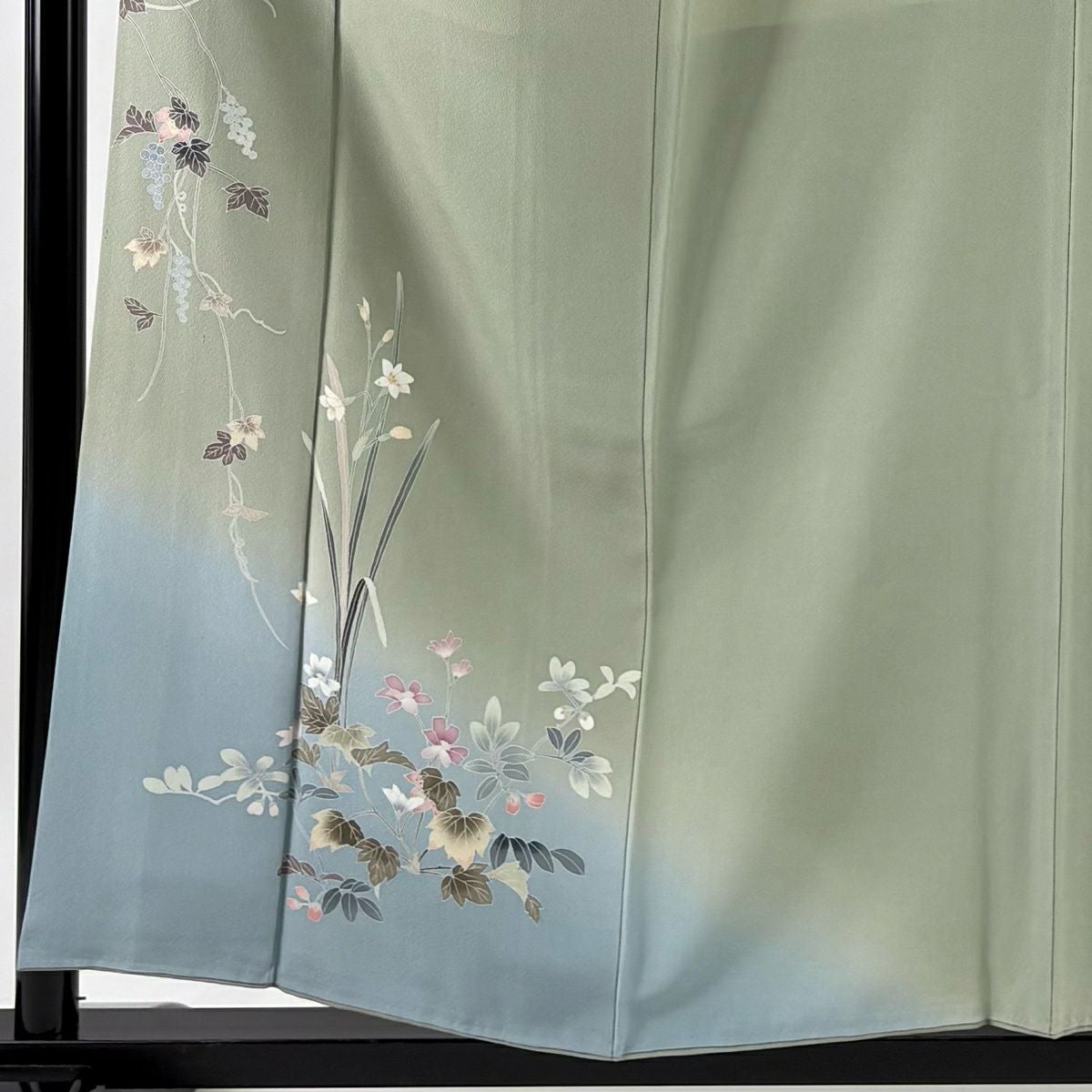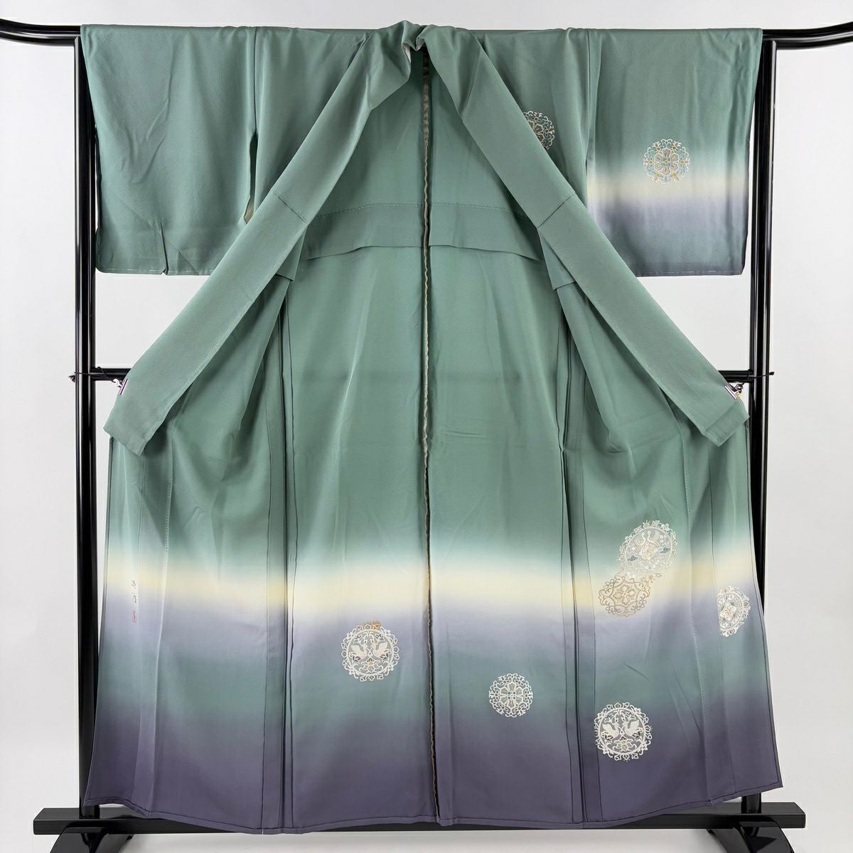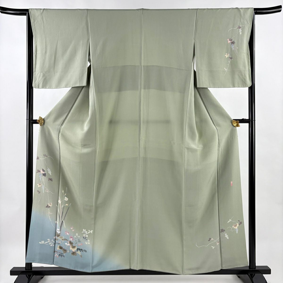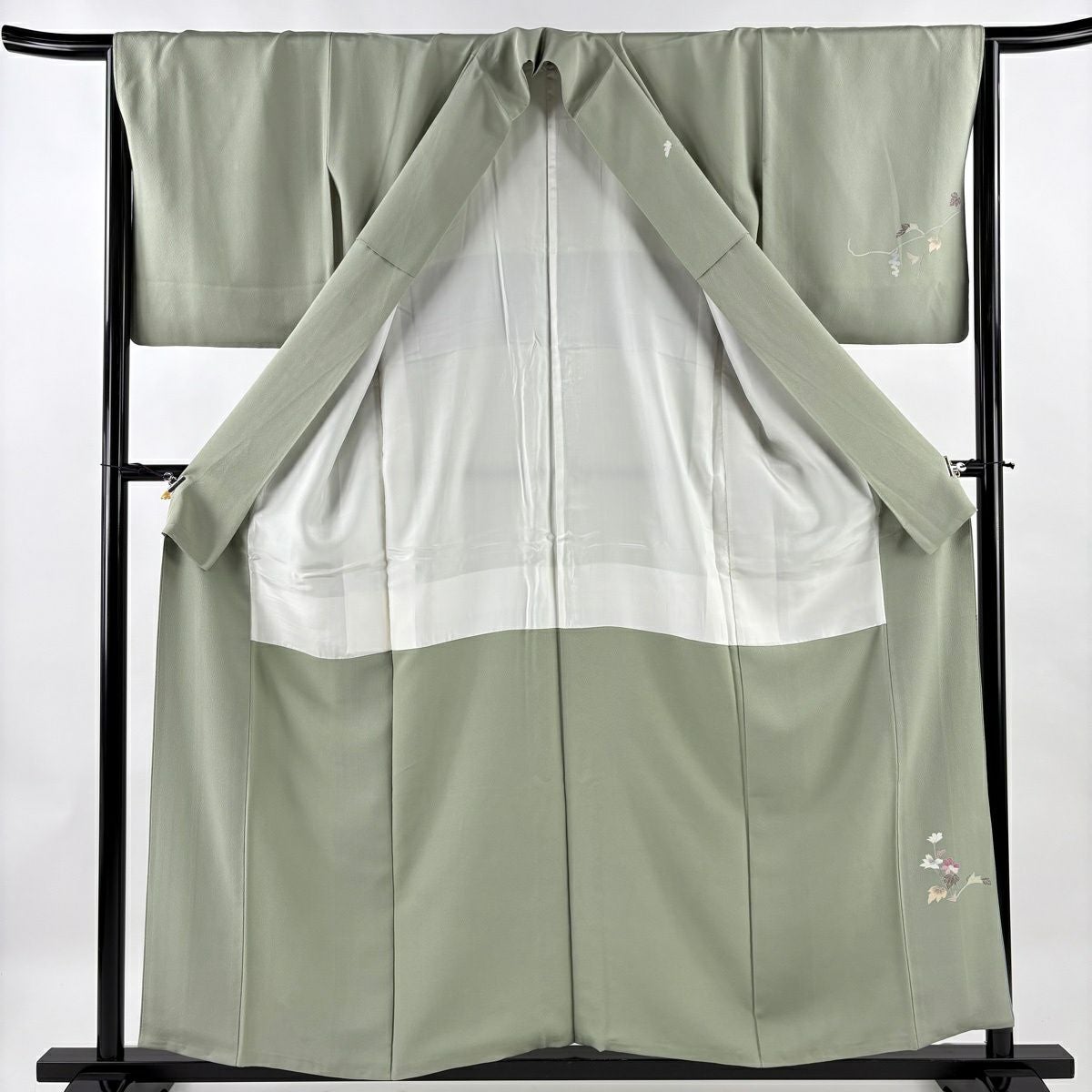 30%OFF 訪問着 身丈162.5cm 裄丈63.5cm S 袷 草花 几帳 刺繍 薄緑 正絹 秀品 K30