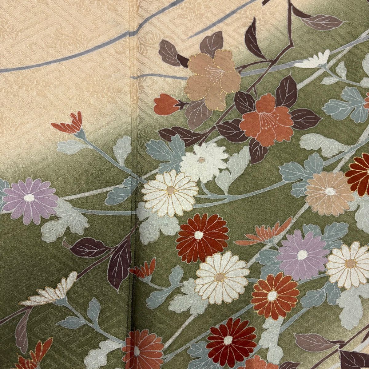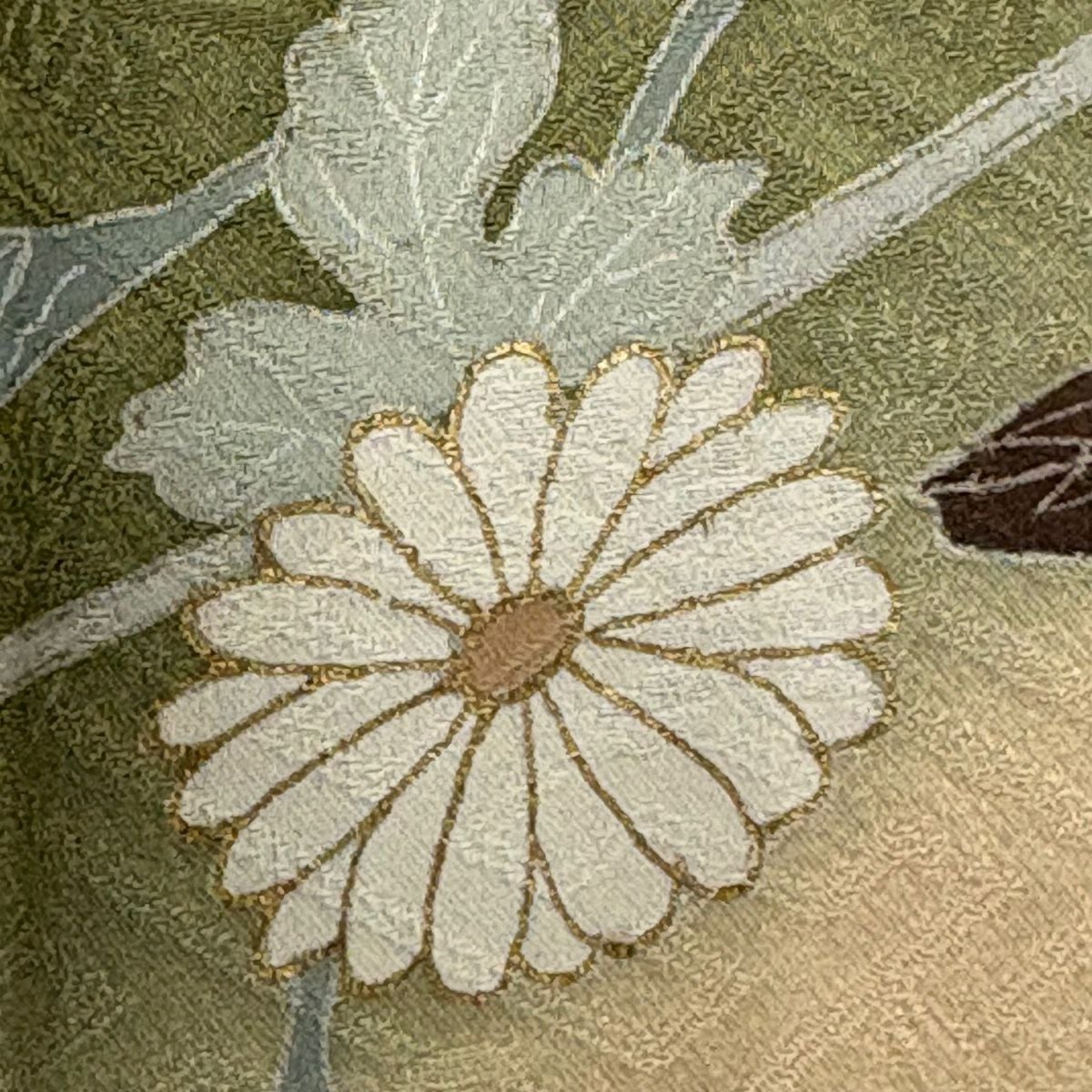 30%OFF 訪問着 身丈171cm 裄丈66.5cm M 袷 菊 梅 金糸 金彩 青緑 正絹 秀品 K30