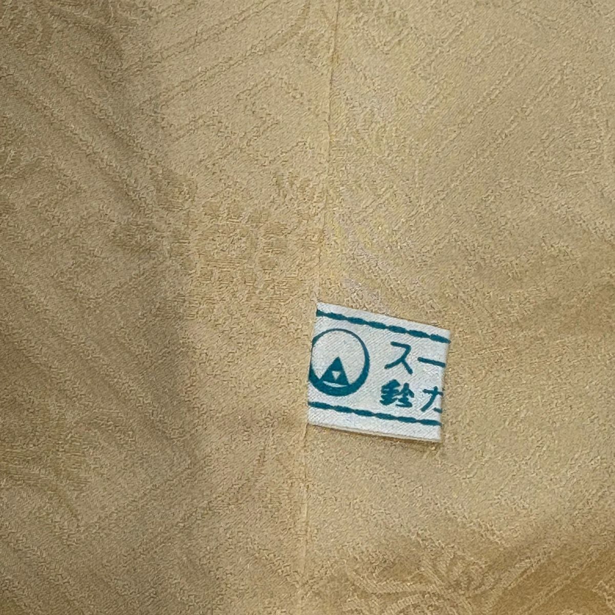 訪問着 身丈162cm 裄丈65.5cm M 袷 落款あり 扇 花鳥 染め分け ぼかし 山吹色 正絹 秀品