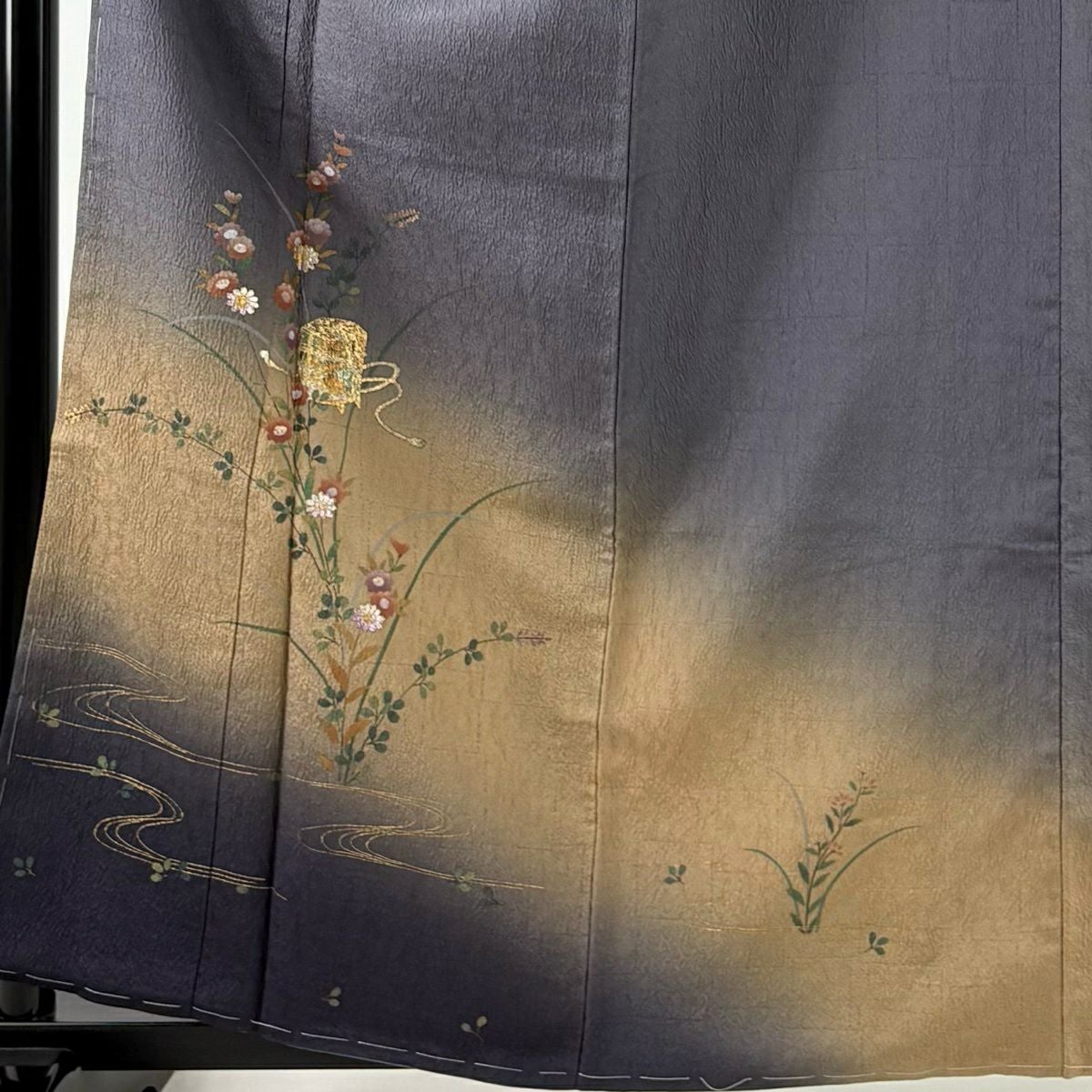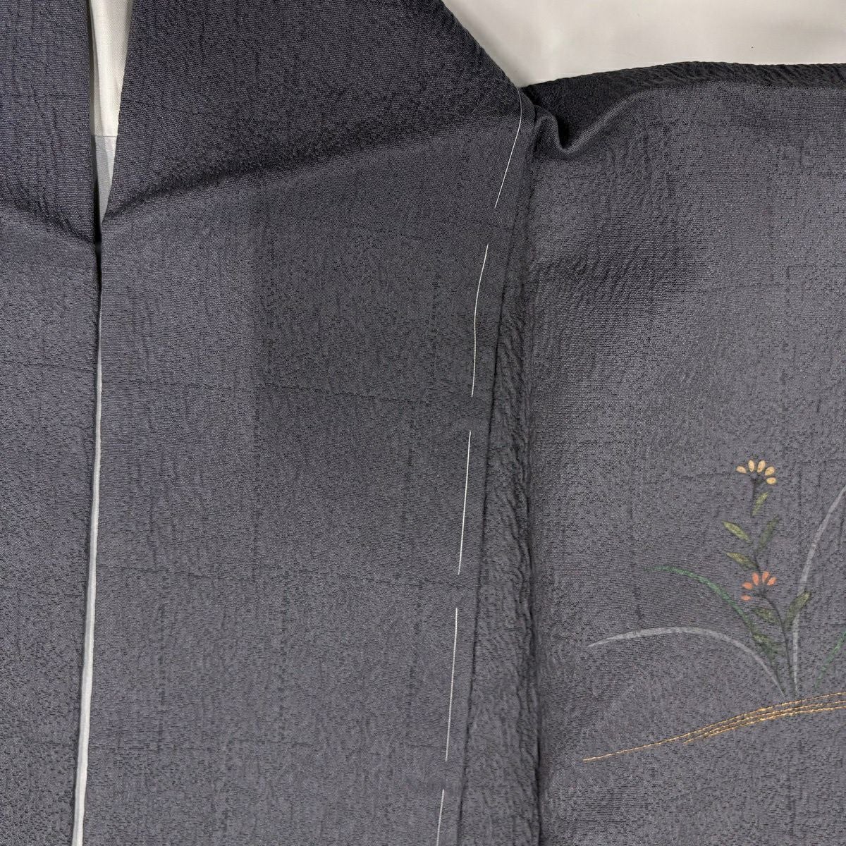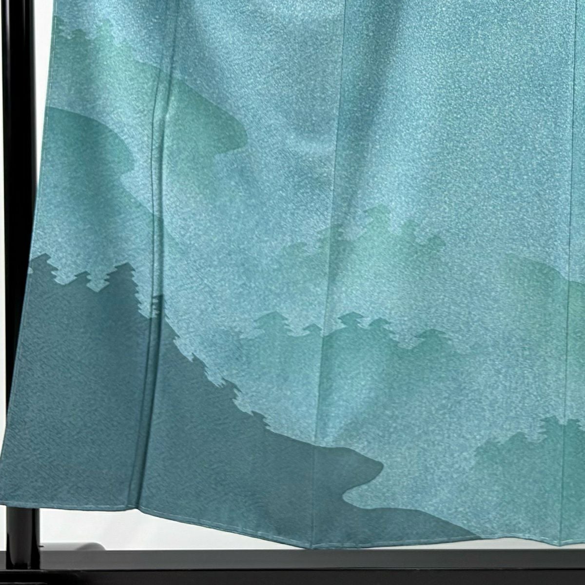 訪問着 身丈161cm 裄丈65.5cm M 袷 落款あり 鴛鴦 枝花 ぼかし 染分け 青灰色 正絹 秀品