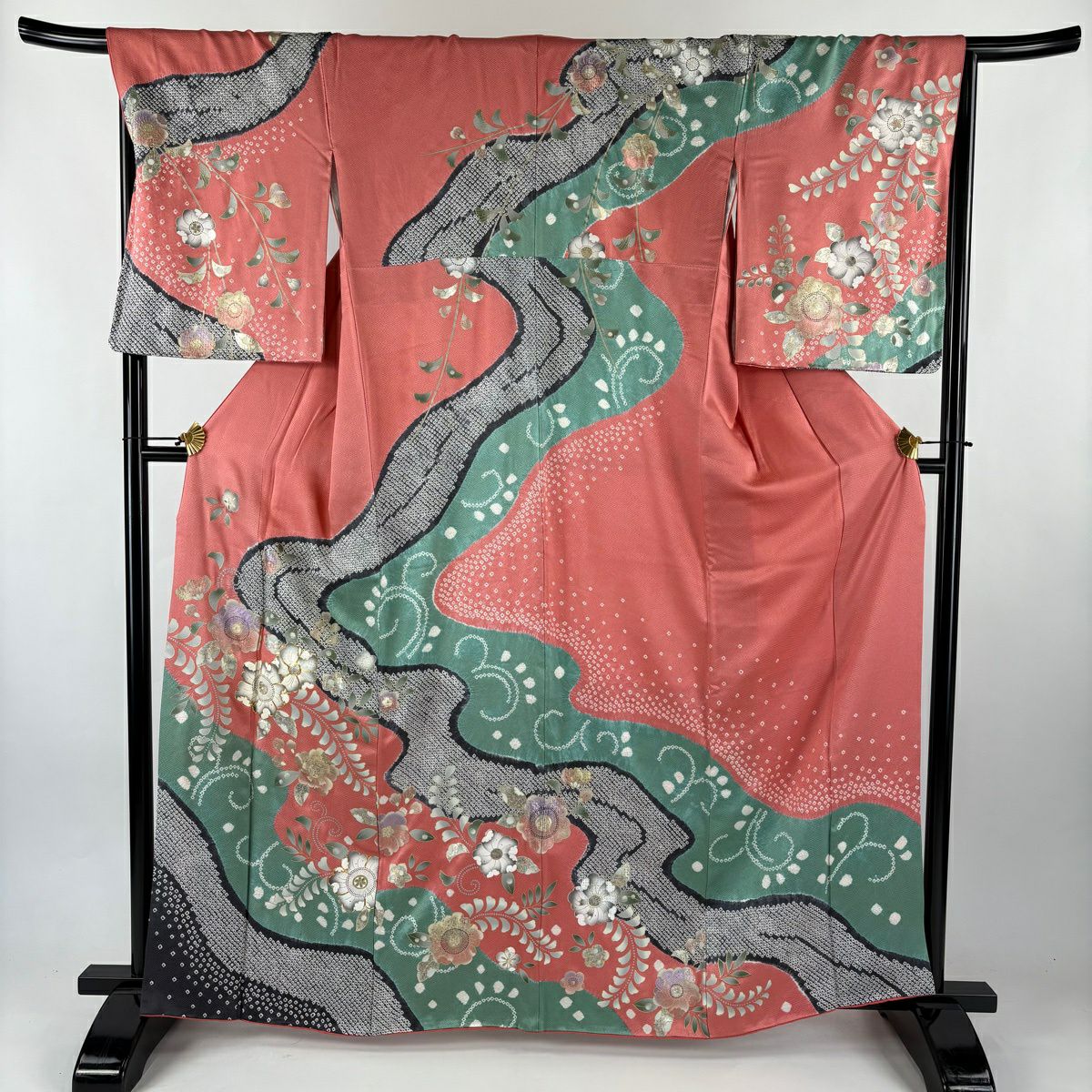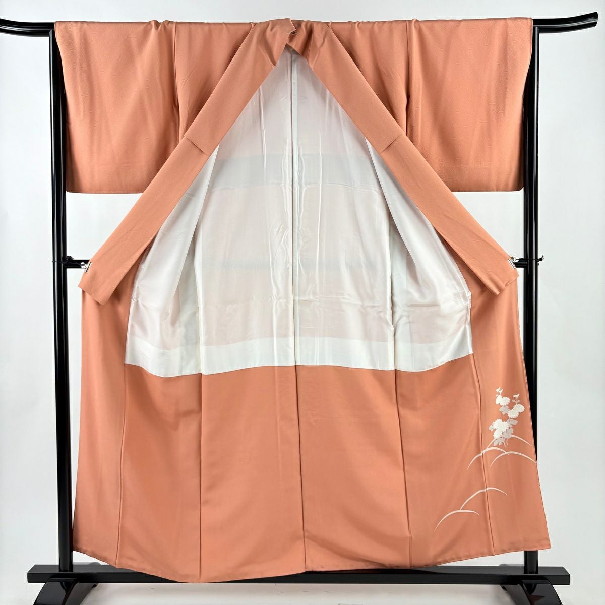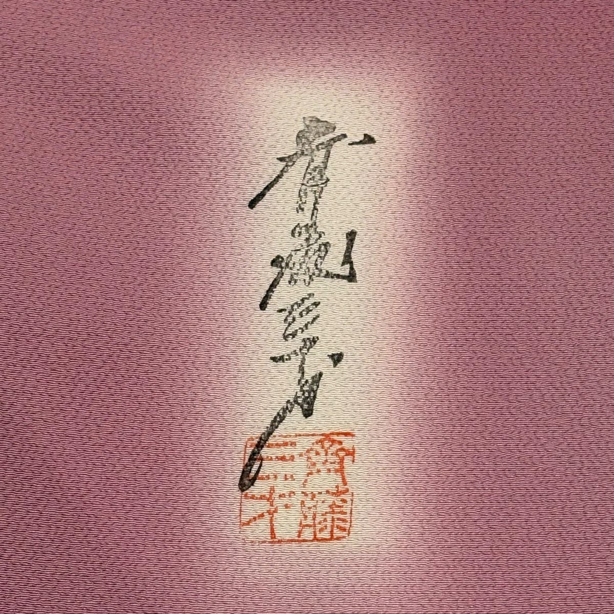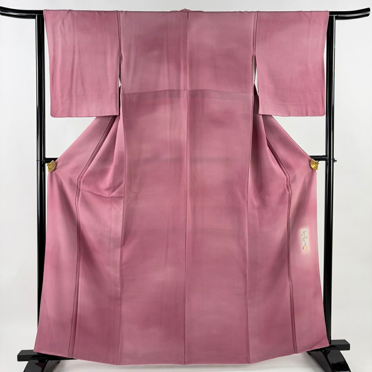 訪問着 身丈162.5cm 裄丈66.5cm M 袷 落款あり 菊 草花 ぼかし ピンク 正絹 秀品 一つ紋