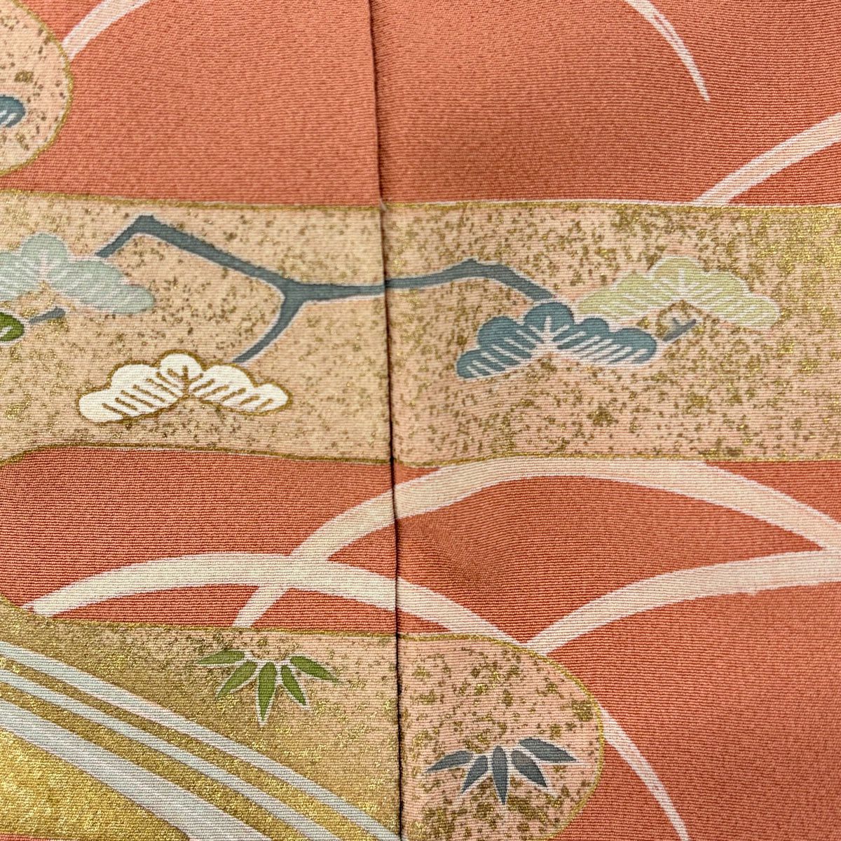 道中着 身丈100cm 裄丈64cm M 和装コート 着物衿 幾何学模様 ピンクベージュ 正絹 秀品
