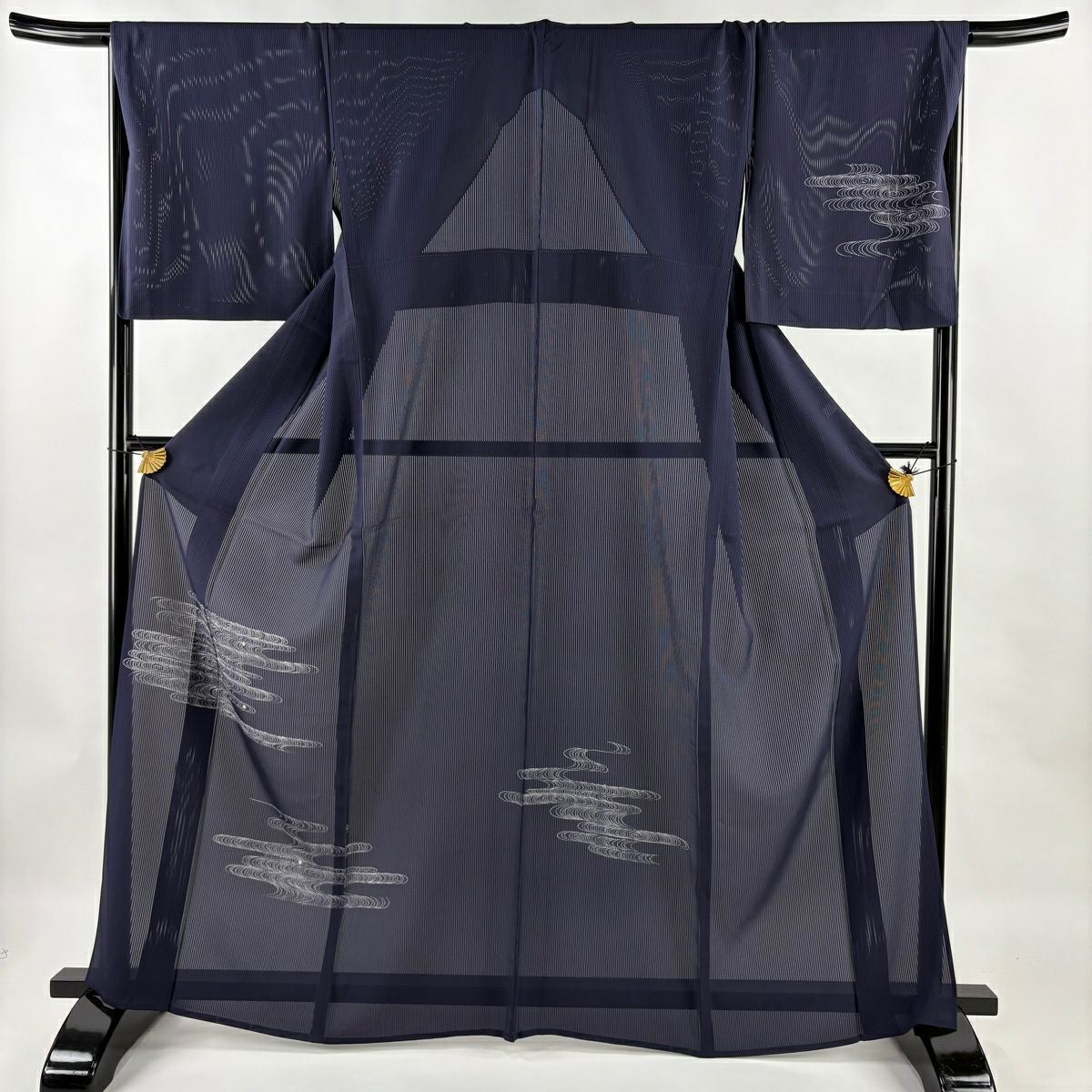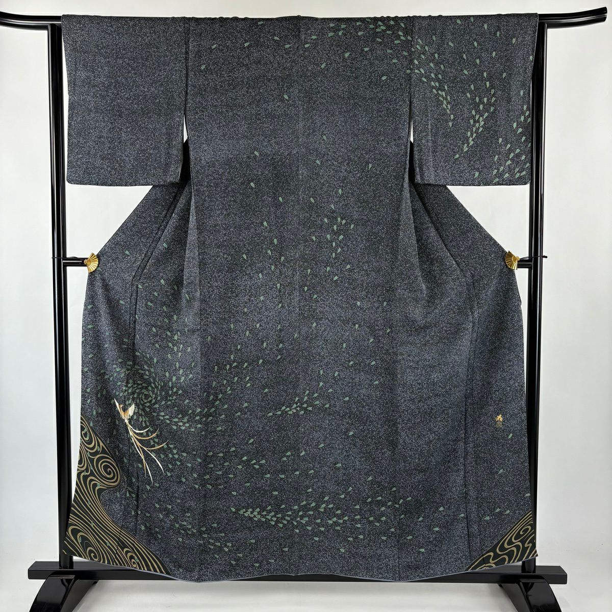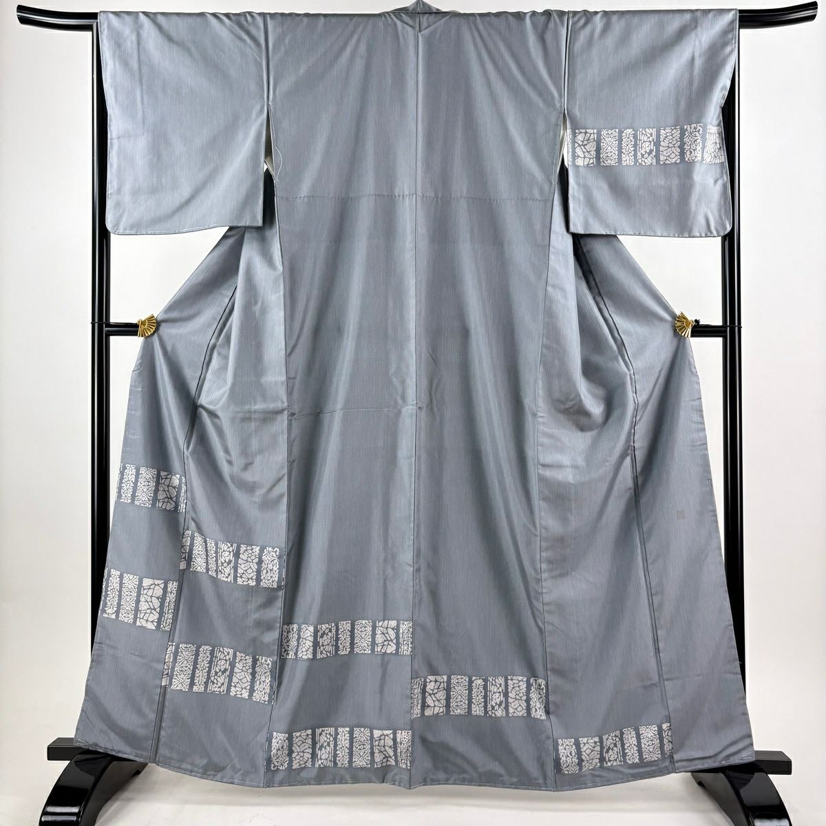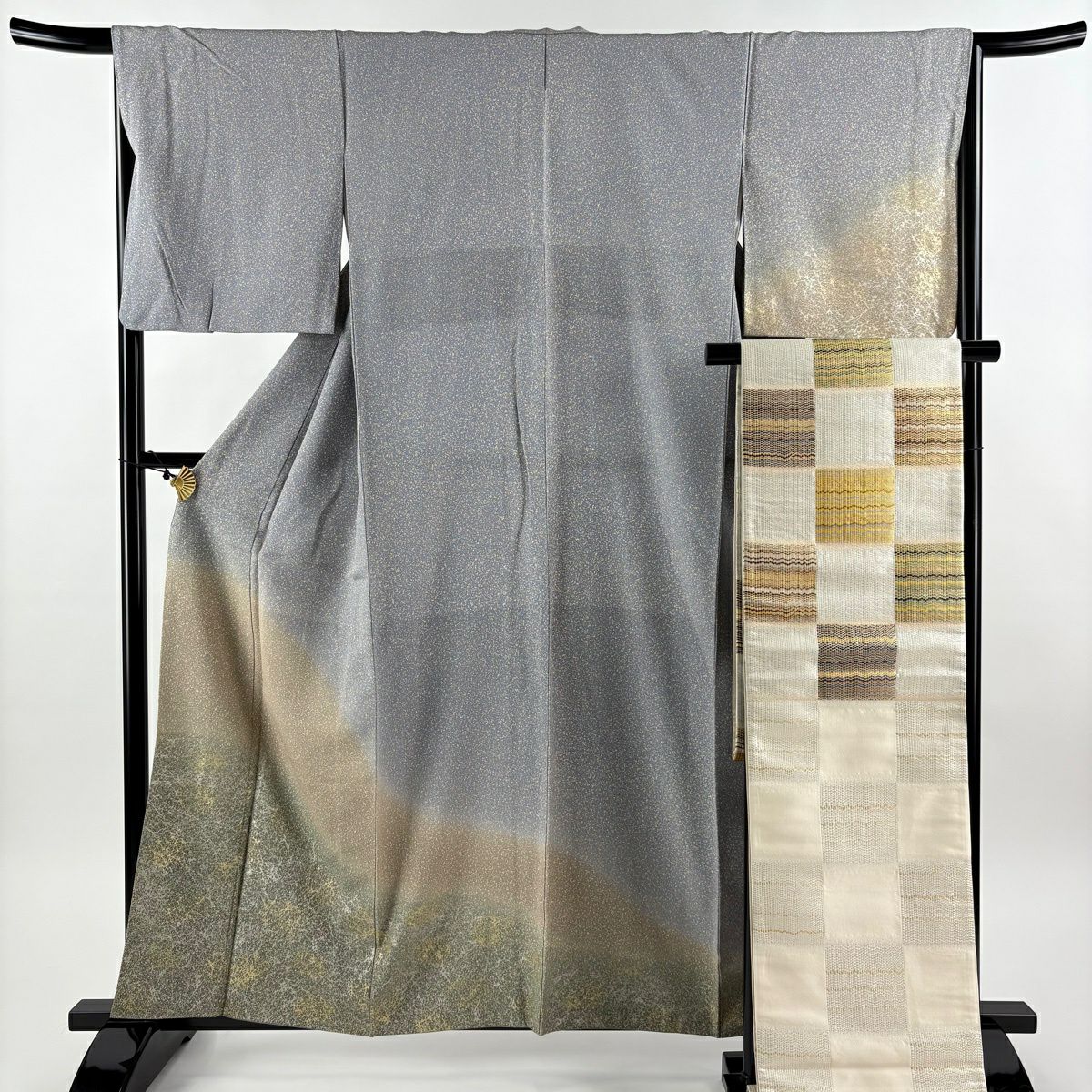30%OFF 訪問着 身丈156.5cm 裄丈65cm M 袷 松 波 金糸 金彩 青灰色 正絹 秀品 K30
