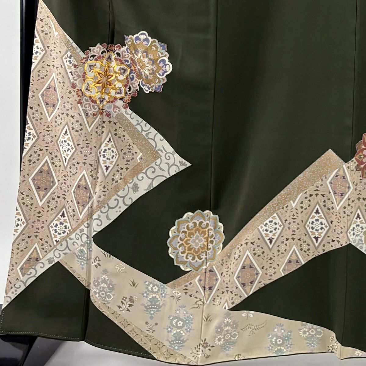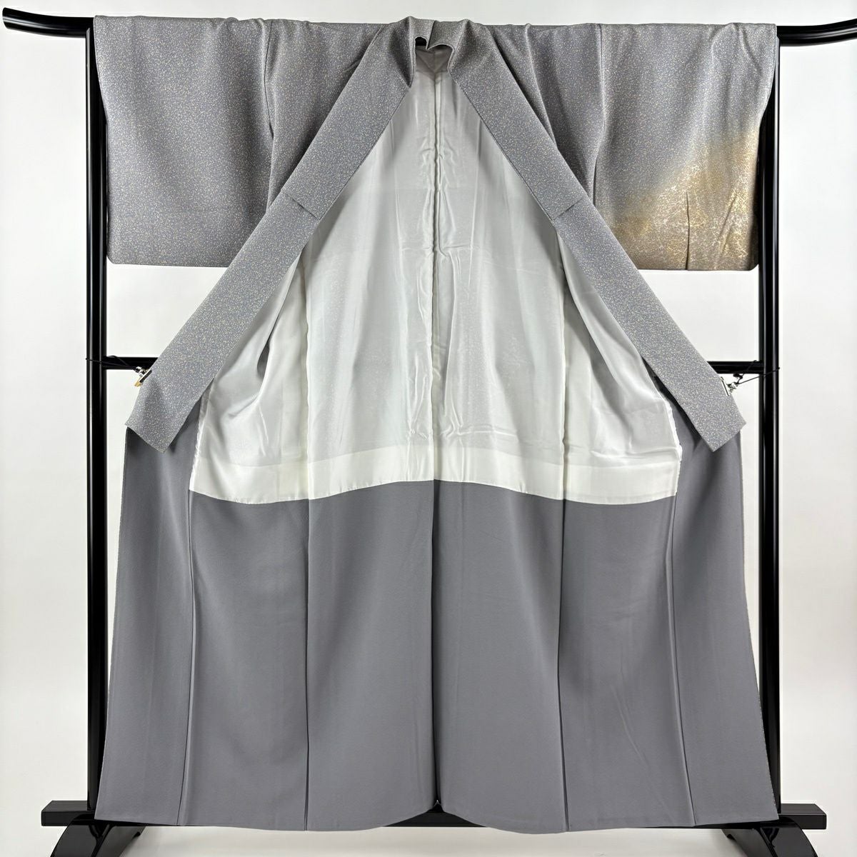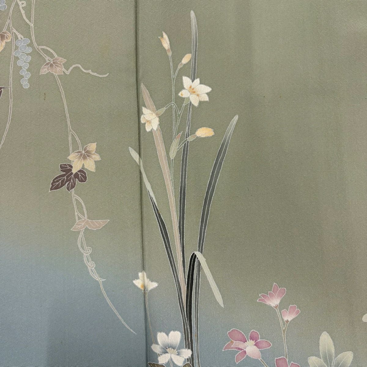 30%OFF 訪問着 身丈156cm 裄丈66cm M 袷 貝合わせ 草花 金銀彩 灰緑 正絹 秀品 K30