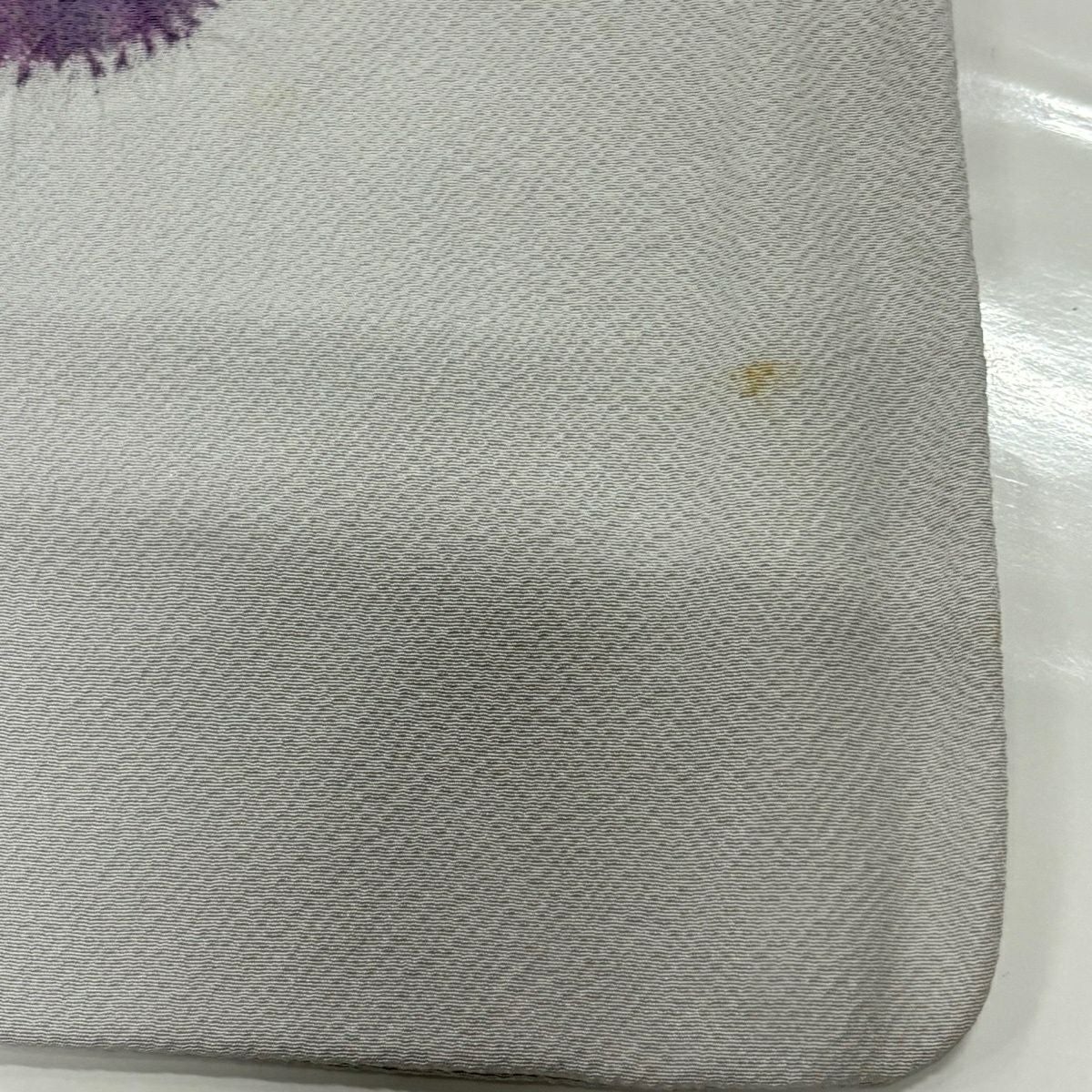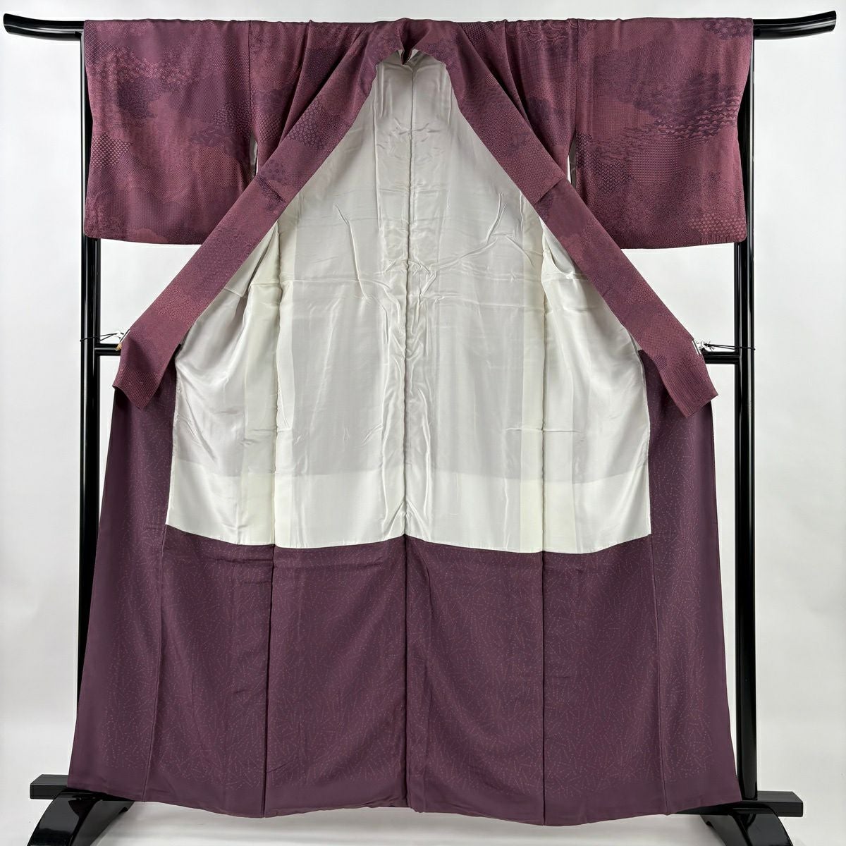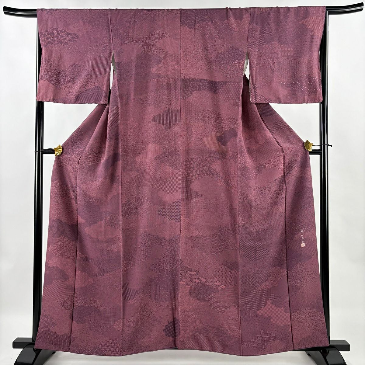【美品】 小紋 身丈162cm 裄丈67.5cm L 袷 落款あり 地紋 ぼかし 灰紫 正絹 秀品 一つ紋