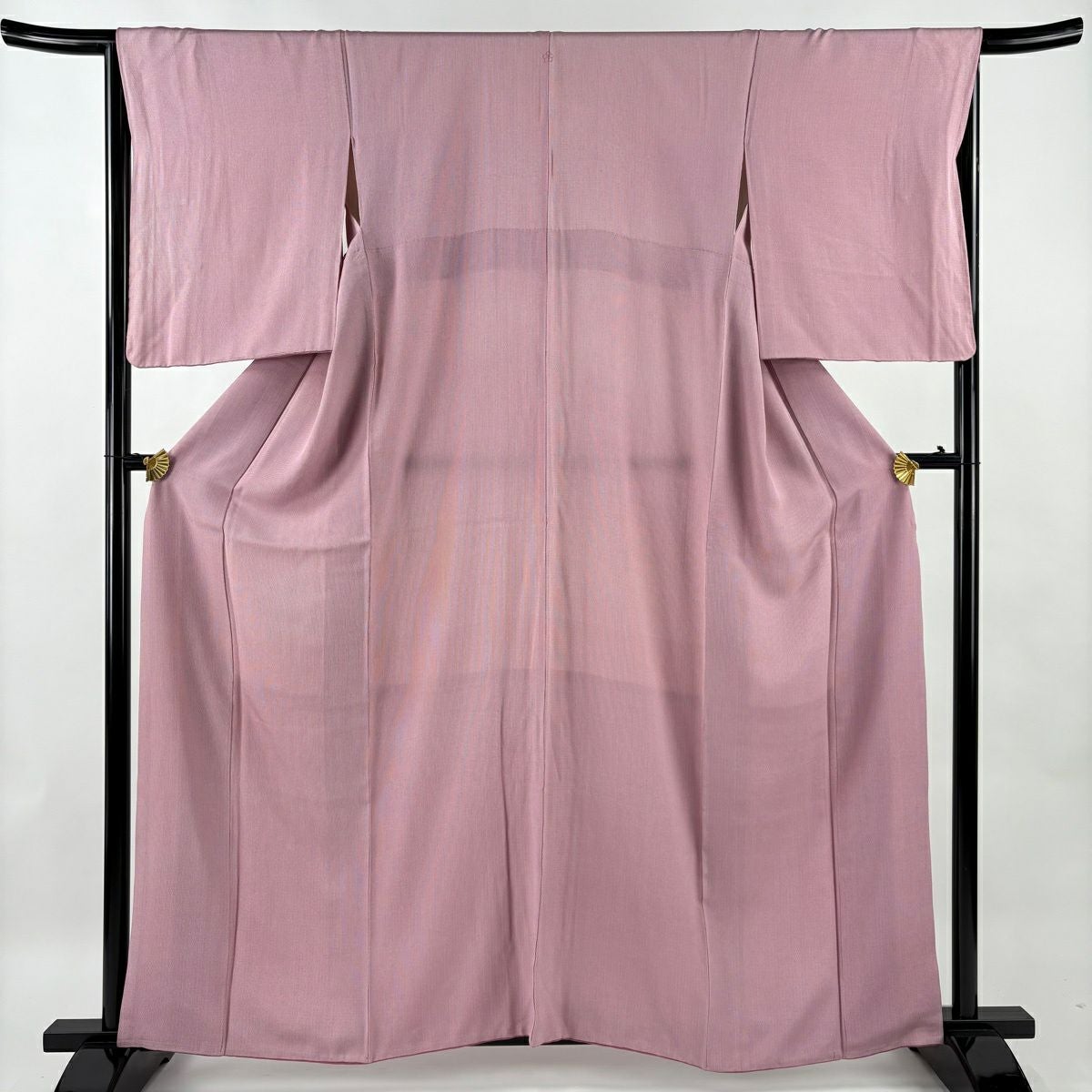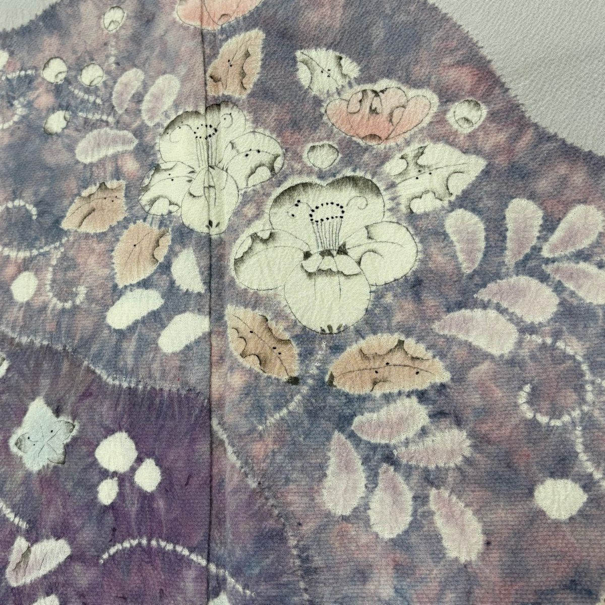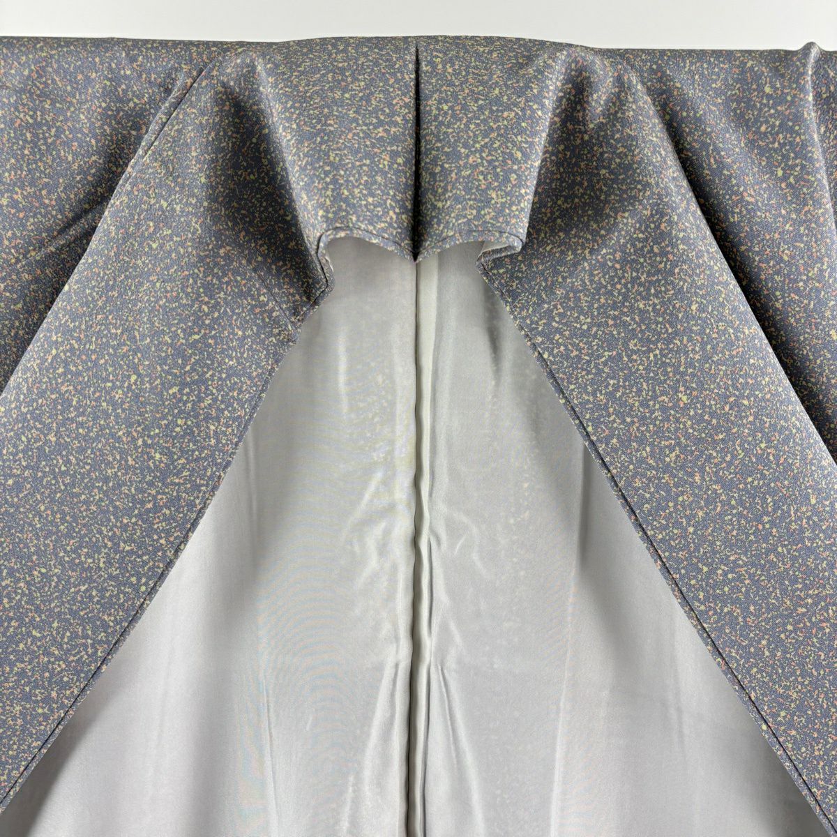 【美品】 小紋 身丈162cm 裄丈67.5cm L 袷 落款あり 地紋 ぼかし 灰紫 正絹 秀品 一つ紋