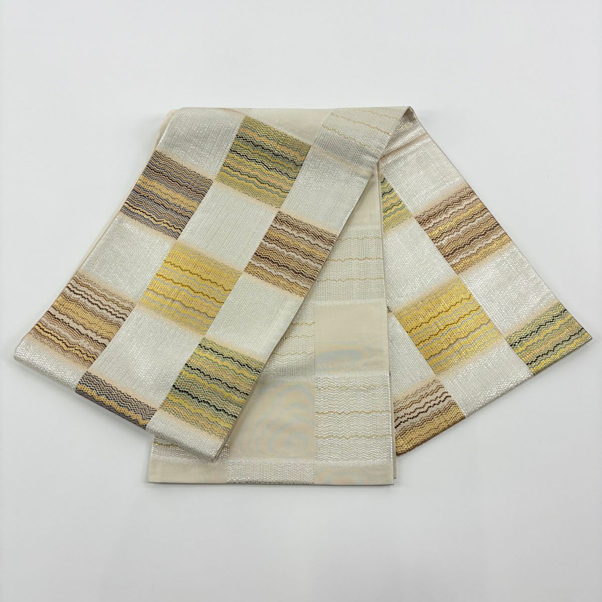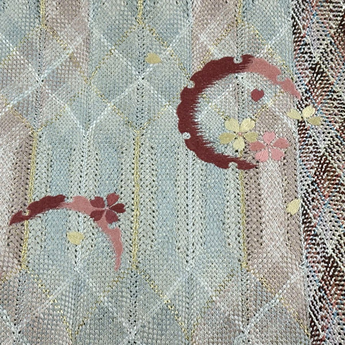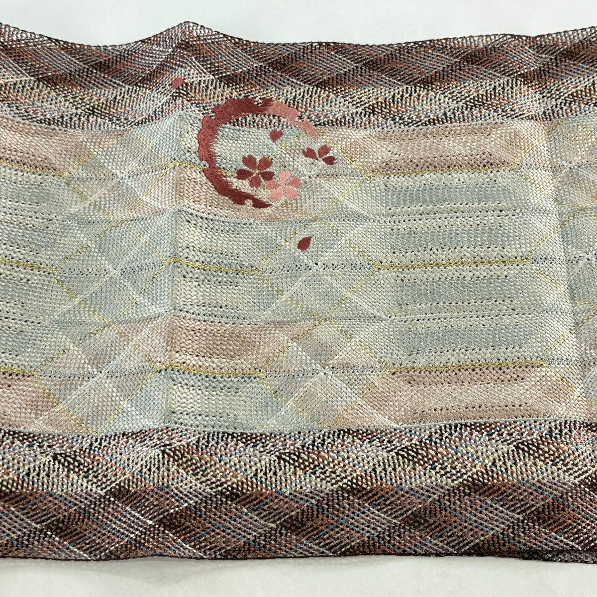 袋帯 秀品 落款あり 伝統工芸士 十一代目大和屋嘉平 関西仕立て 草花 幾何学模様 箔 茶色 六通 正絹