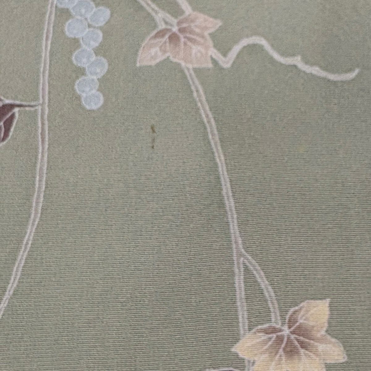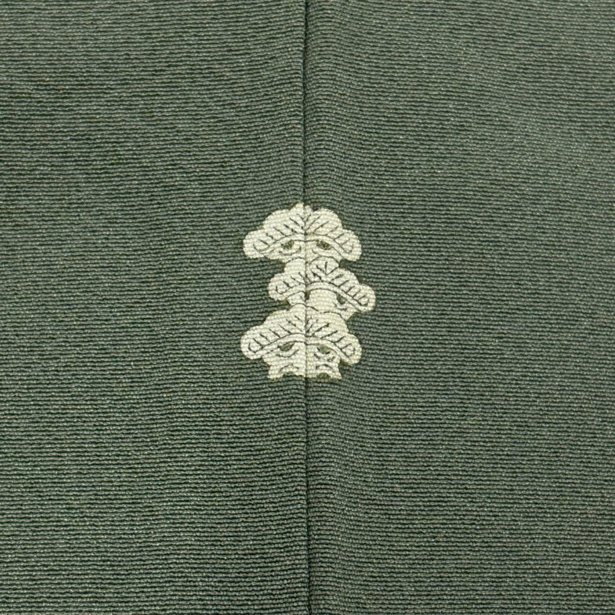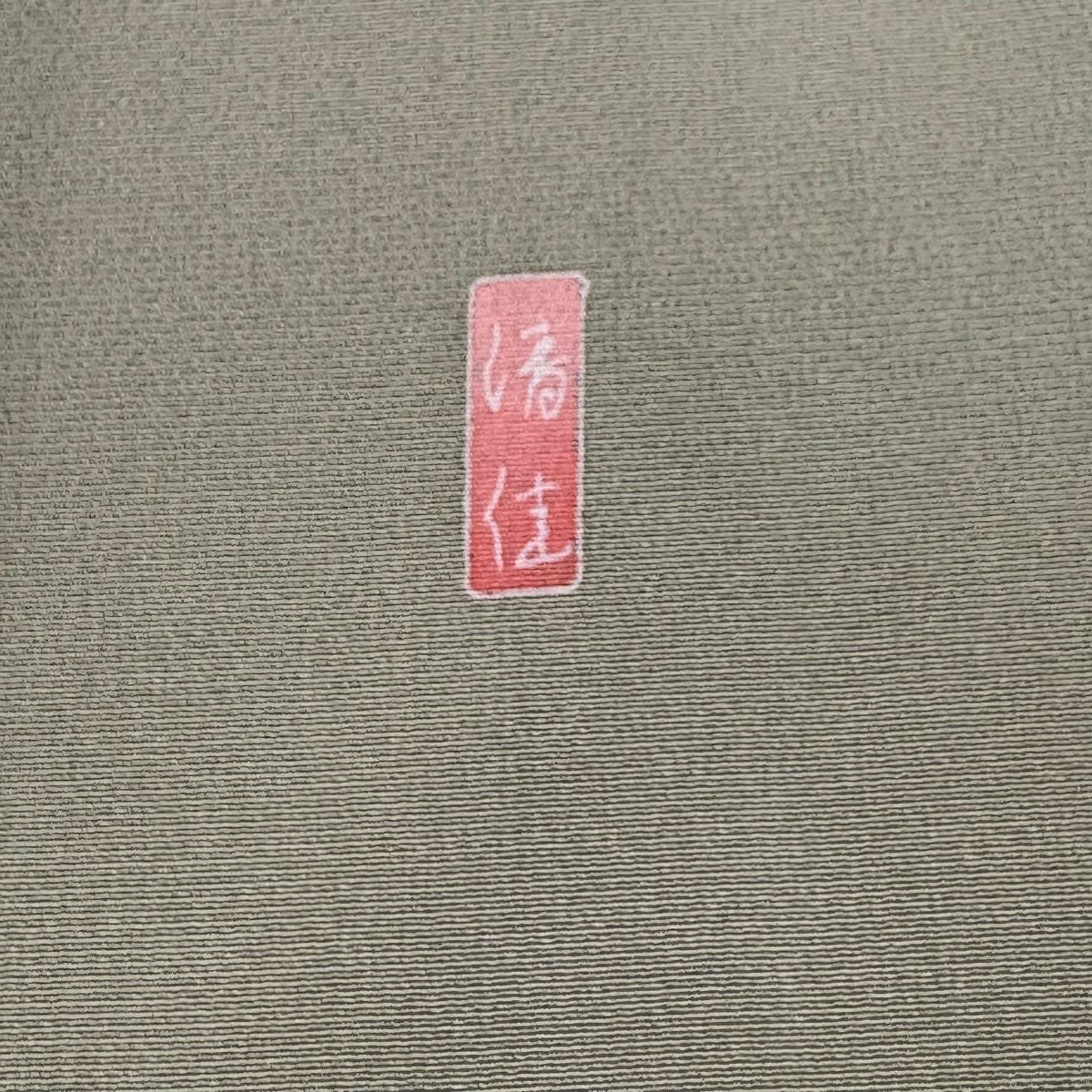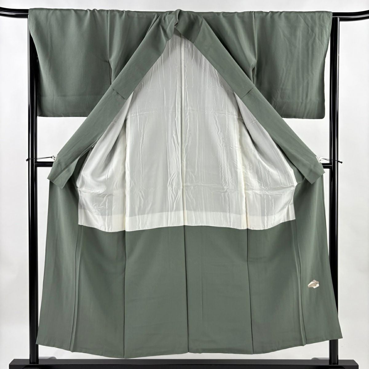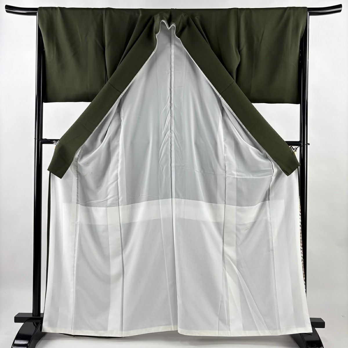 【美品】 訪問着 身丈161cm 裄丈63.5cm S 袷 落款あり 霞 葉 よもぎ色 正絹 秀品 一つ紋