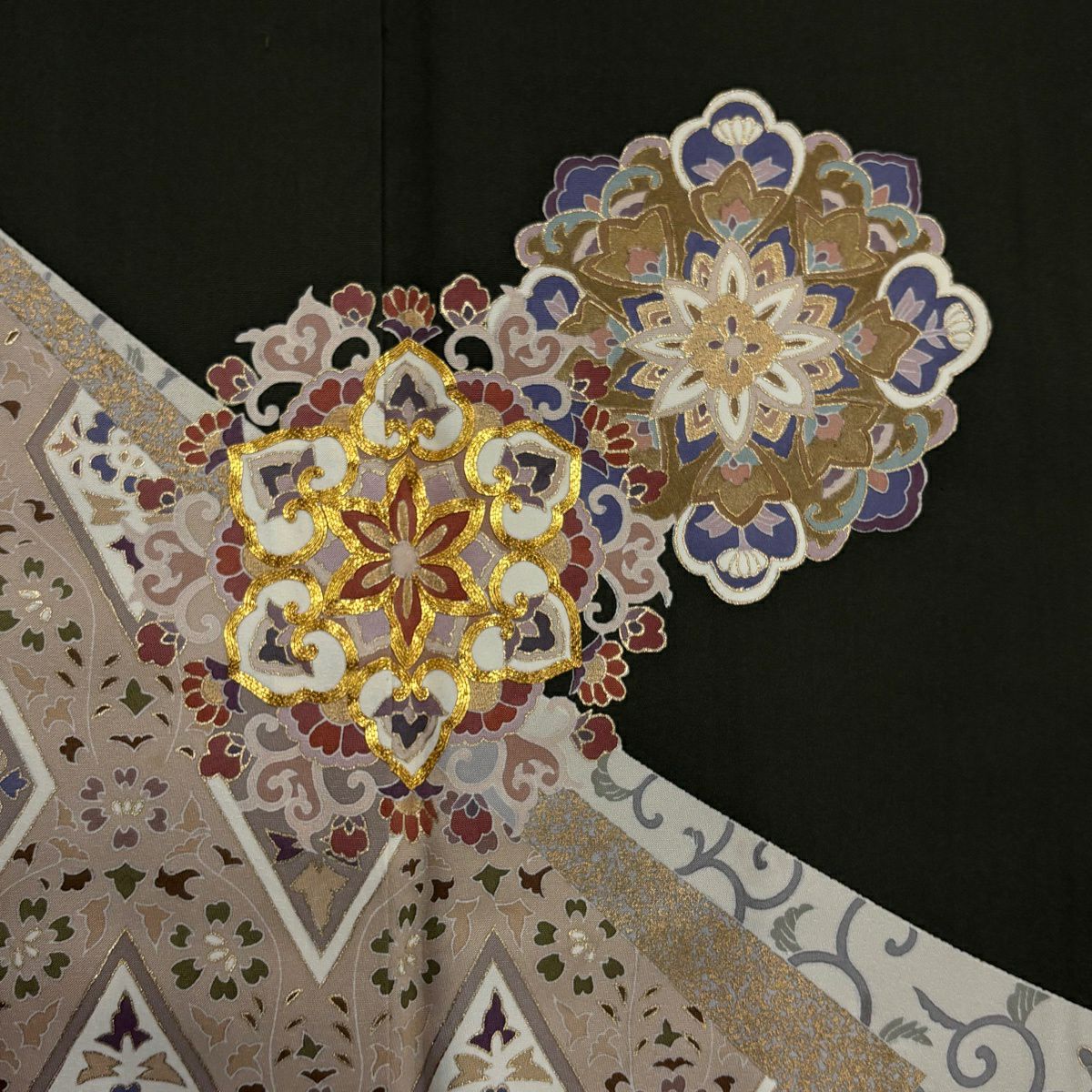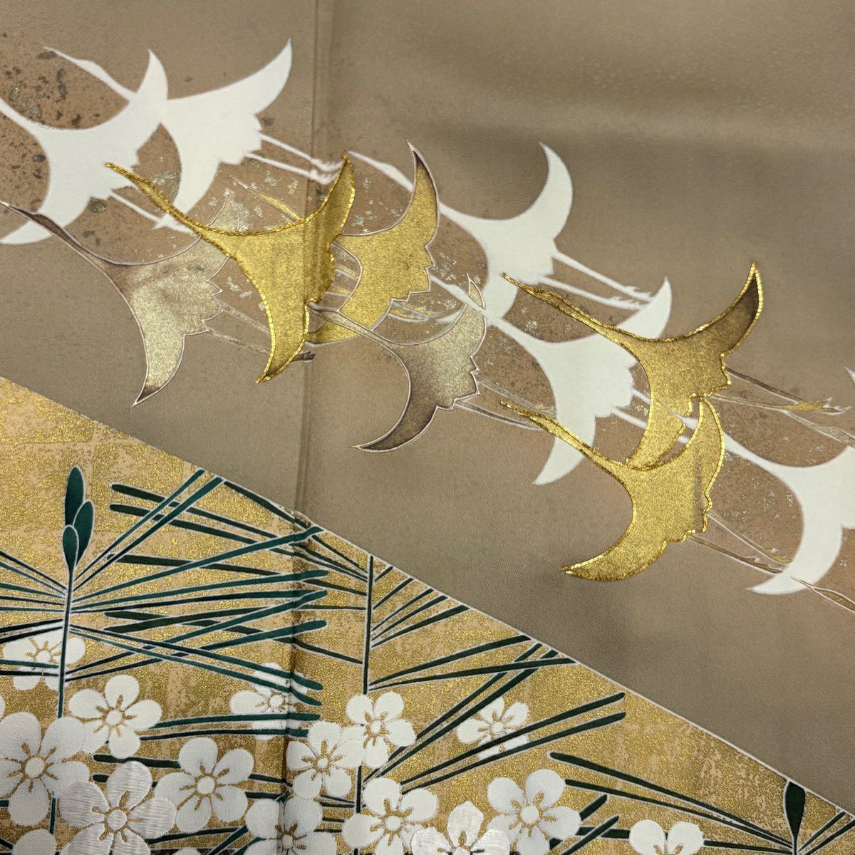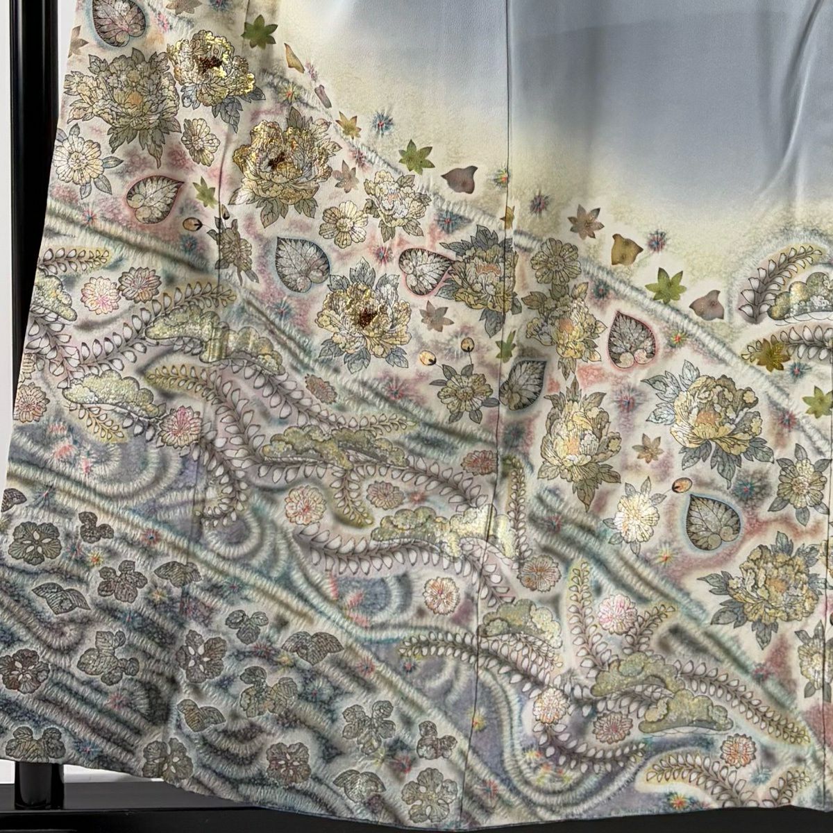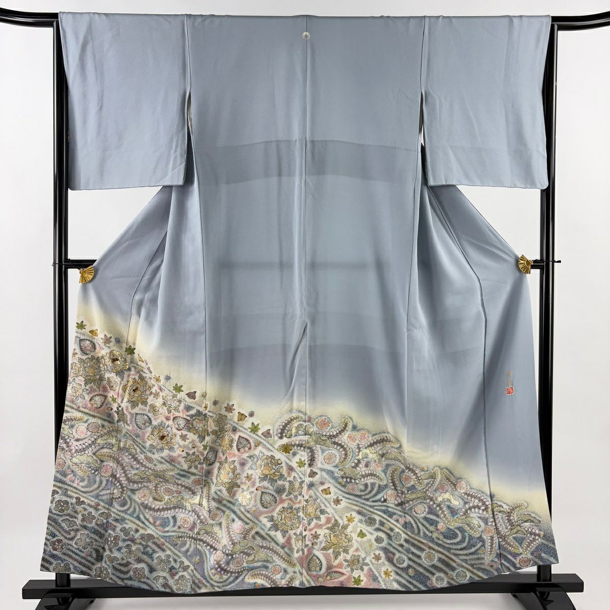 色留袖 身丈165cm 裄丈68.5cm L 袷 やまと 雪輪 松竹梅 金糸 金彩 青灰色 正絹 秀品 一つ紋