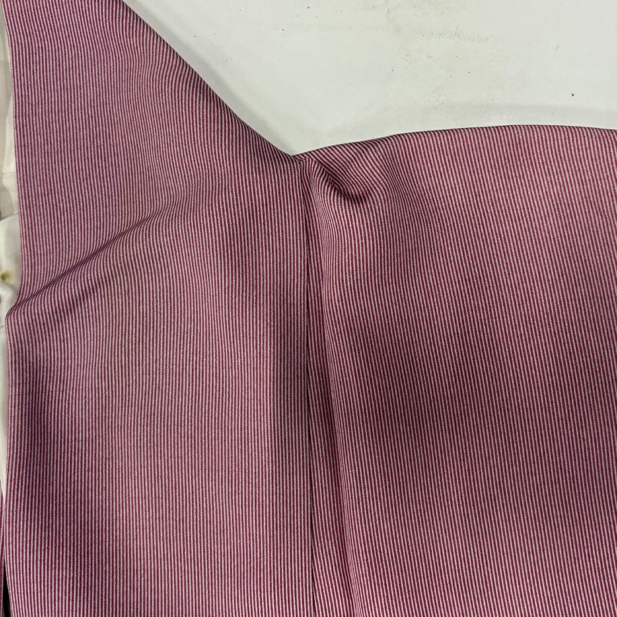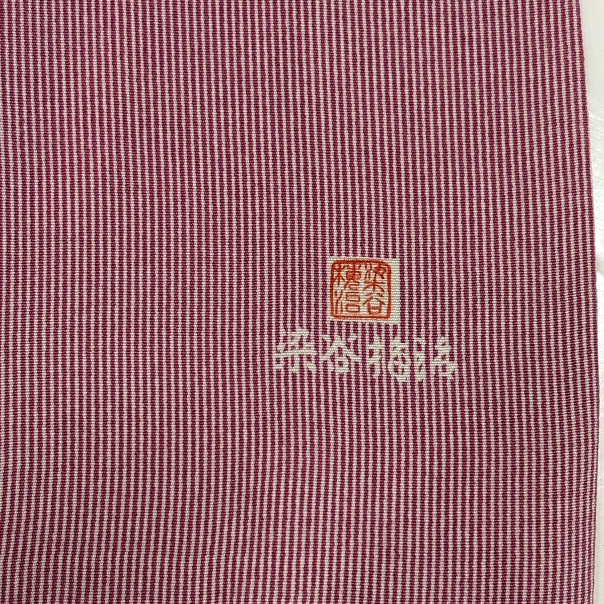 【美品】 道中着 身丈130cm 裄丈66.5cm M 和装コート 紬地 証紙あり 縦縞 赤茶 正絹 秀品