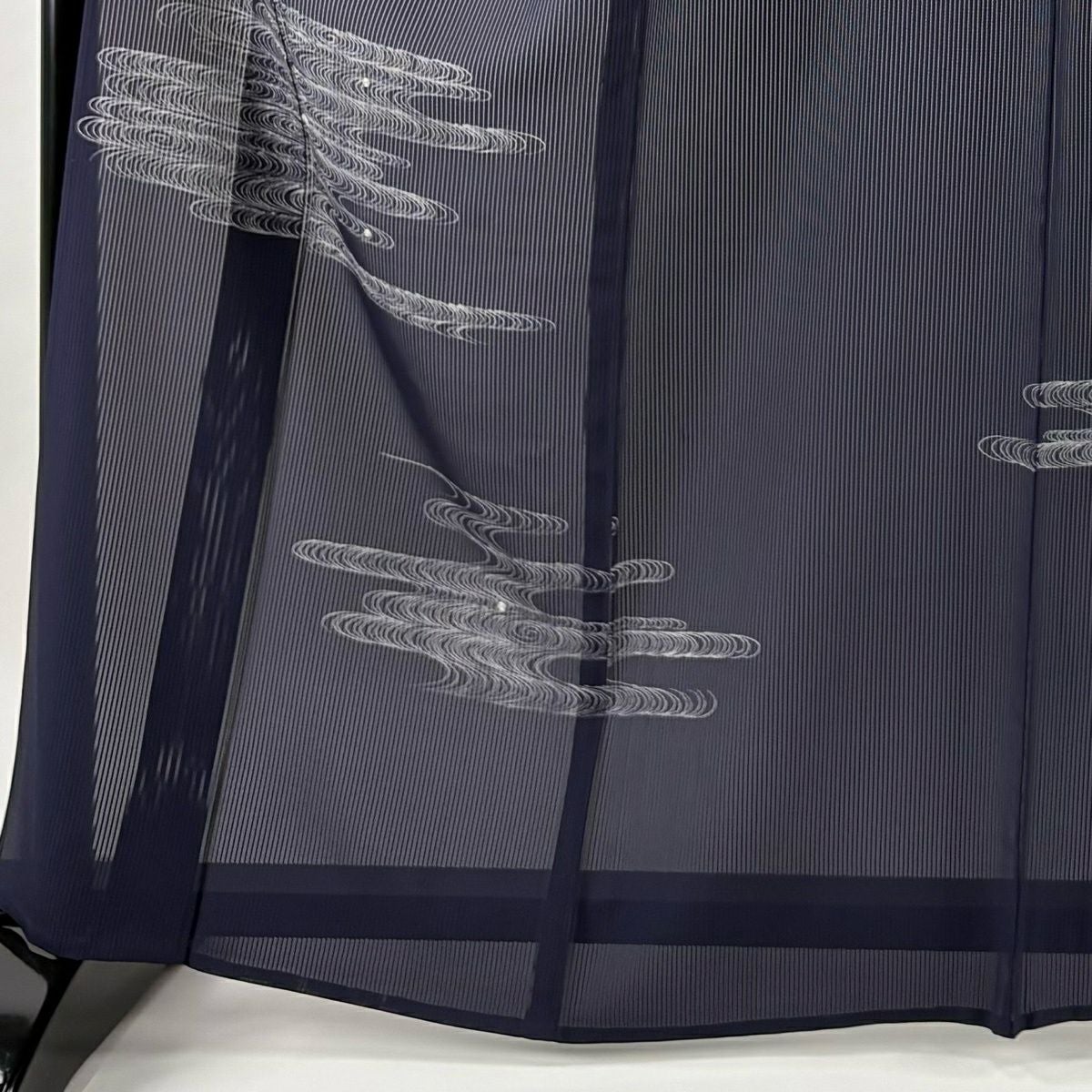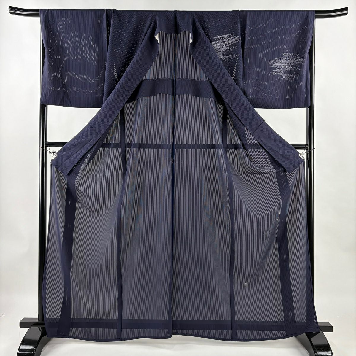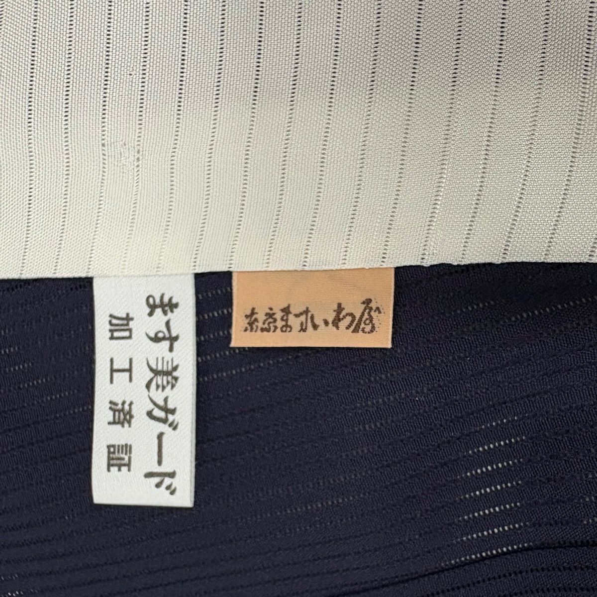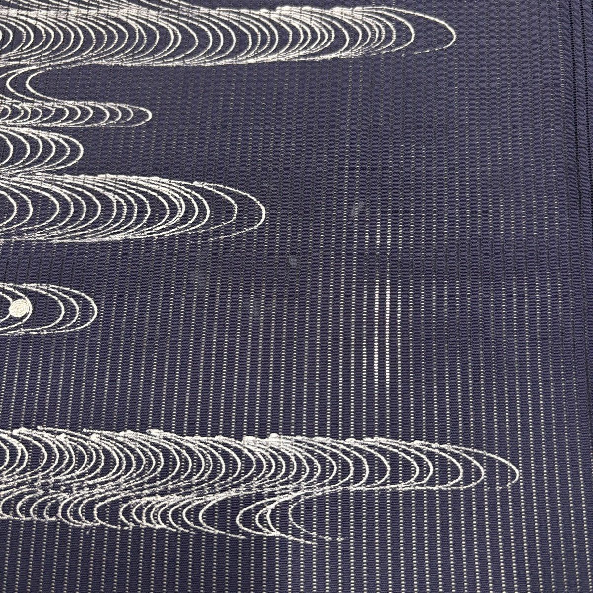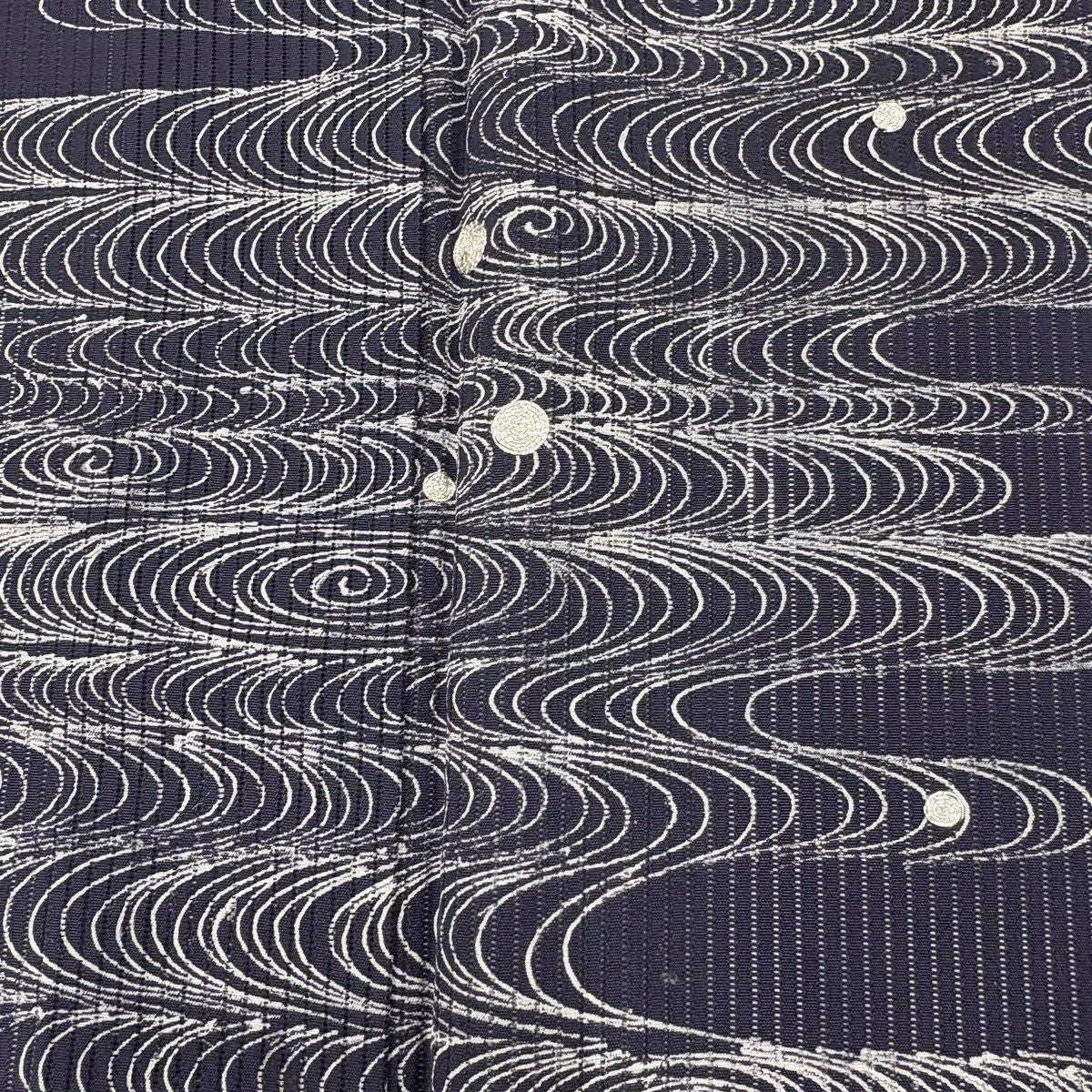 【美品】 小紋 身丈172.5cm 裄丈68cm L 袷 名古屋帯セット 縞 幾何学模様 紺色 正絹 秀品