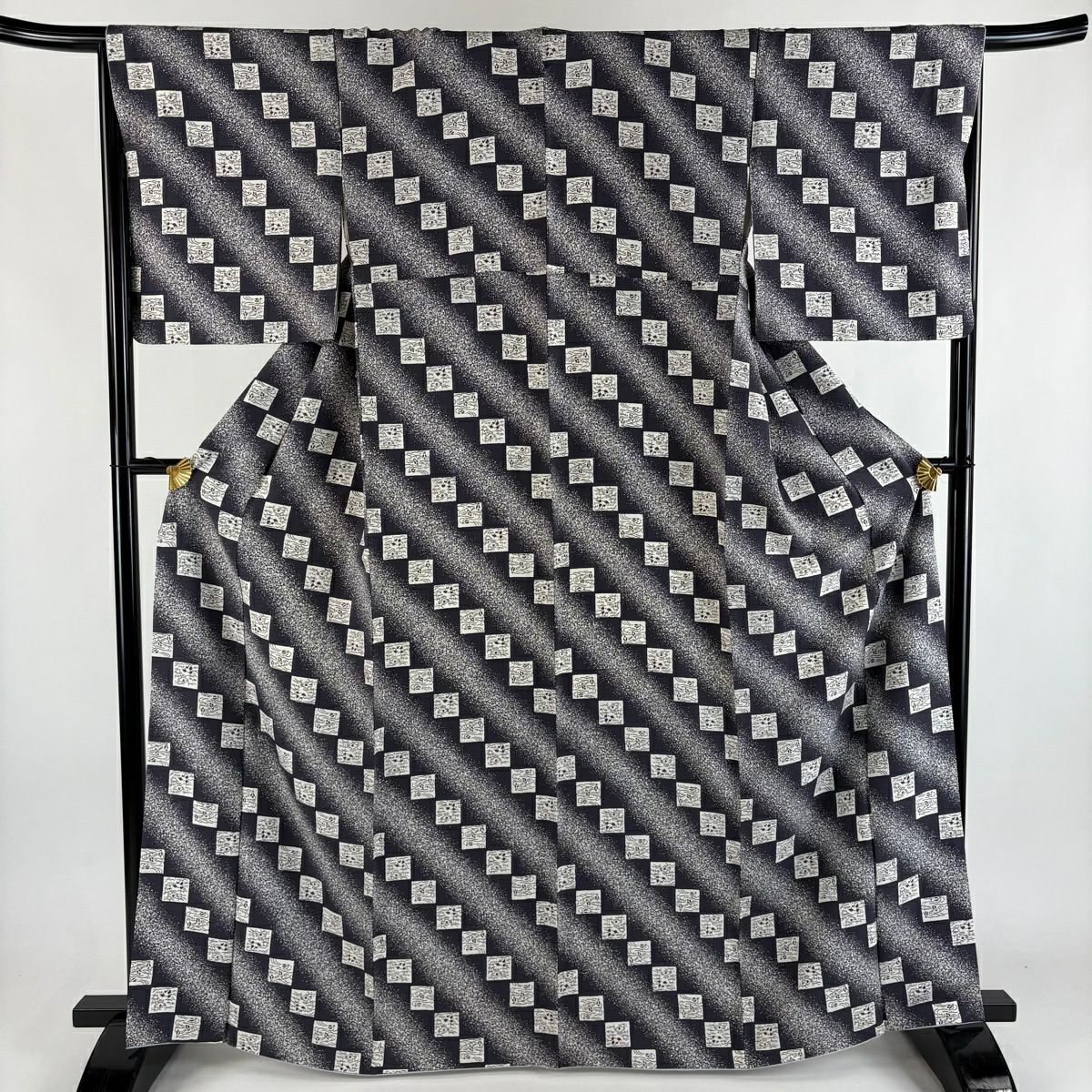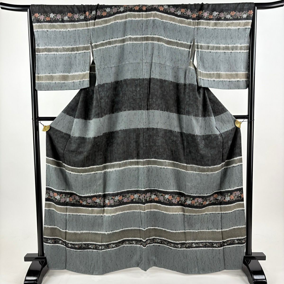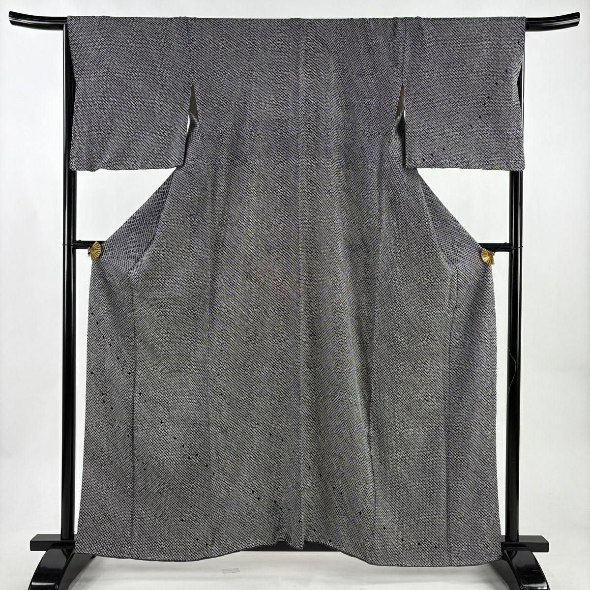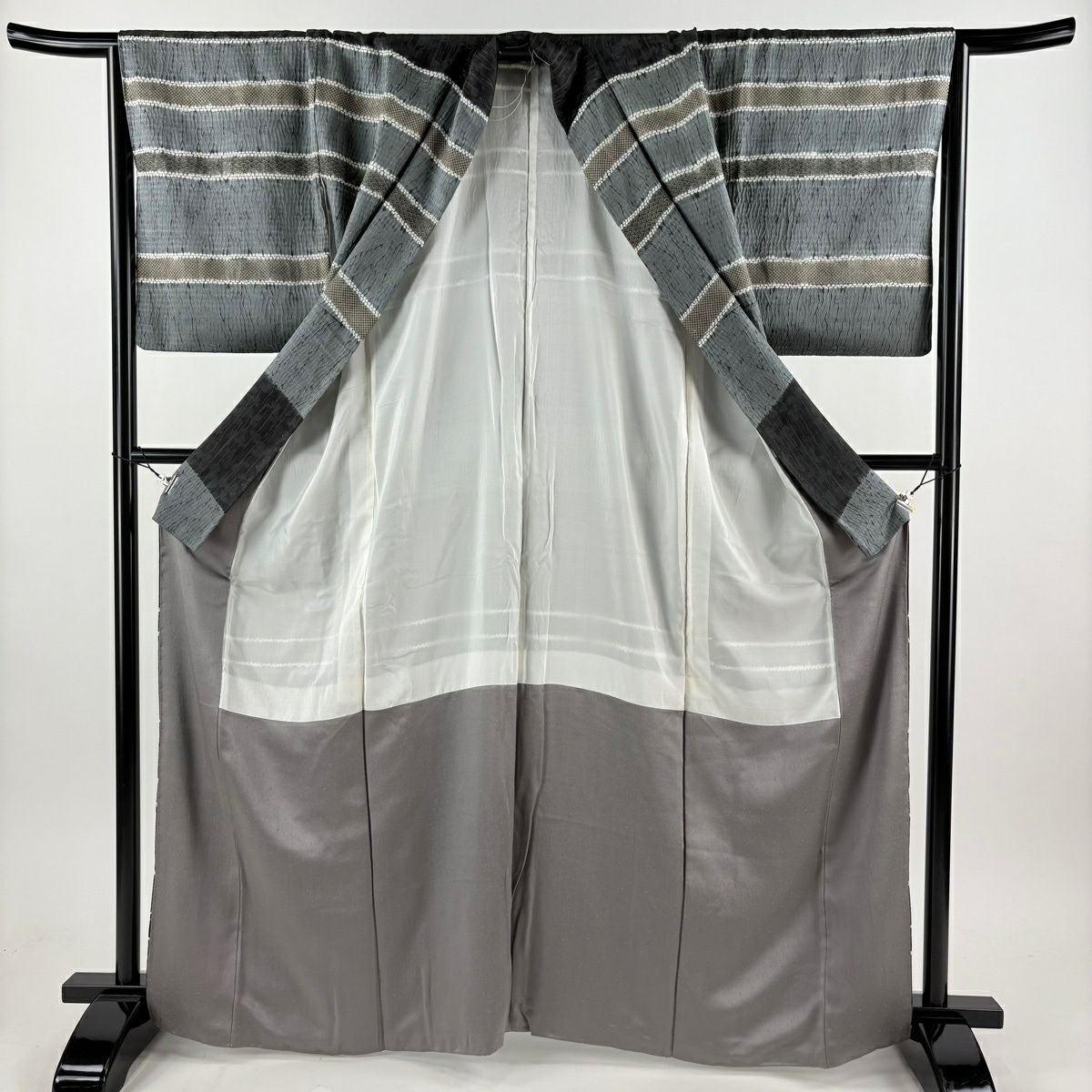 30%OFF 付下げ 身丈160cm 裄丈68cm L 袷 幾何学 総絞り 金糸 黒灰 正絹 秀品 K30