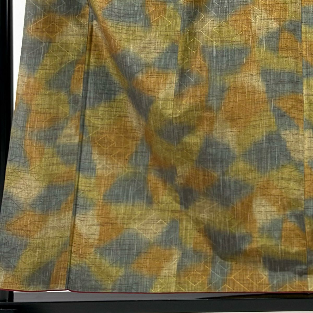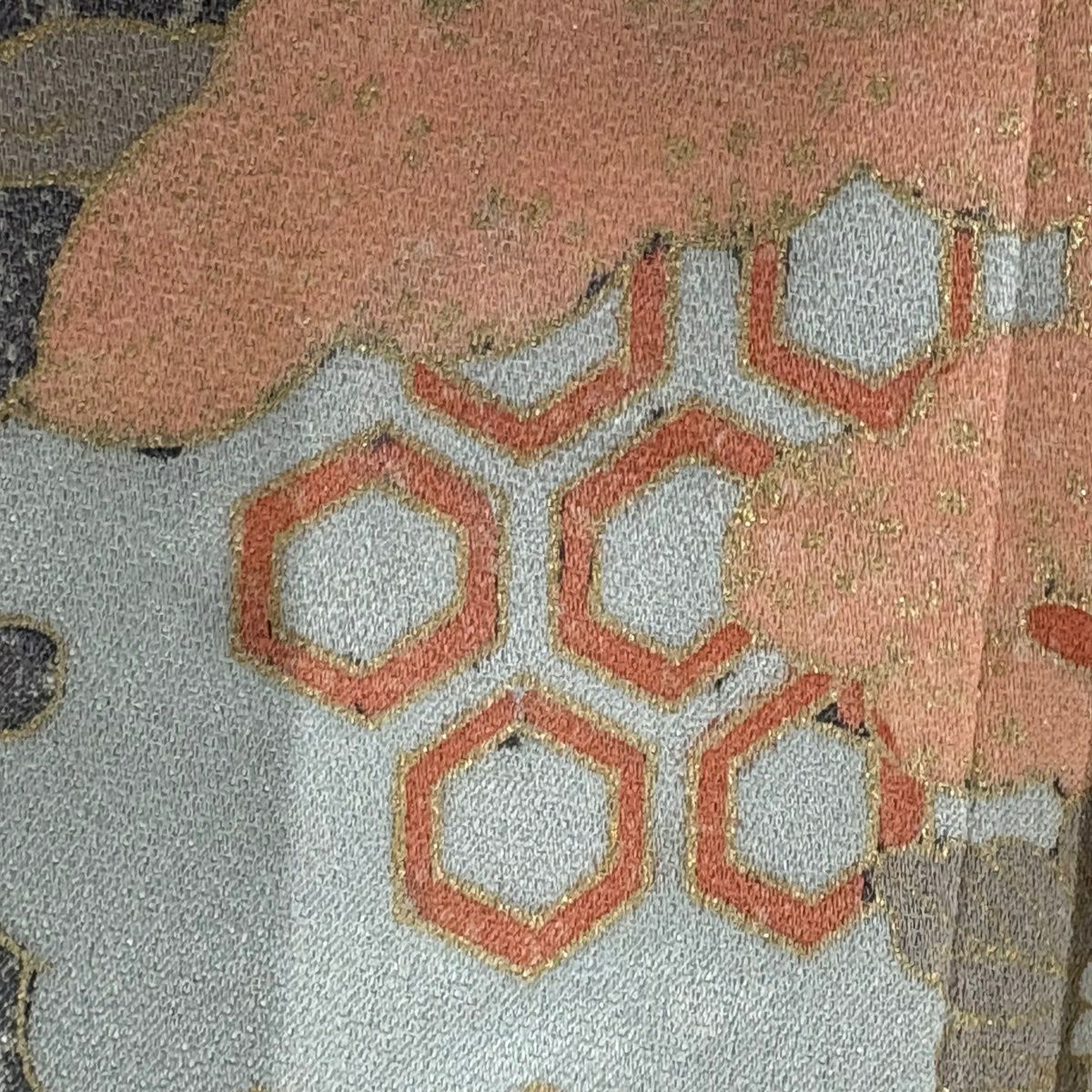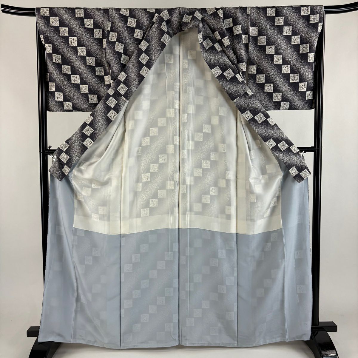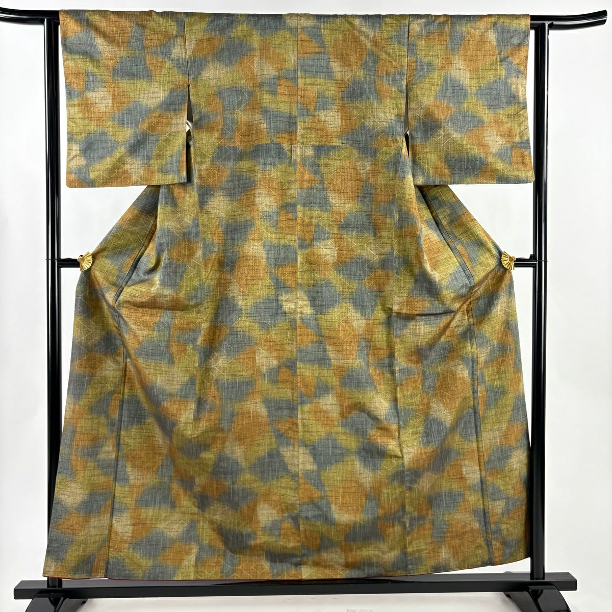 30%OFF 付下げ 身丈160cm 裄丈68cm L 袷 幾何学 総絞り 金糸 黒灰 正絹 秀品 K30