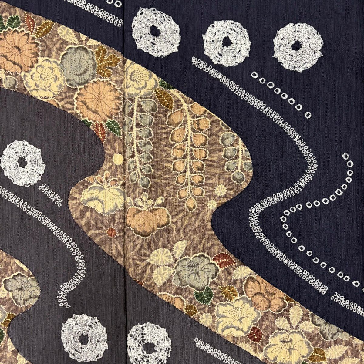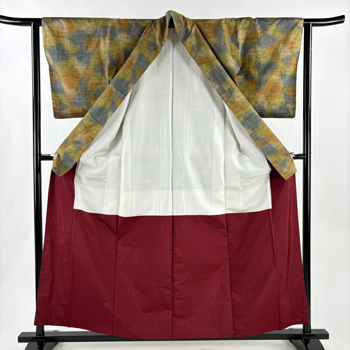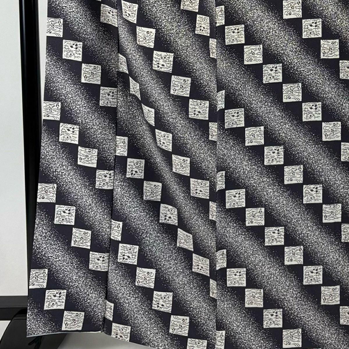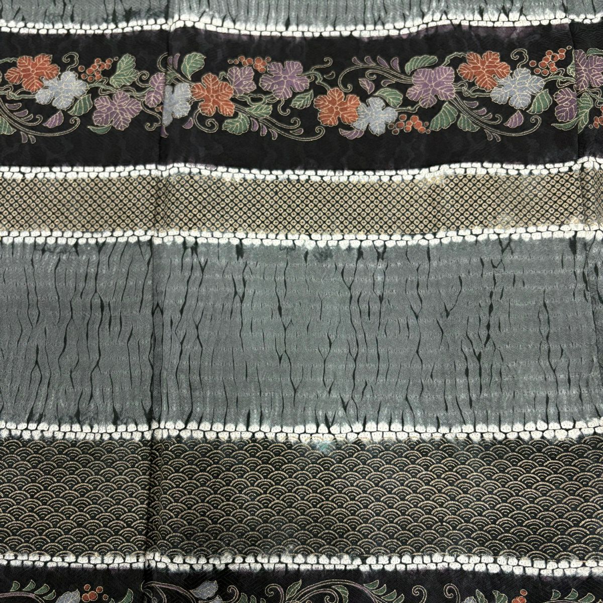 30%OFF 付下げ 身丈160cm 裄丈68cm L 袷 幾何学 総絞り 金糸 黒灰 正絹 秀品 K30