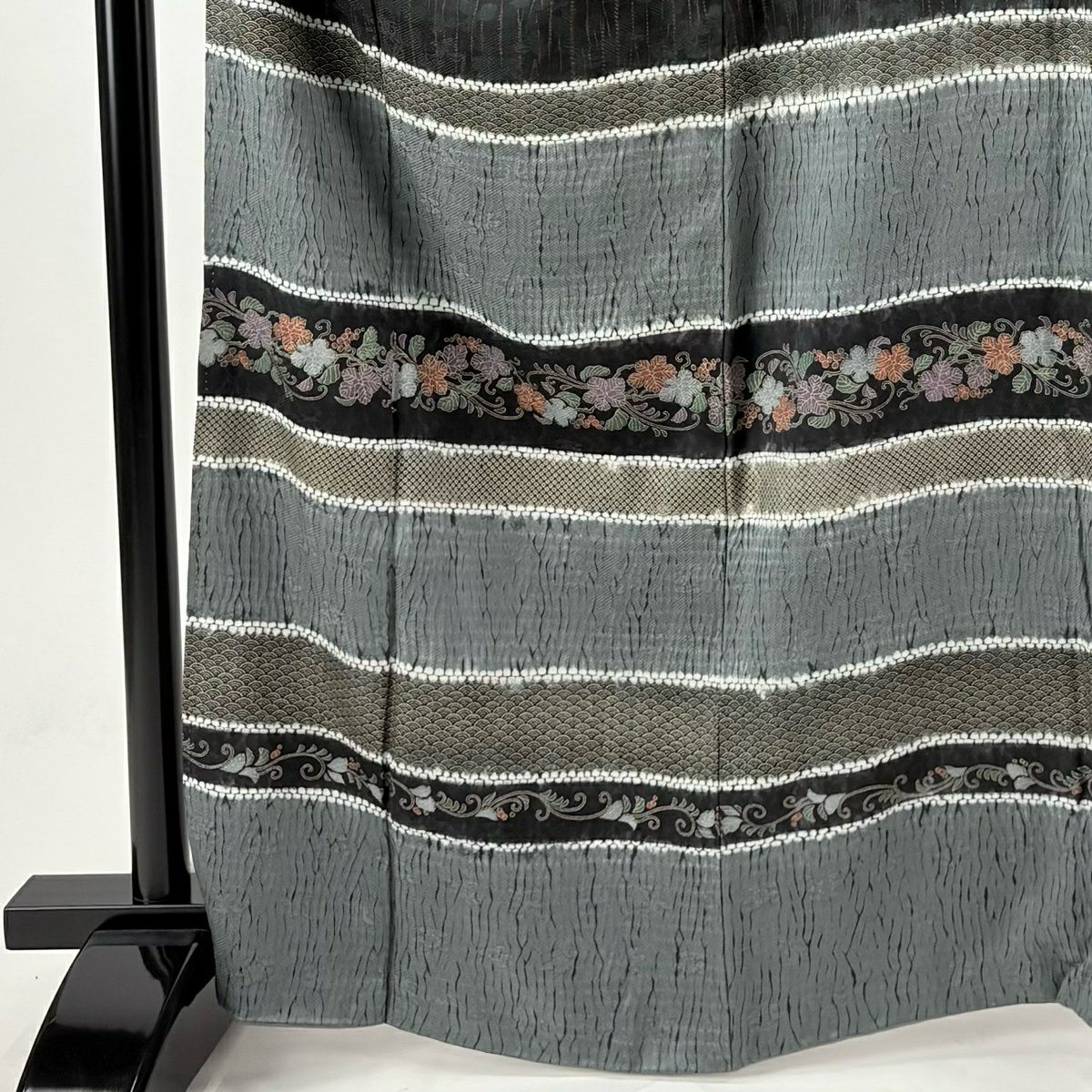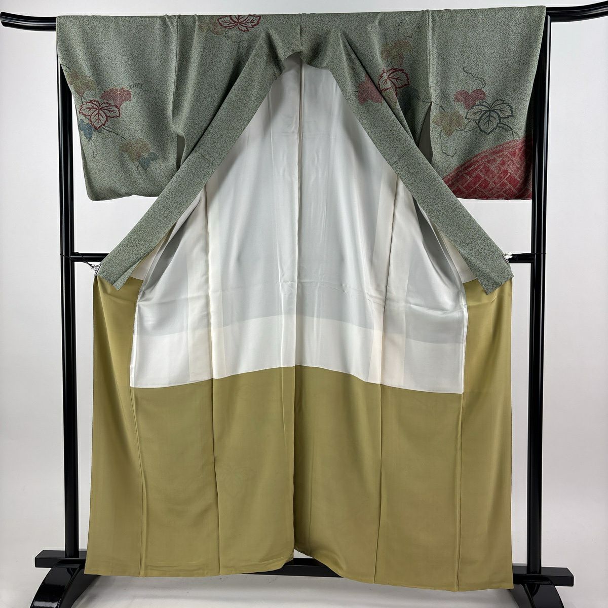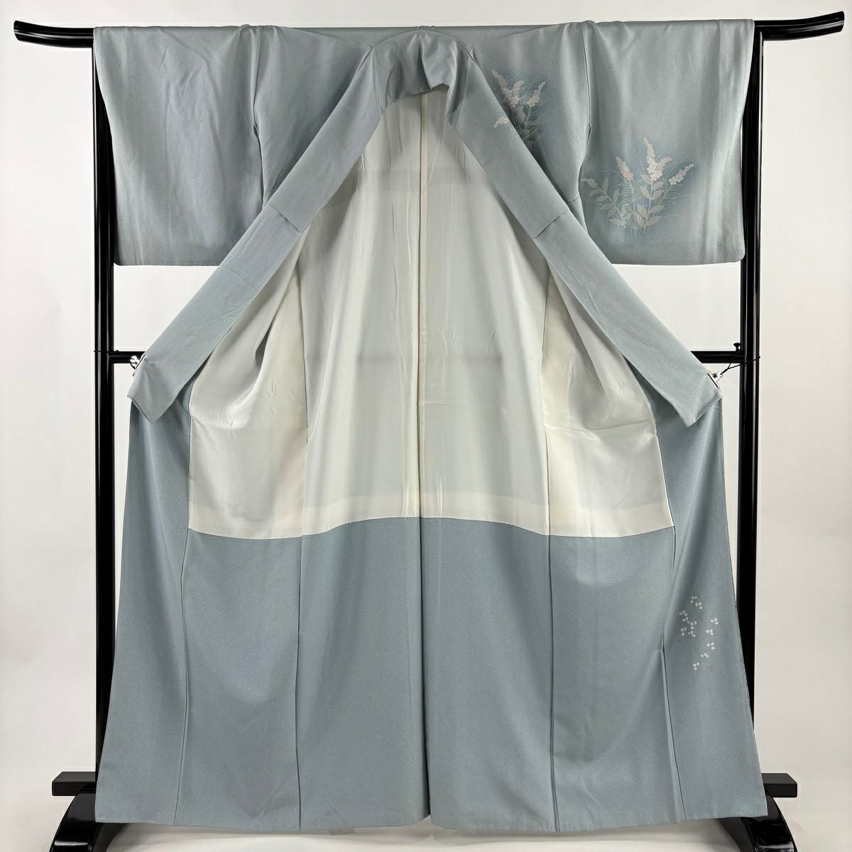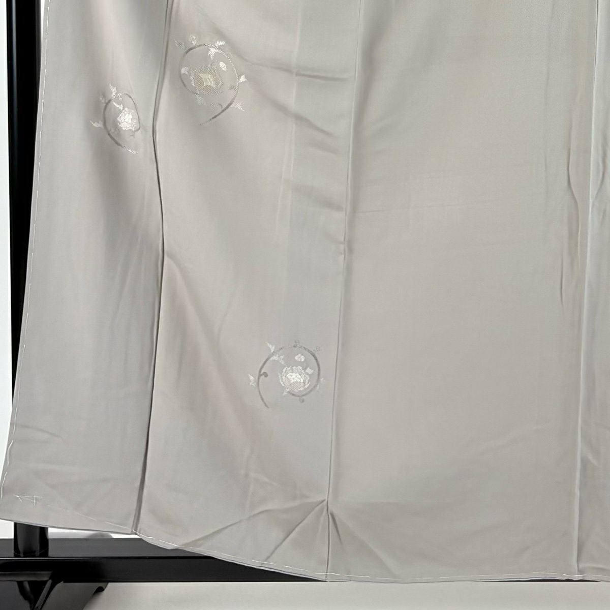 30%OFF 付下げ 身丈159cm 裄丈62cm S 袷 花唐草 刺繍 灰色 正絹 秀品 一つ紋 K30