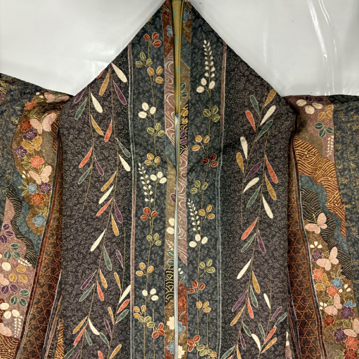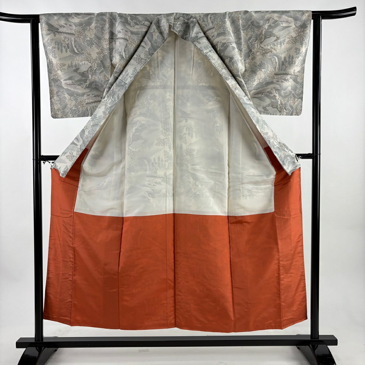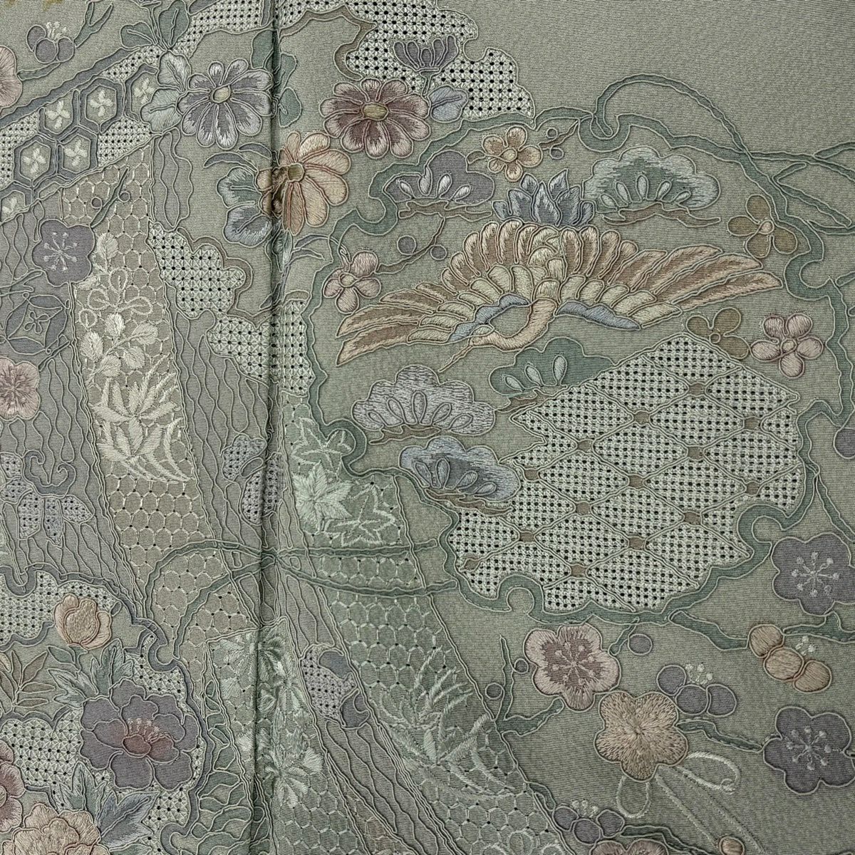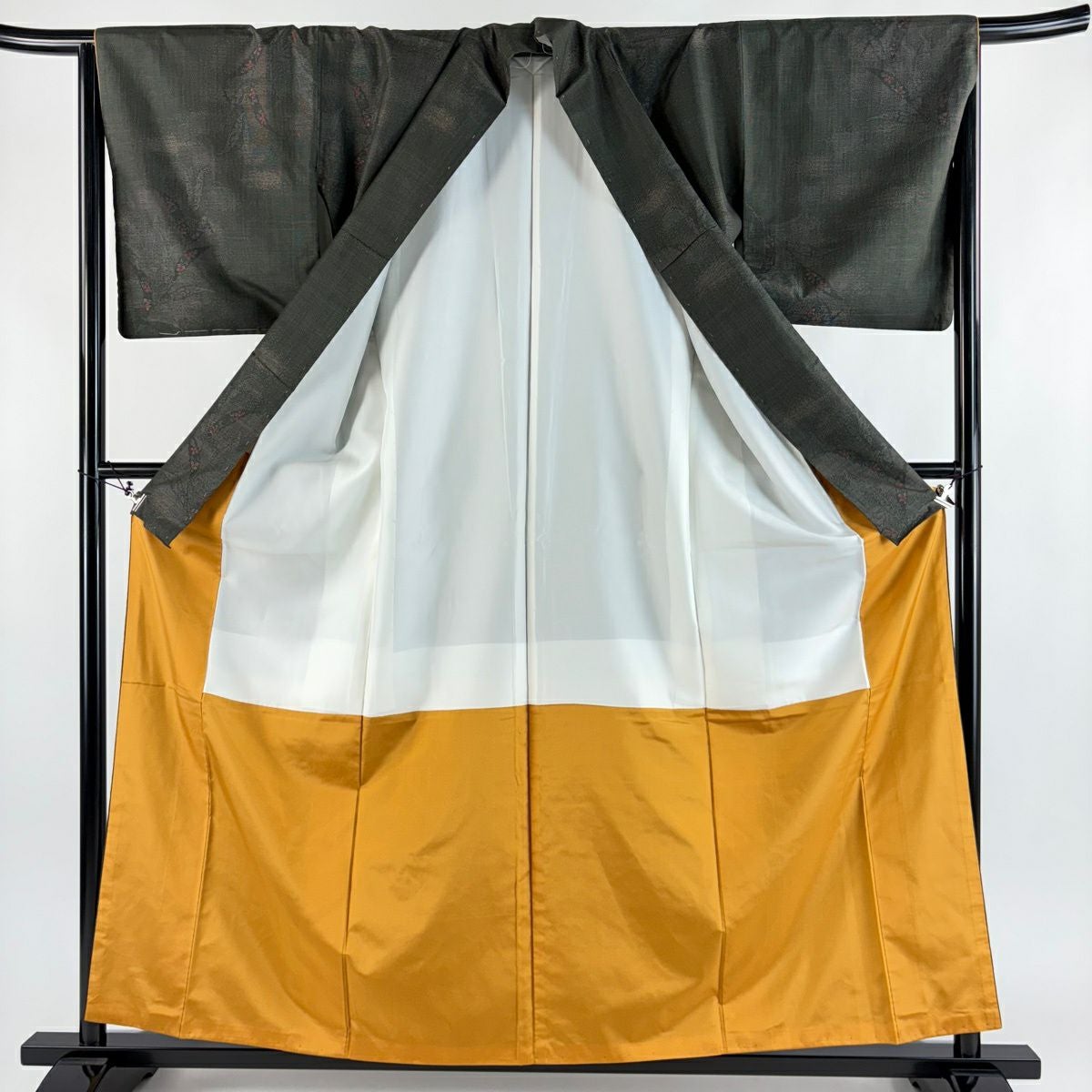 30%OFF 付下げ 身丈159cm 裄丈62cm S 袷 花唐草 刺繍 灰色 正絹 秀品 一つ紋 K30
