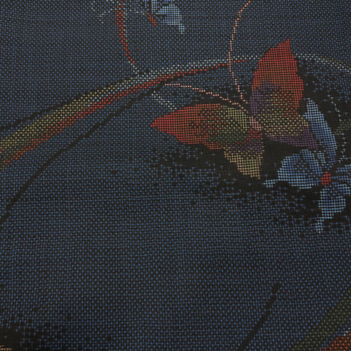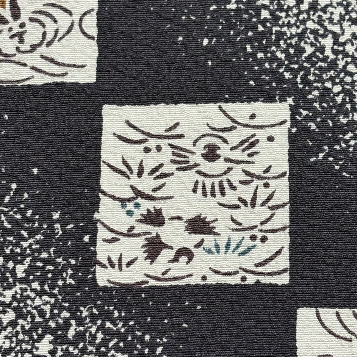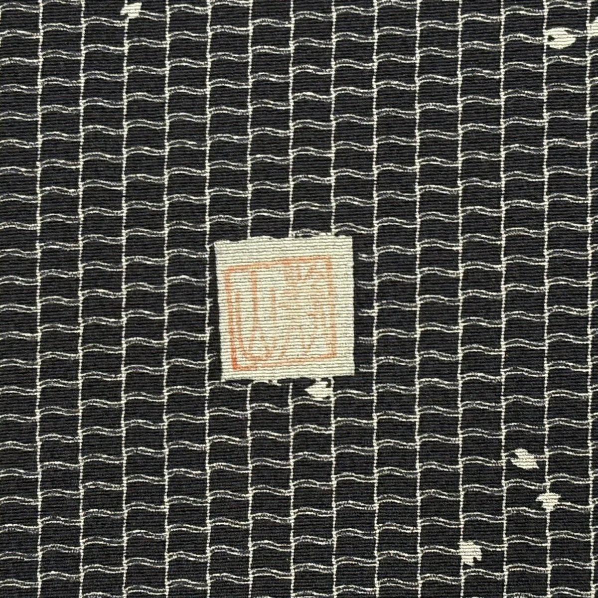 30%OFF 小紋 身丈158cm 裄丈64cm M 袷 落款あり 花びら 幾何学 黒 正絹 秀品 K30