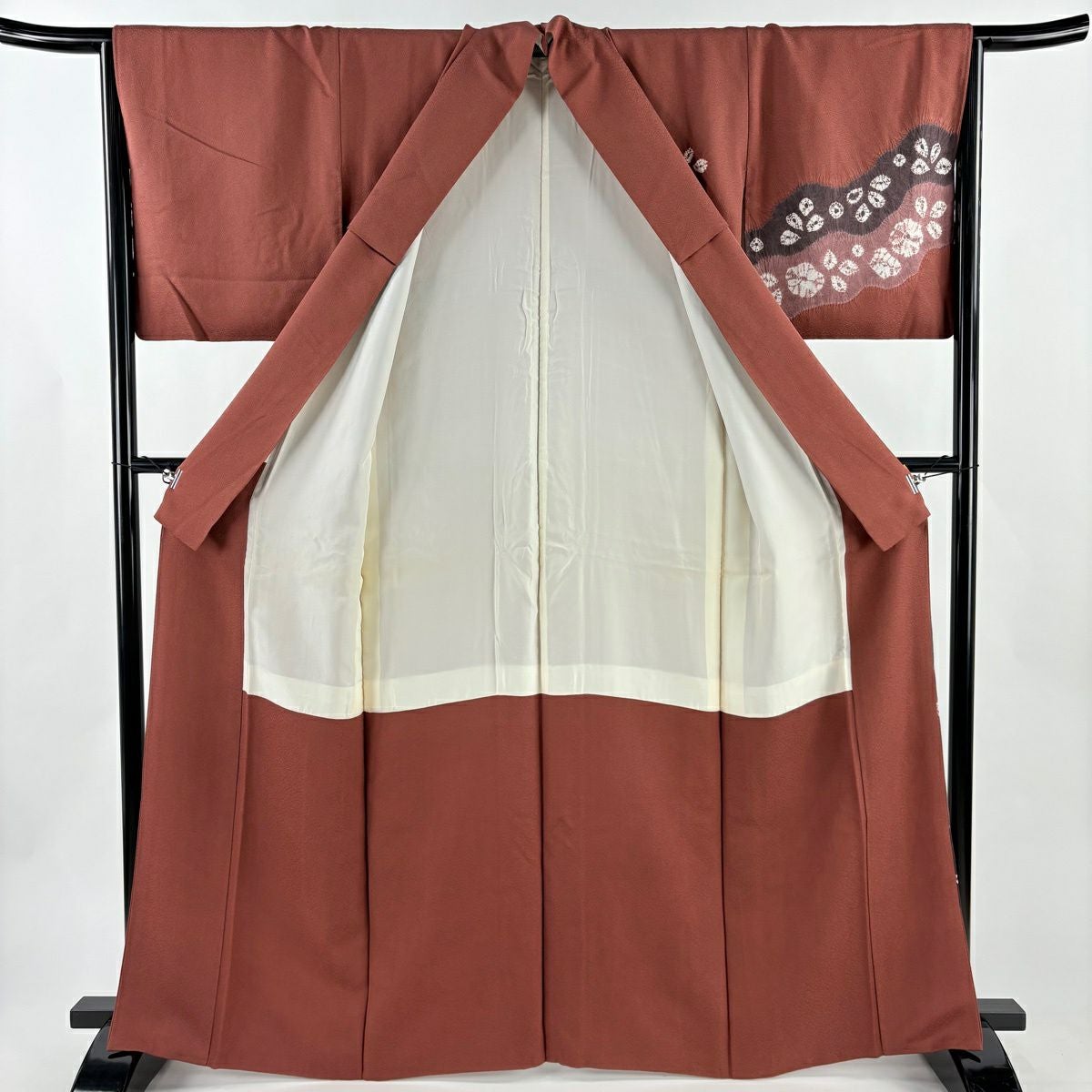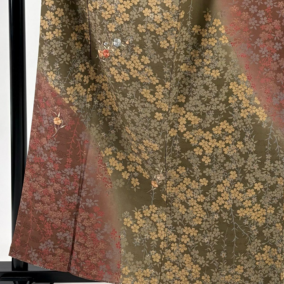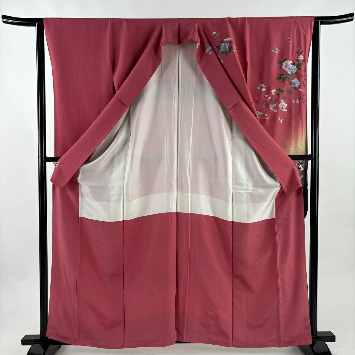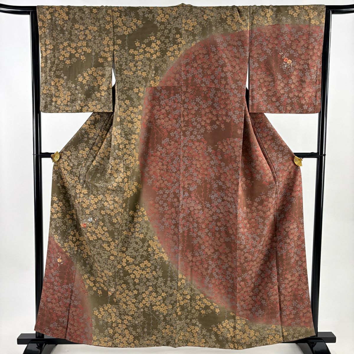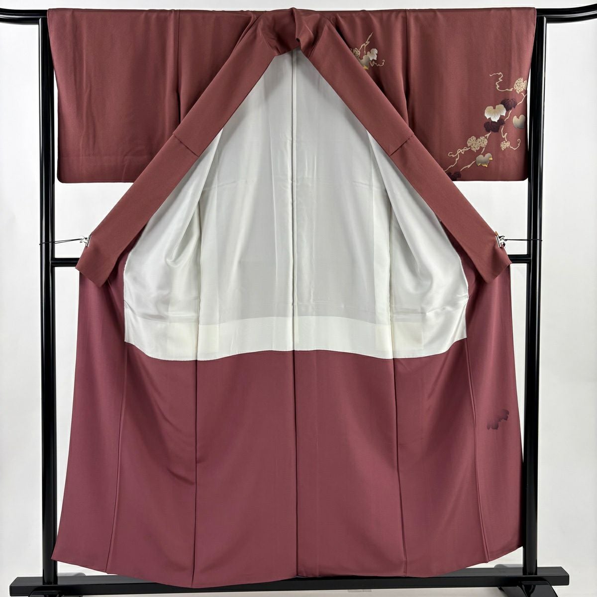 30%OFF 訪問着 身丈156cm 裄丈65.5cm M 袷 枝花 霞ぼかし 小豆色 正絹 秀品 K30