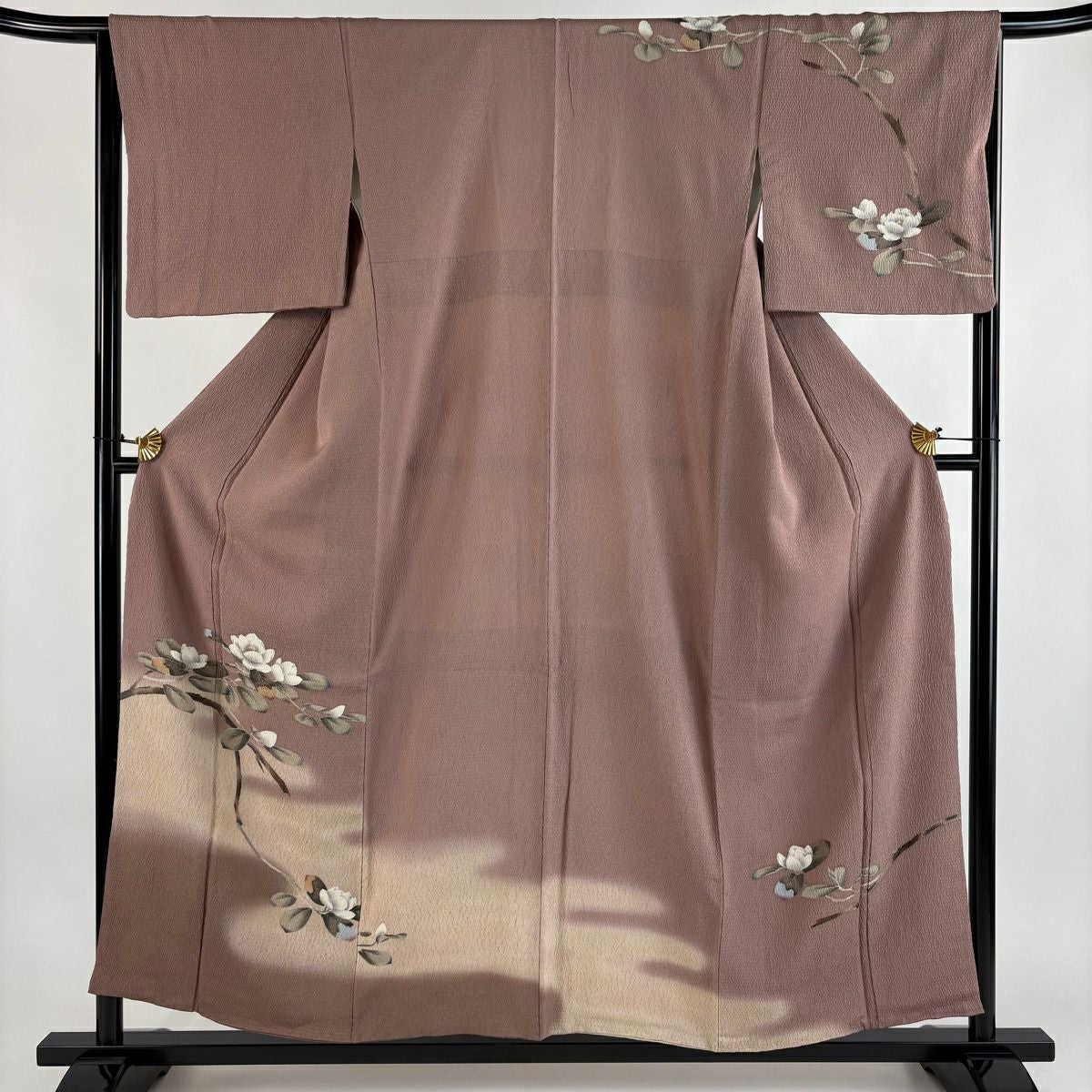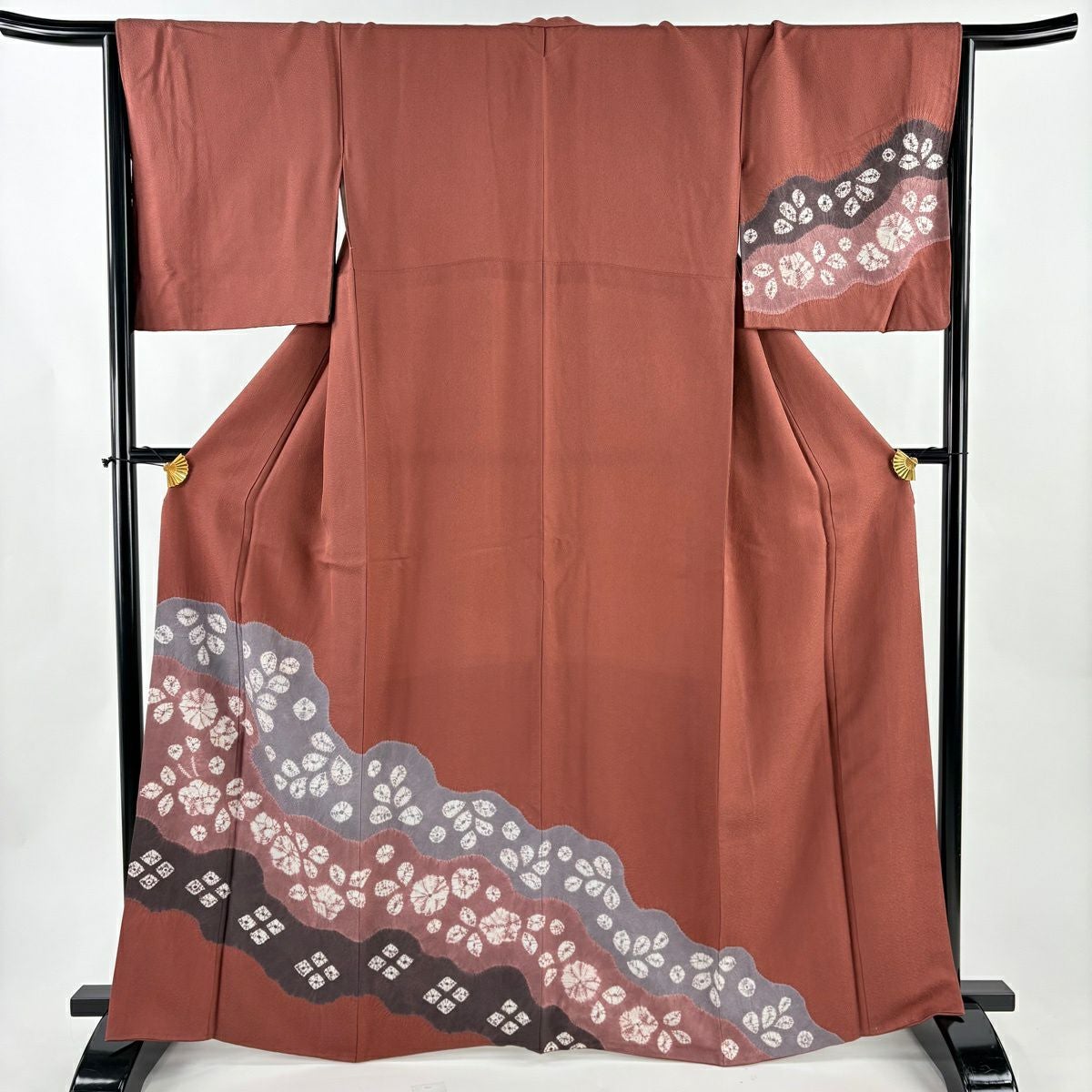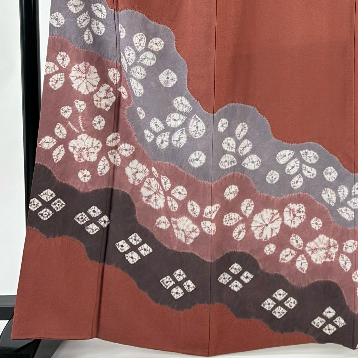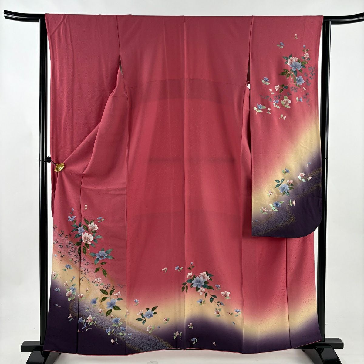 30%OFF 訪問着 身丈156cm 裄丈65.5cm M 袷 枝花 霞ぼかし 小豆色 正絹 秀品 K30