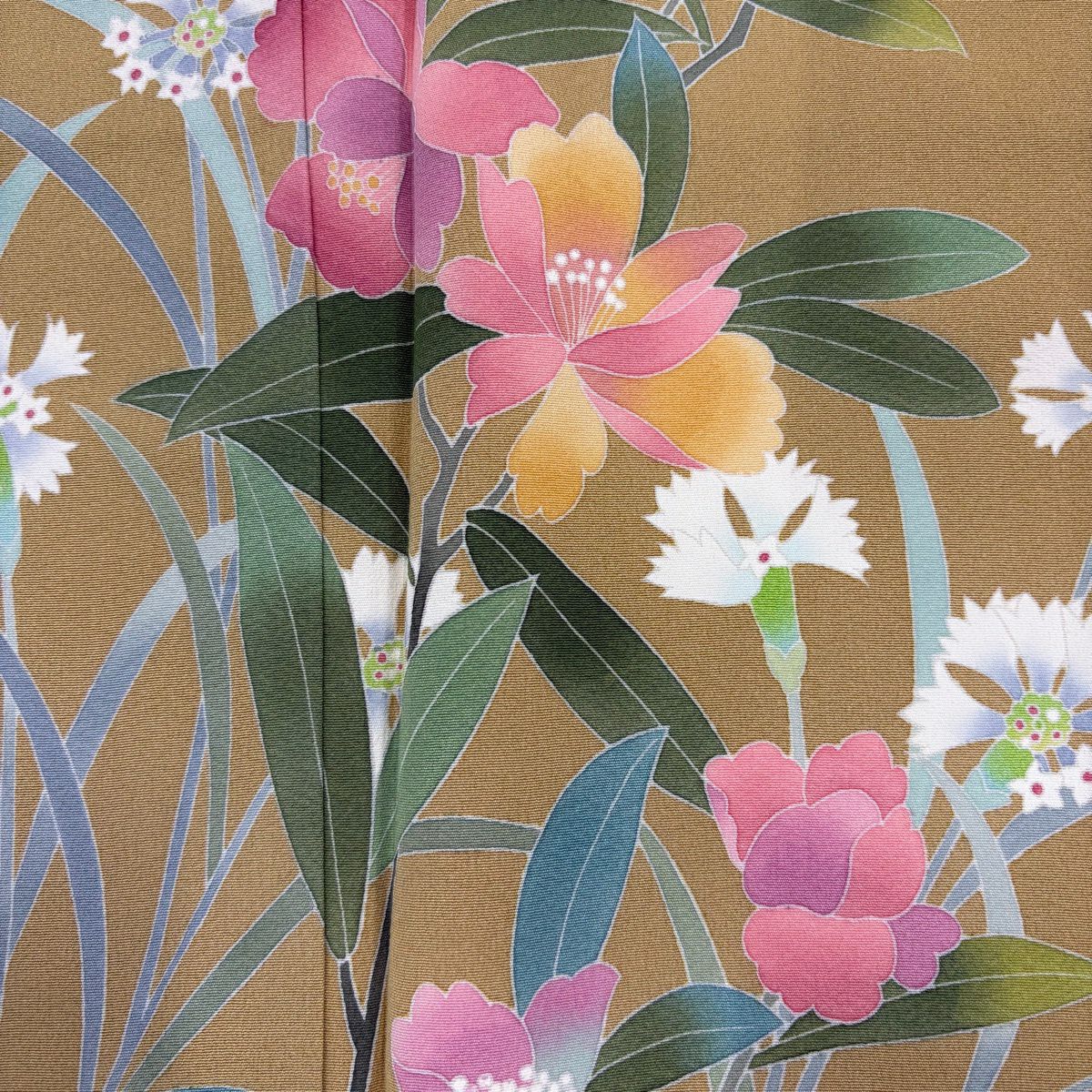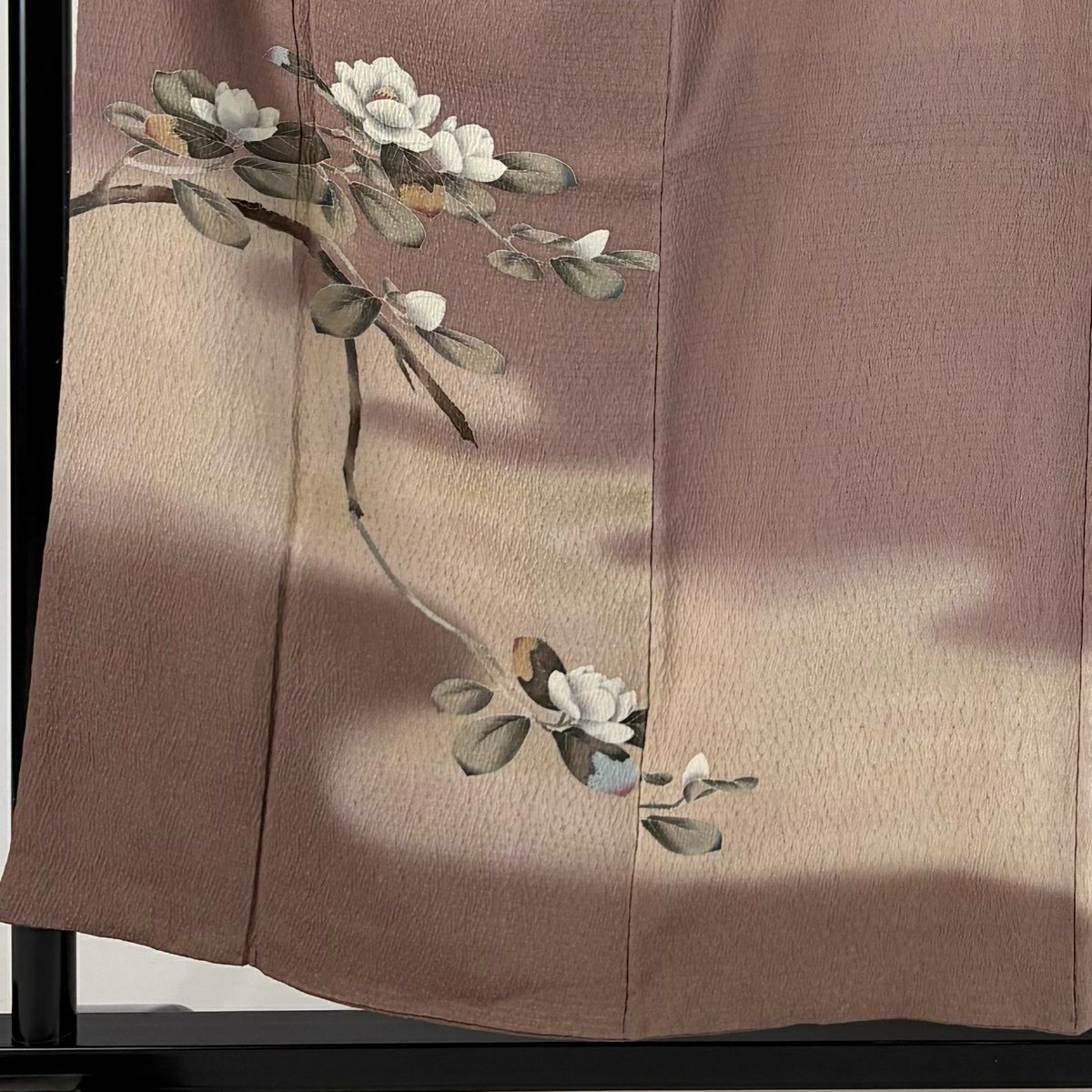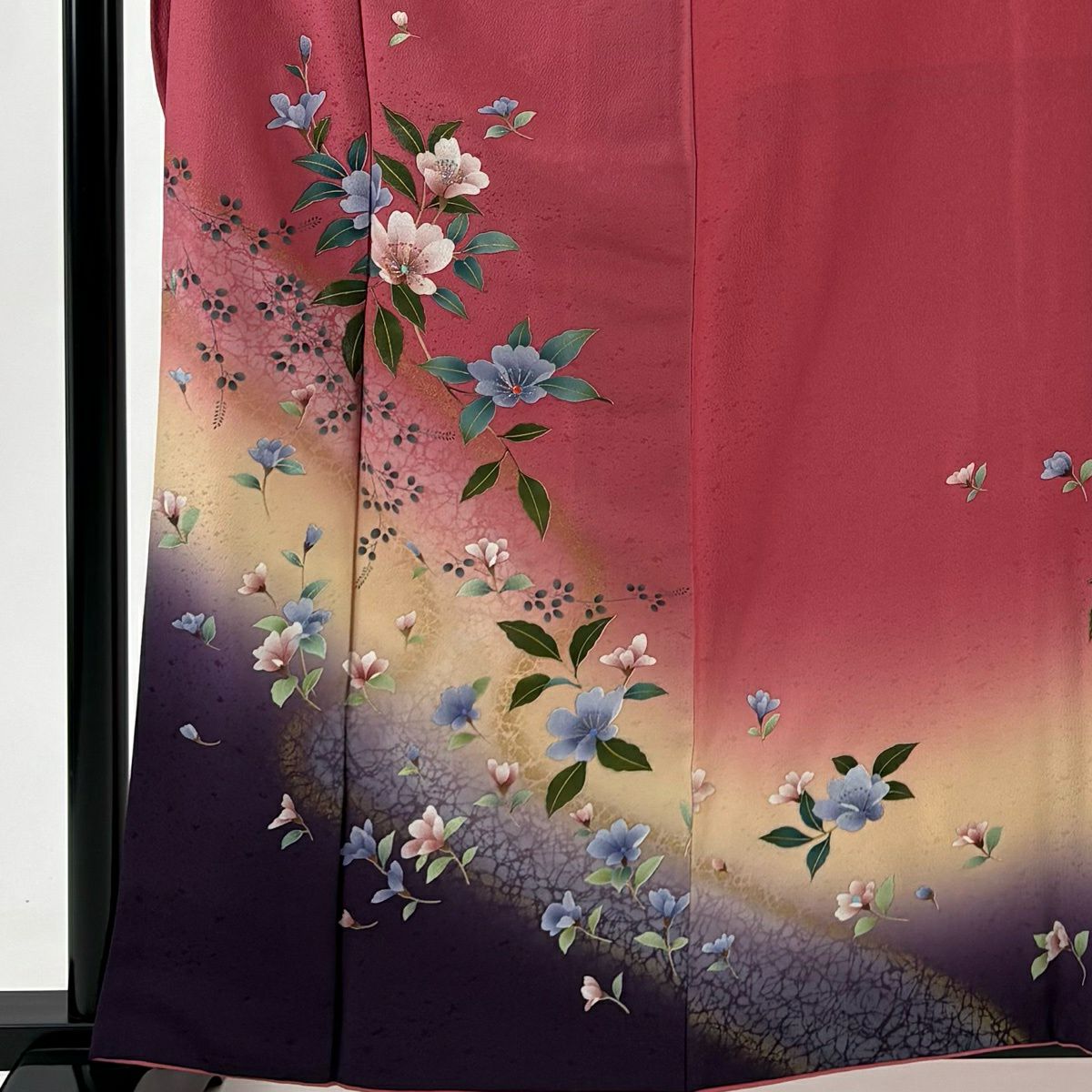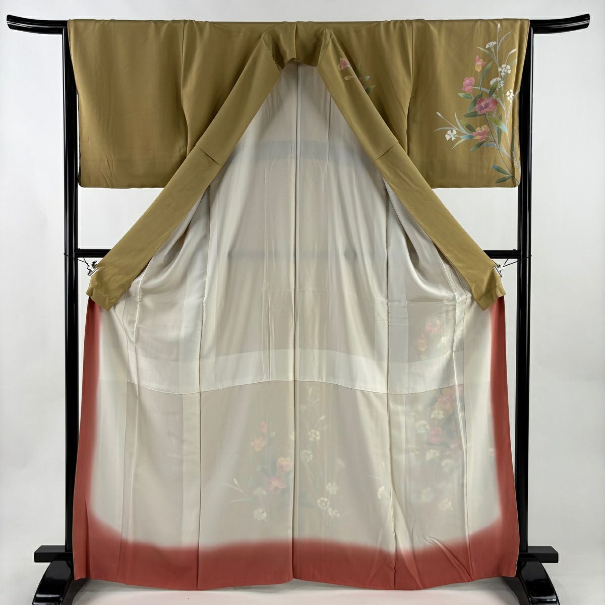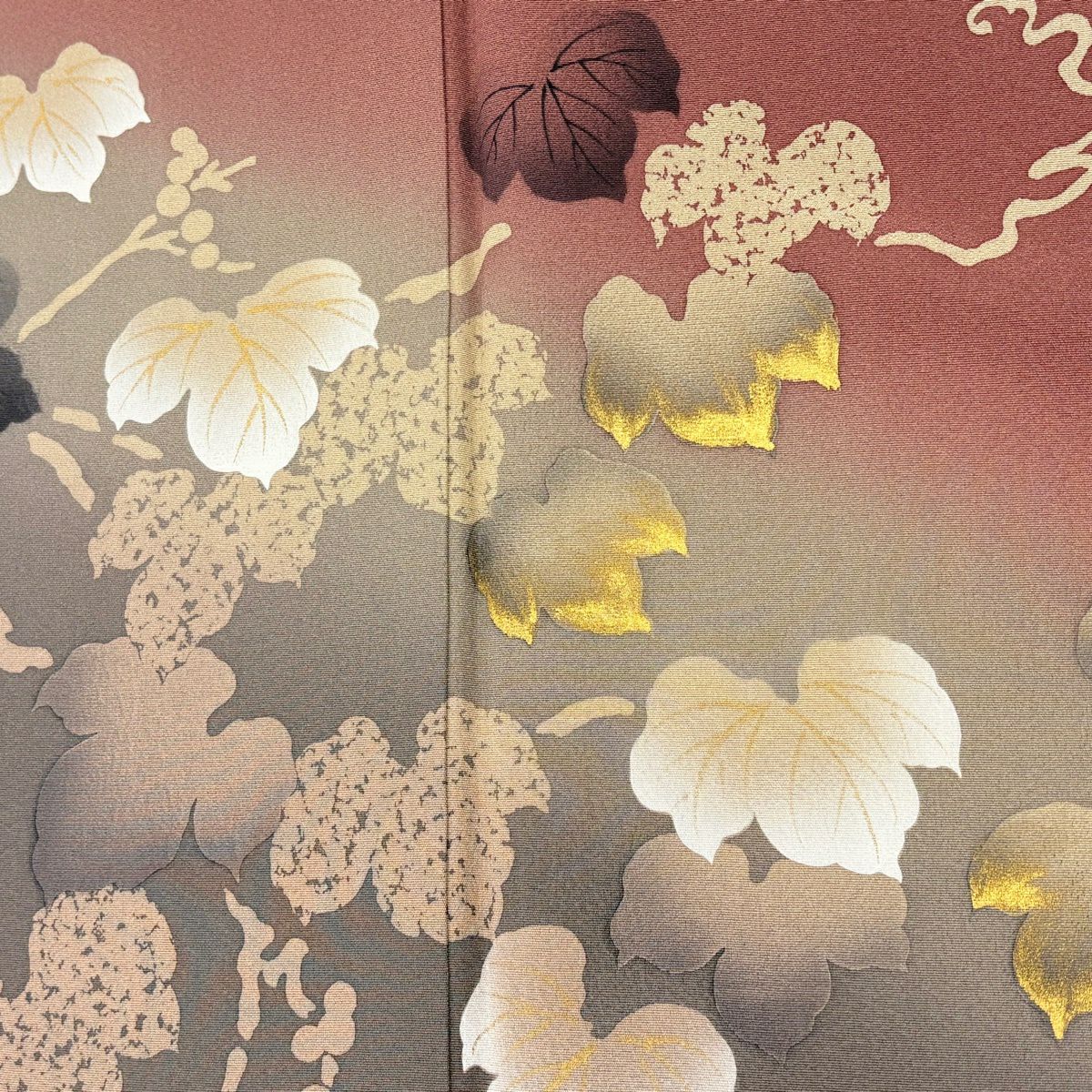 30%OFF 訪問着 身丈156cm 裄丈65.5cm M 袷 枝花 霞ぼかし 小豆色 正絹 秀品 K30