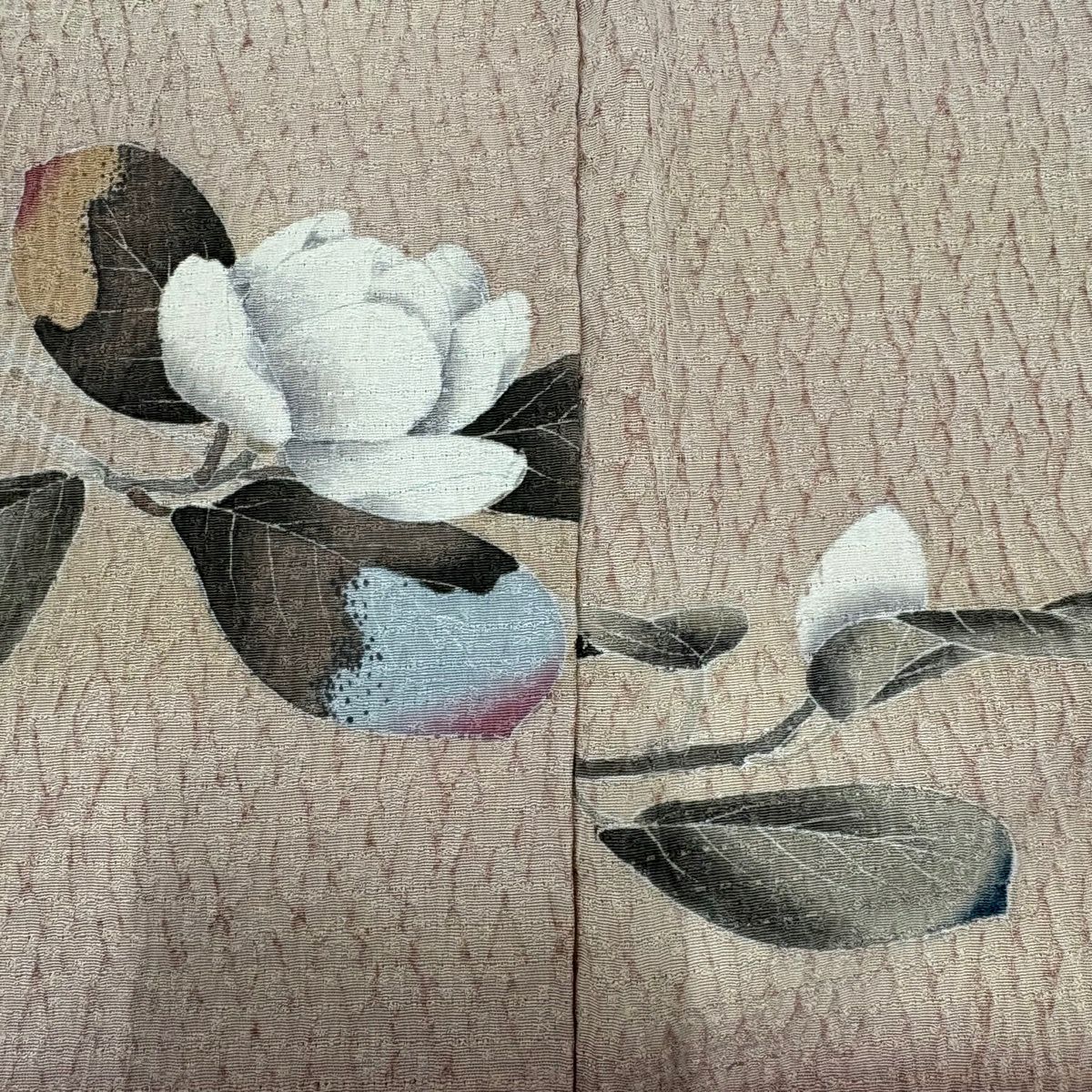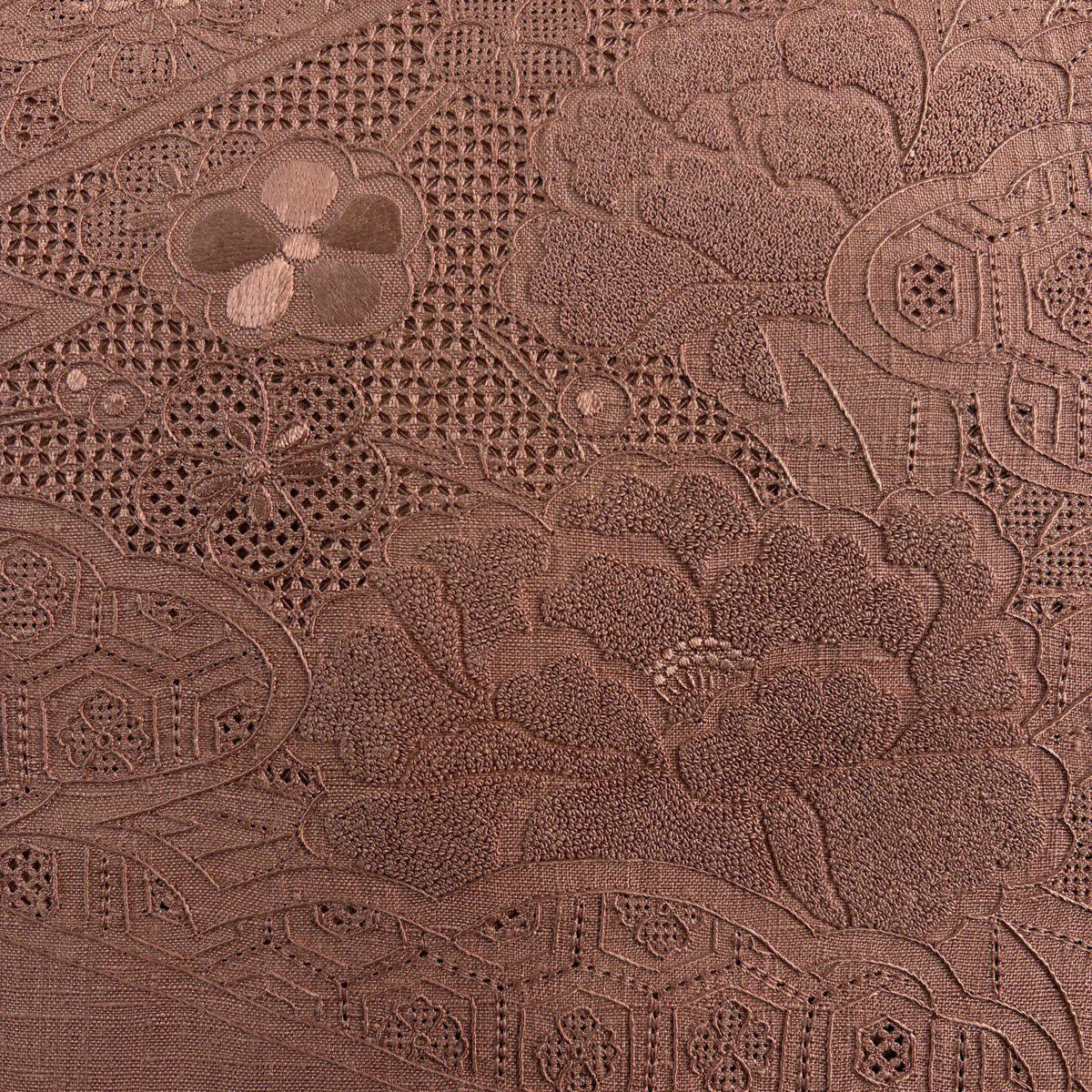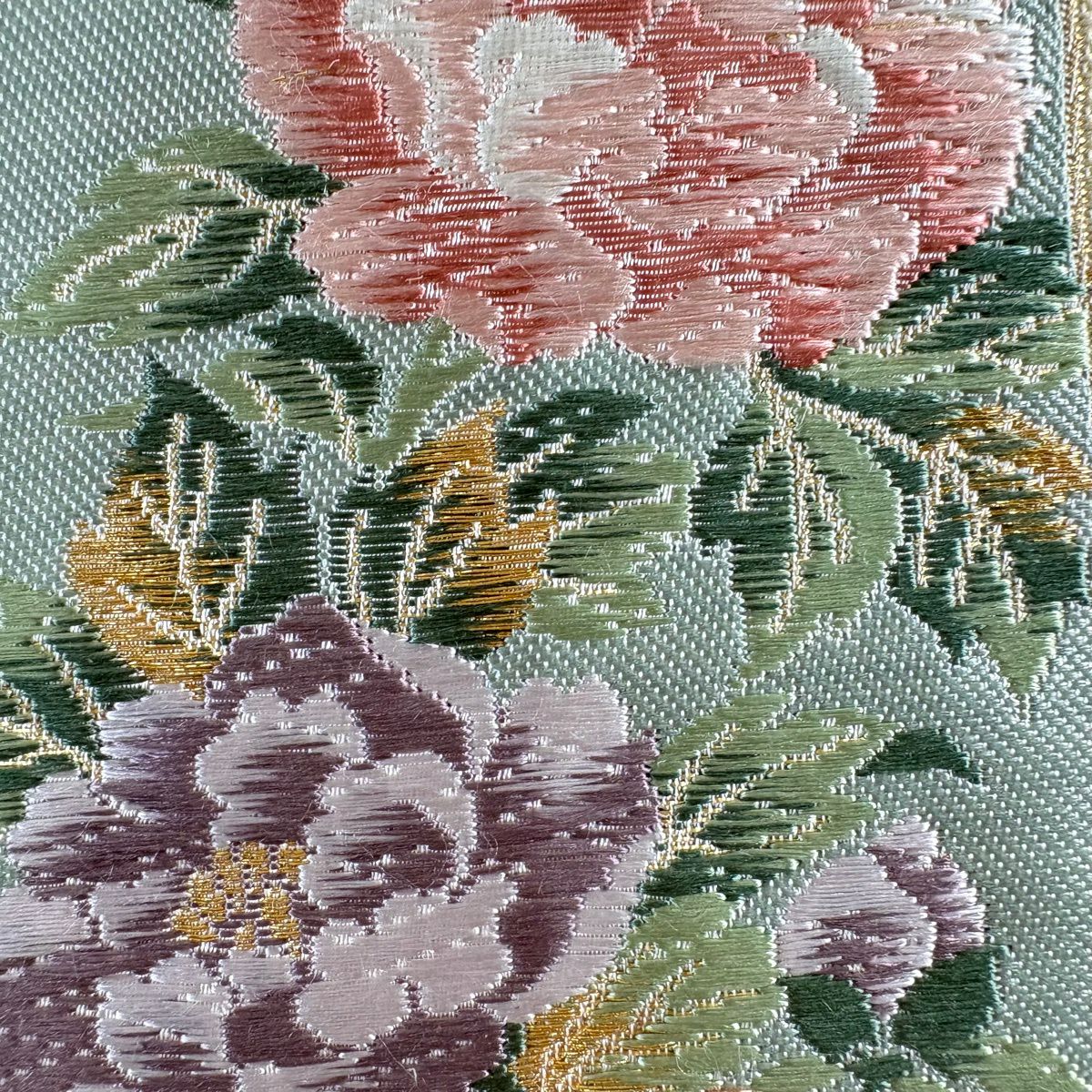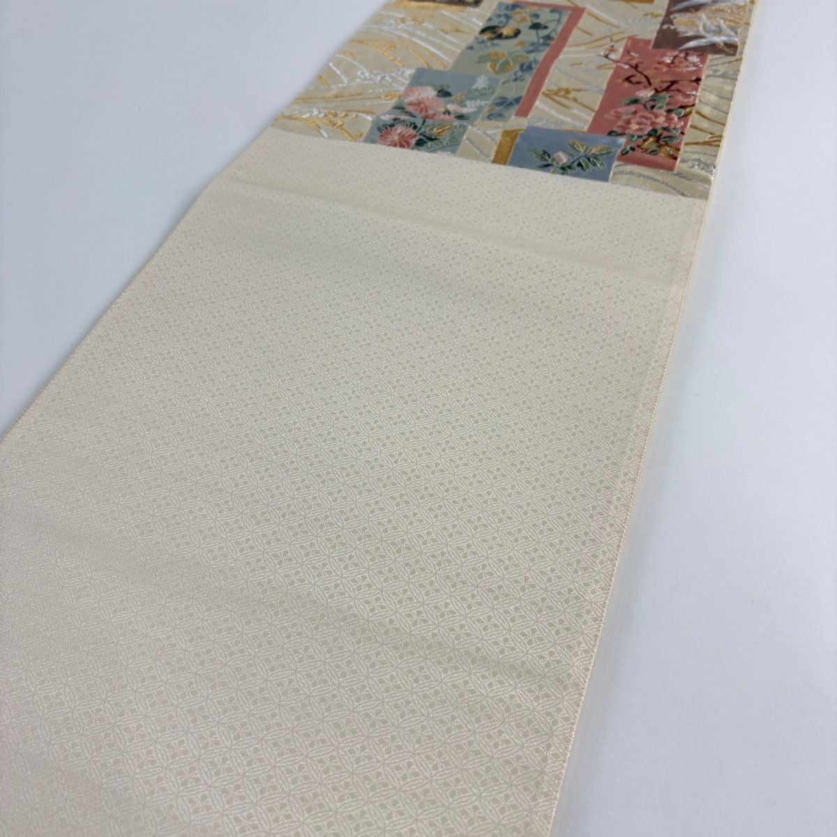 30%OFF 【美品】 袋帯 秀品 紬地 牡丹 亀甲 刺繍 ピンクベージュ お太鼓柄 正絹 K30