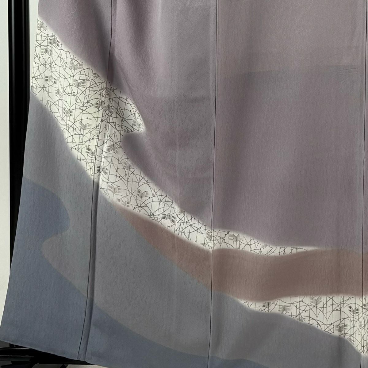 30%OFF 付下げ 身丈160.5cm 裄丈65.5cm M 袷 若松 霞 ぼかし 灰紫 正絹 秀品 K30