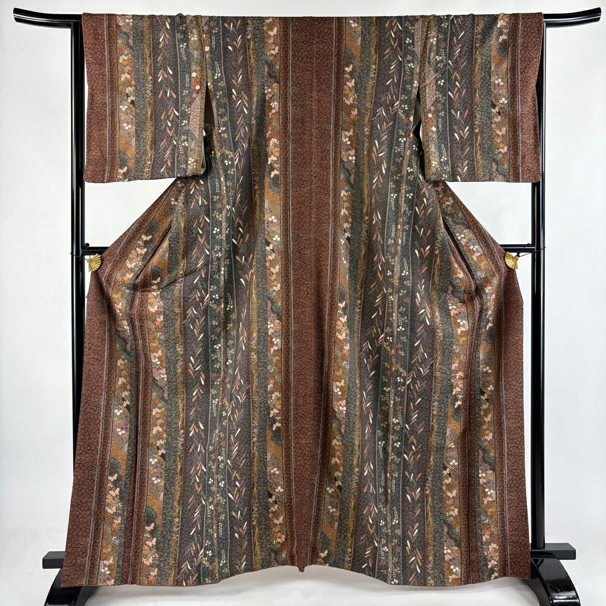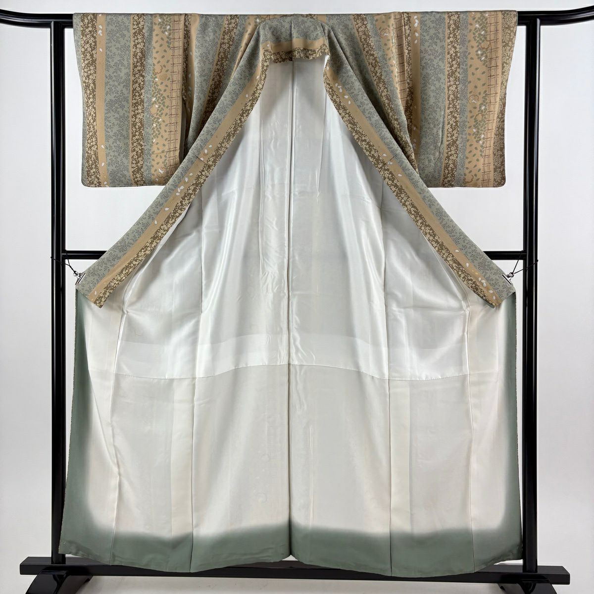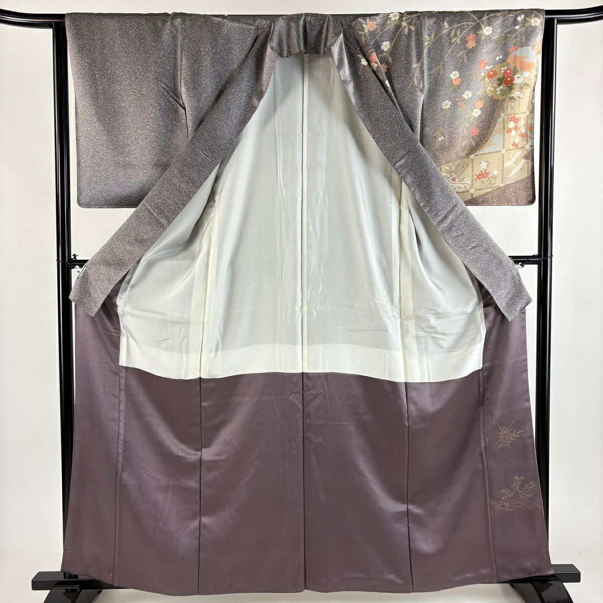 30%OFF 訪問着 身丈160cm 裄丈67cm M 袷 落款あり 笹 ぼかし 灰茶 正絹 秀品 K30