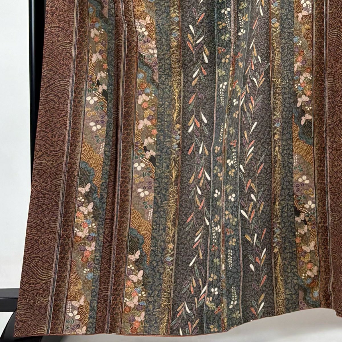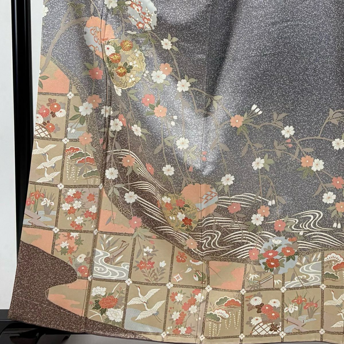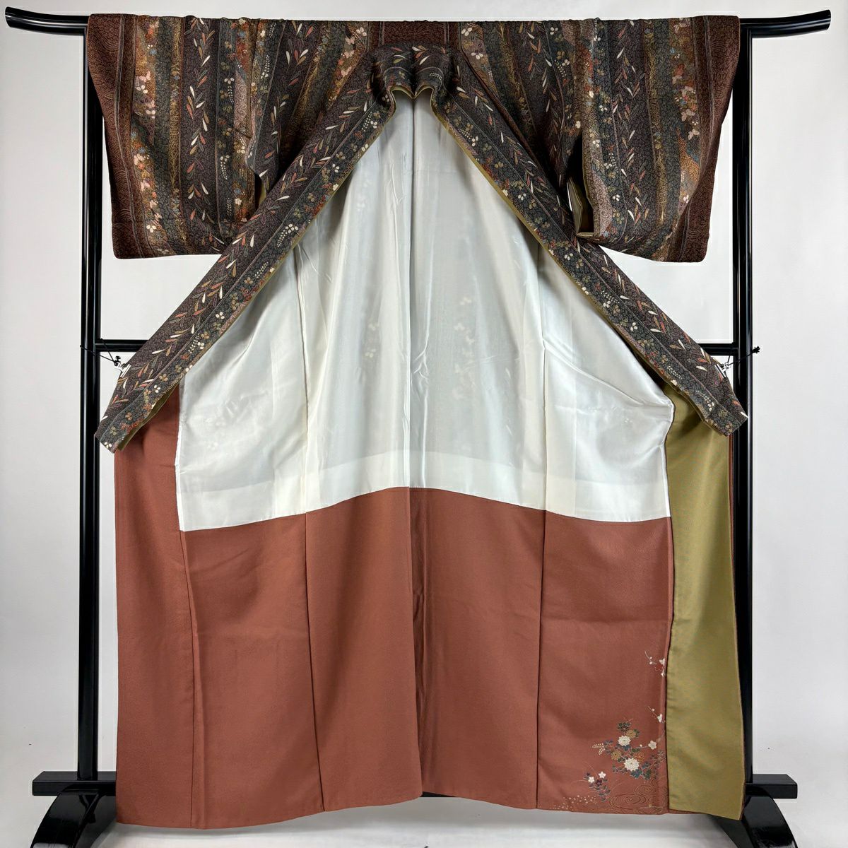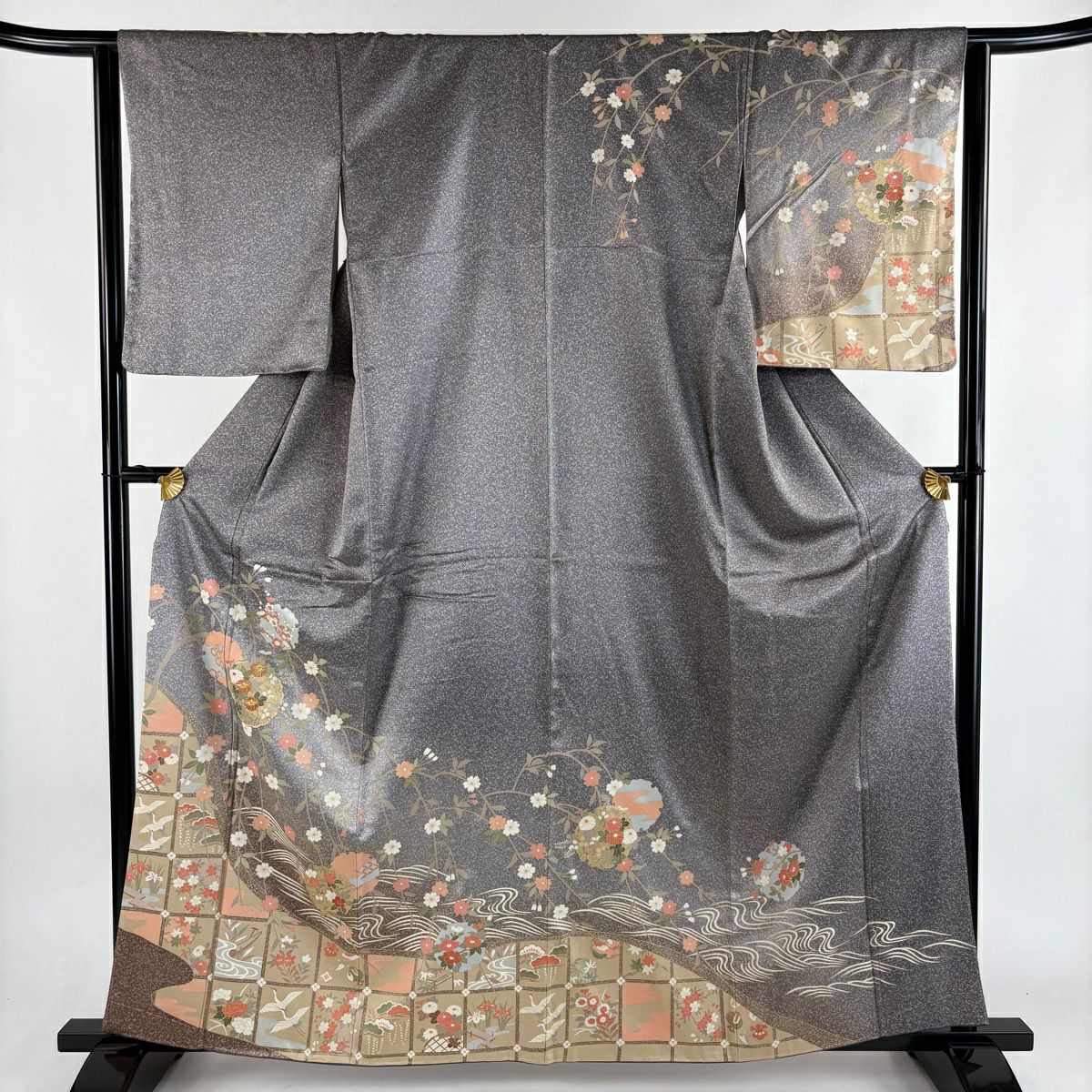 30%OFF 訪問着 身丈160cm 裄丈67cm M 袷 落款あり 笹 ぼかし 灰茶 正絹 秀品 K30