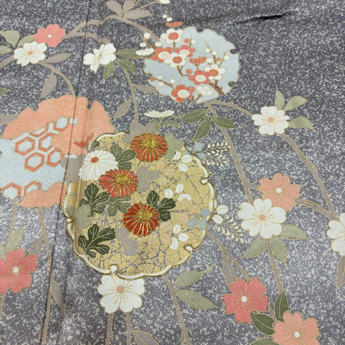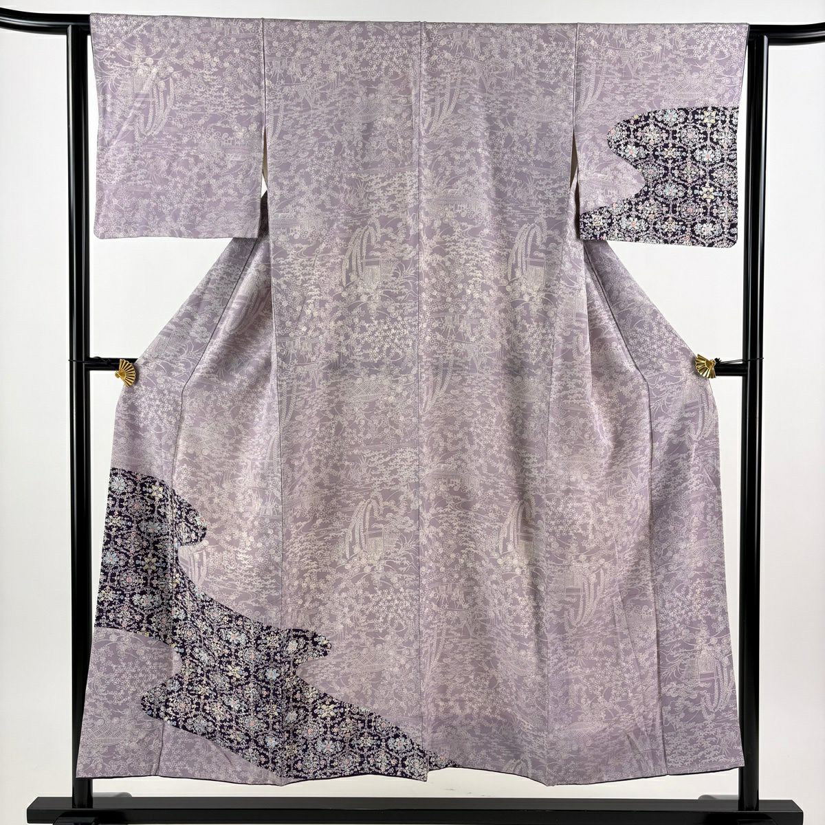 30%OFF 訪問着 身丈161cm 裄丈63cm S 袷 雪輪 草花 金糸 金彩 灰紫 正絹 秀品 K30