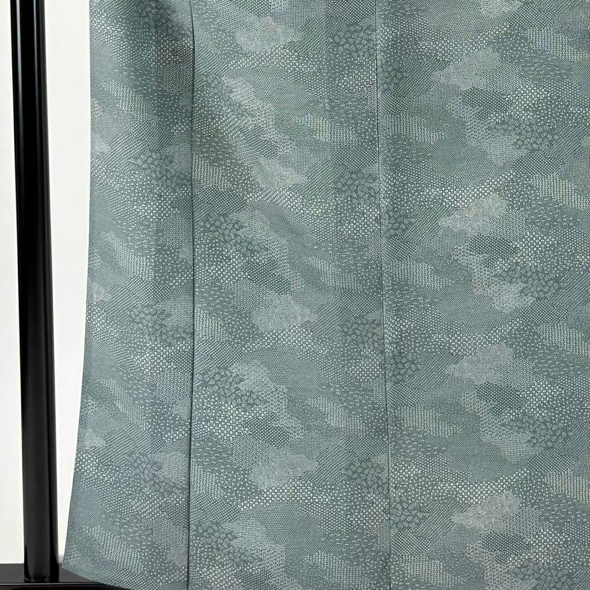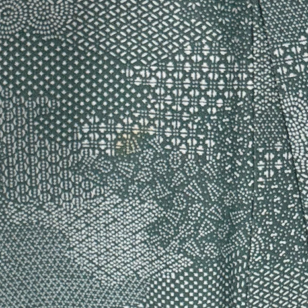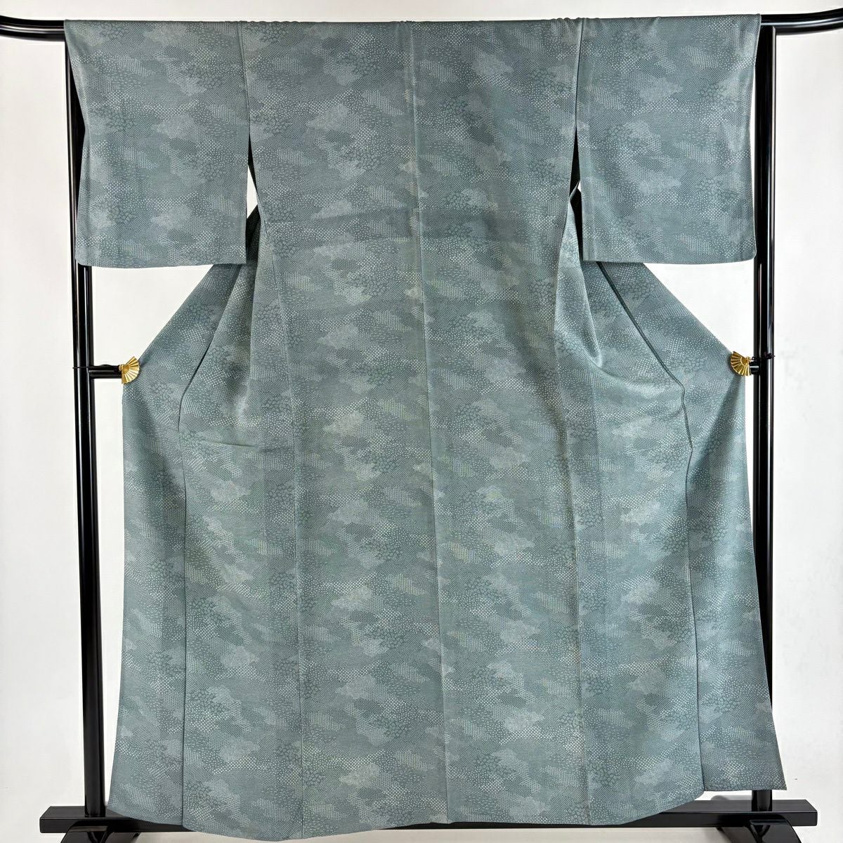 30%OFF 江戸小紋 身丈158cm 裄丈65cm M 単衣 落款あり 寄せ柄 灰緑 正絹 秀品 K30