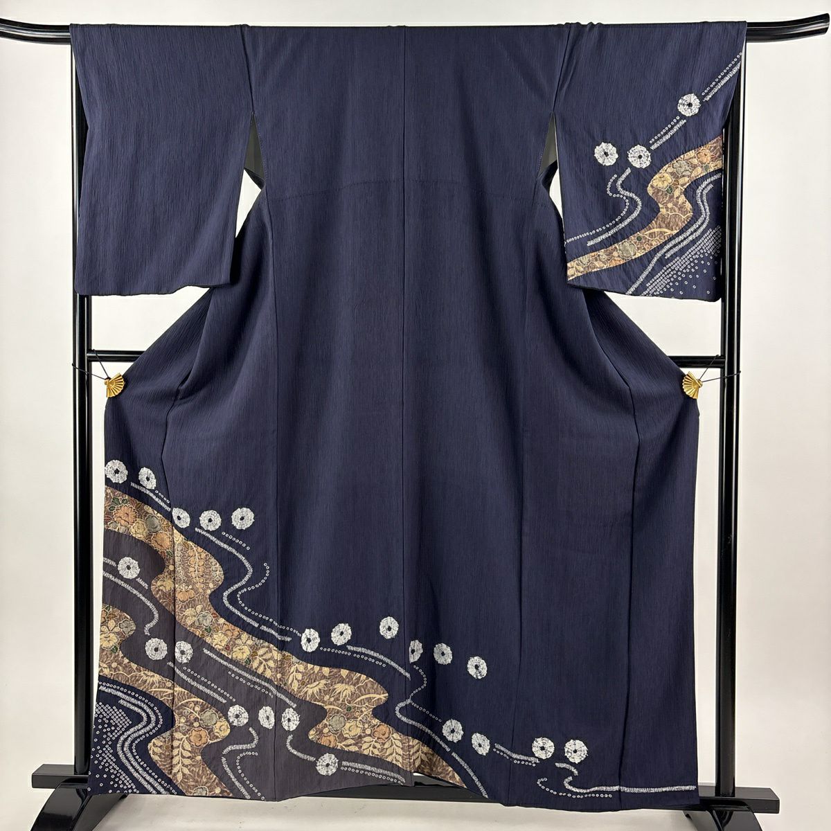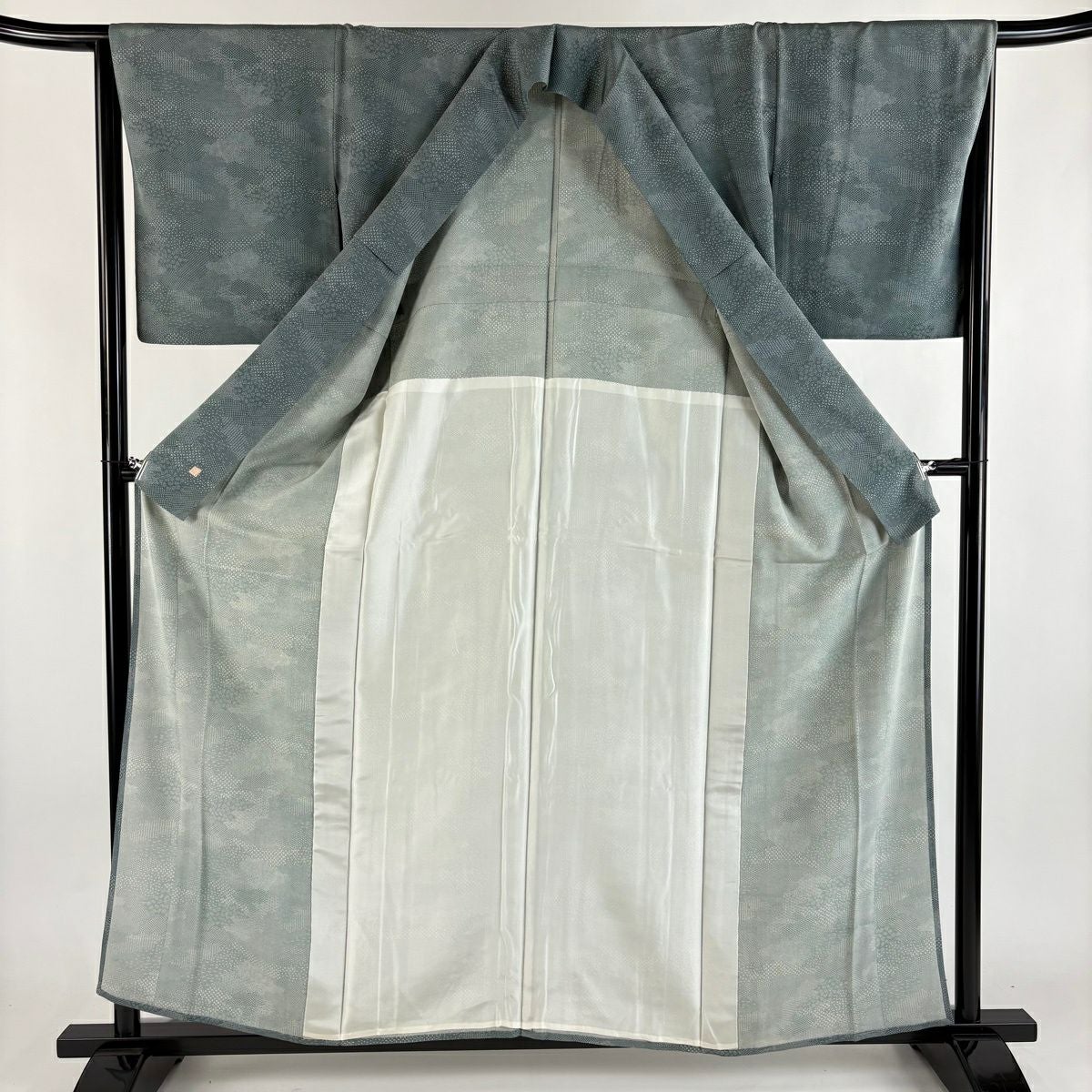 30%OFF 訪問着 身丈166cm 裄丈66cm M 袷 葡萄 青海波 金彩 絞り 青灰色 正絹 秀品 K30