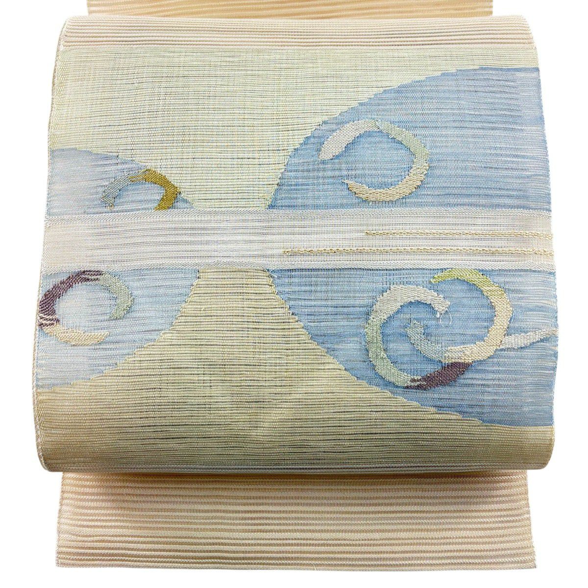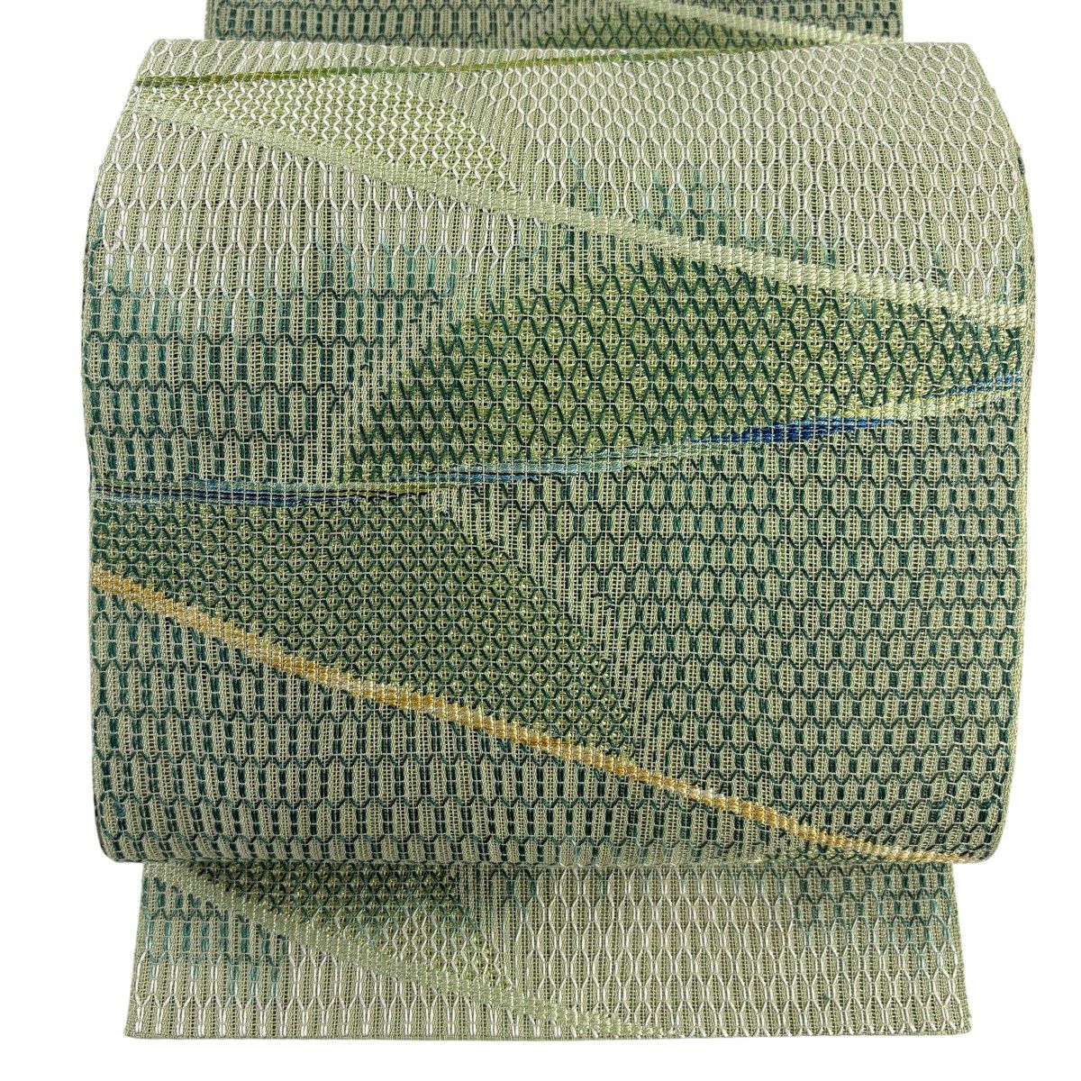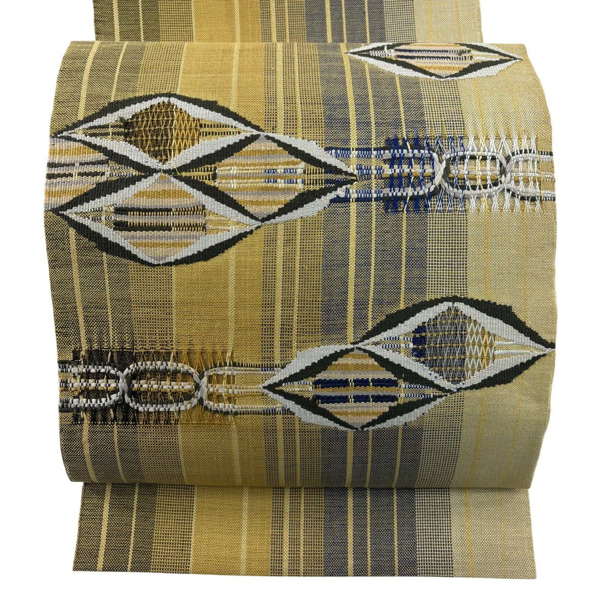 30%OFF 【美品】 名古屋帯 秀品 八寸名古屋帯 松葉仕立て 夏帯 七宝 縞 金糸 薄黄土色 正絹 K30