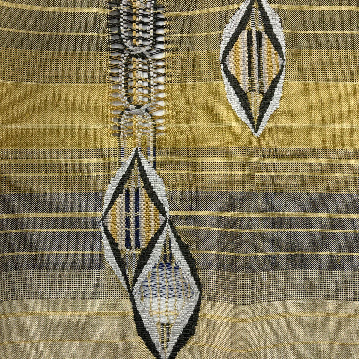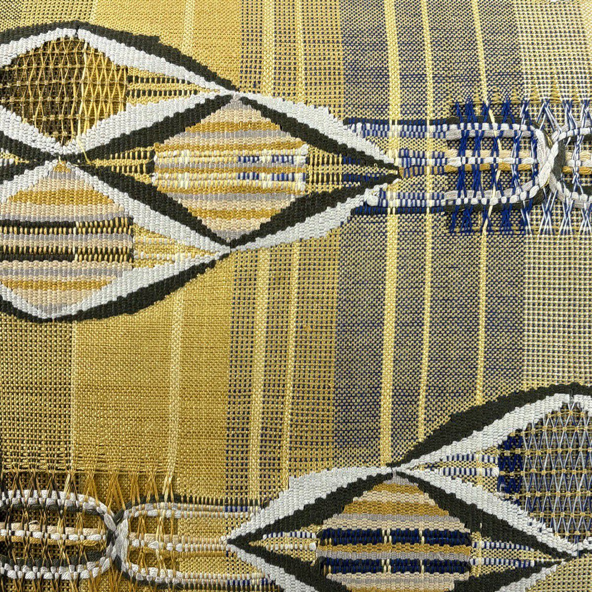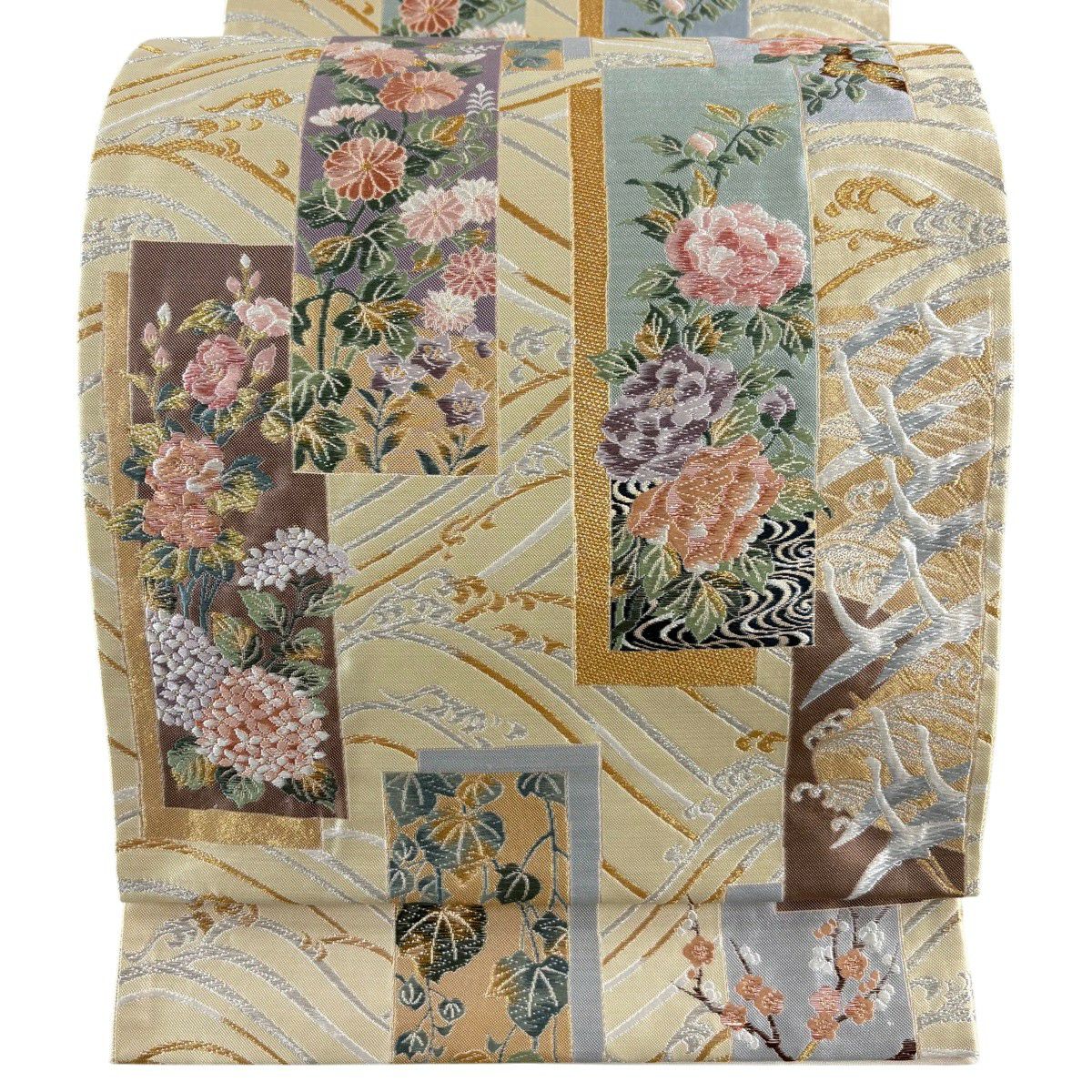 30%OFF 【美品】 名古屋帯 秀品 八寸名古屋帯 松葉仕立て 夏帯 七宝 縞 金糸 薄黄土色 正絹 K30