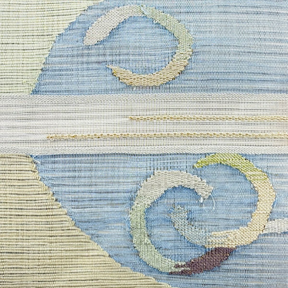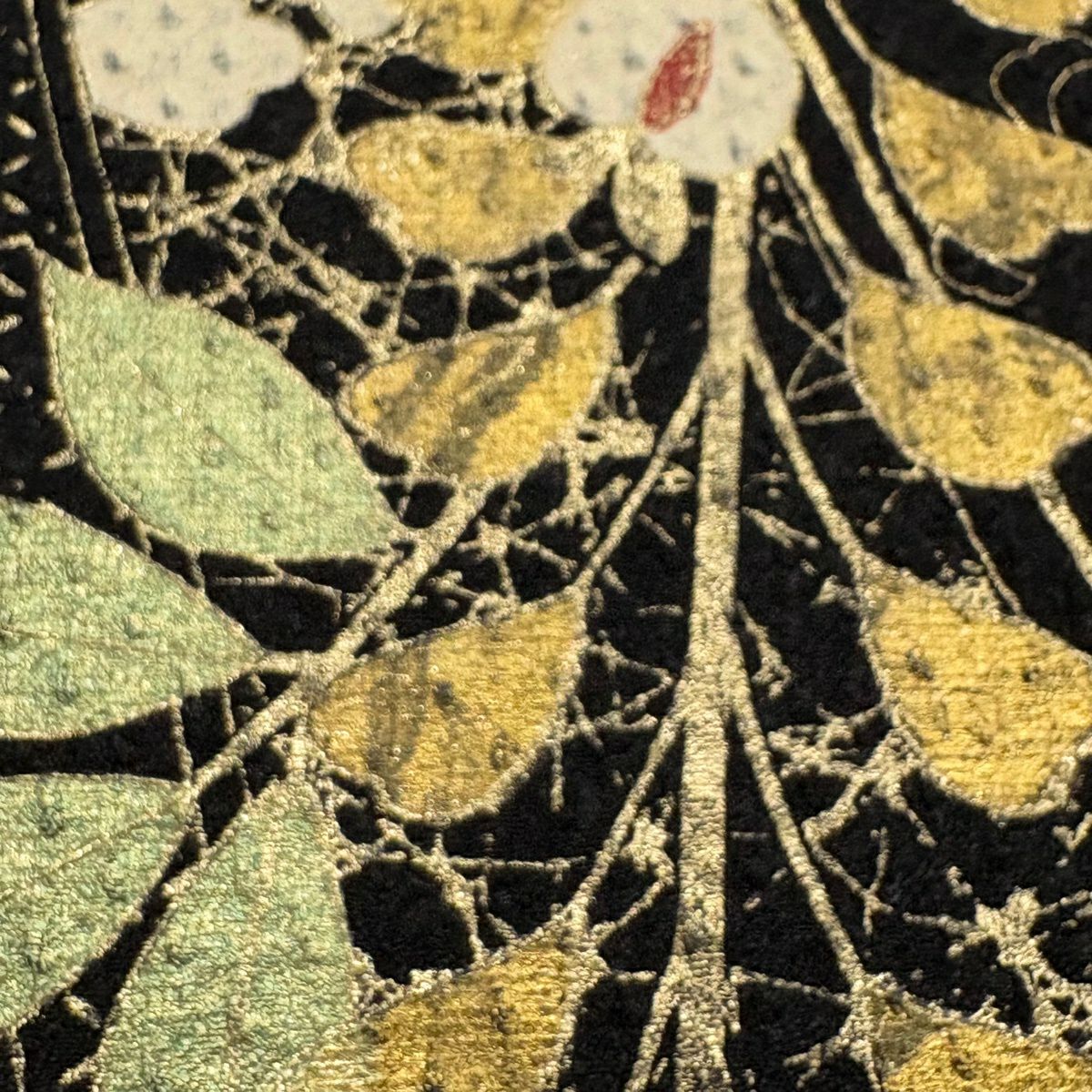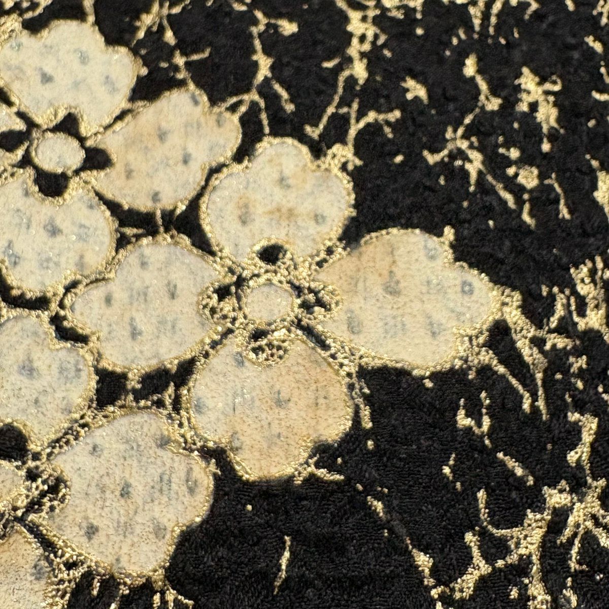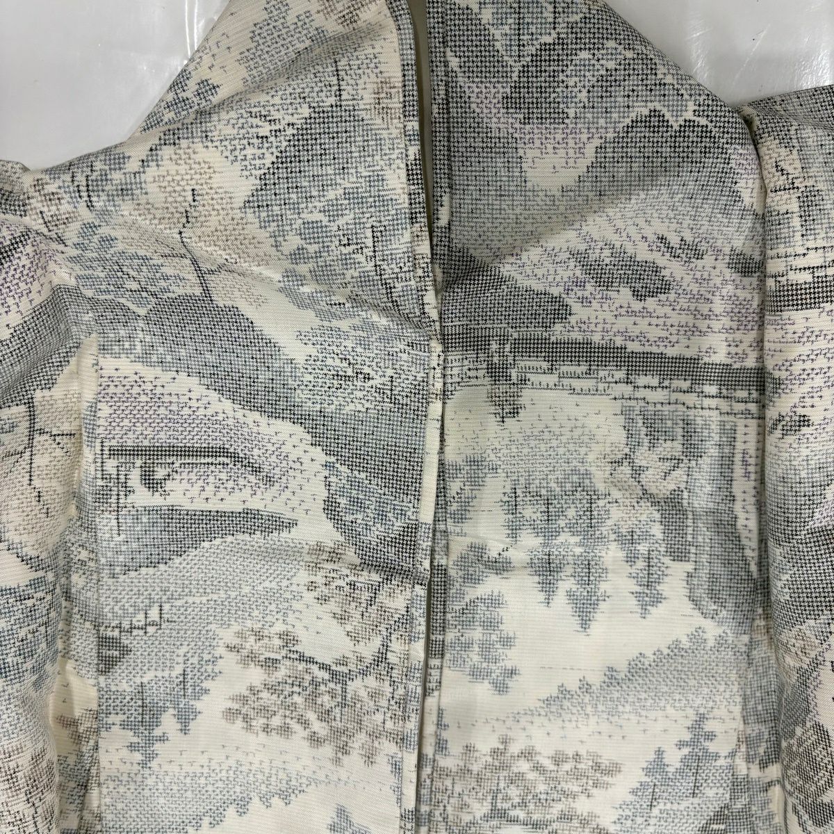30%OFF 【美品】 袋帯 秀品 彫金 関西仕立て 裂取花丸尽し 金糸 箔 青灰色 六通 正絹 K30