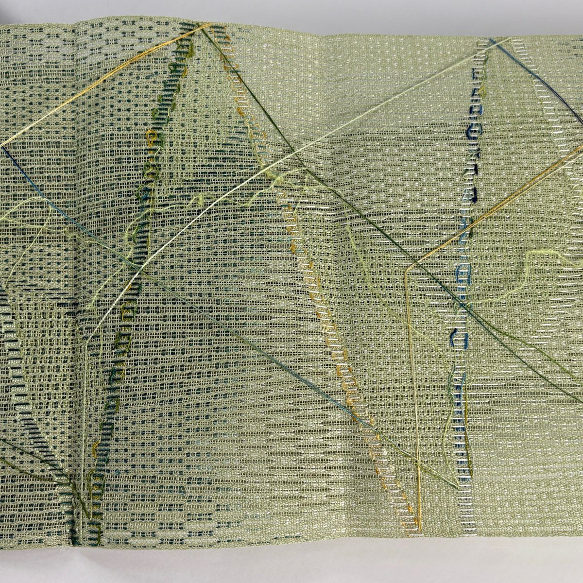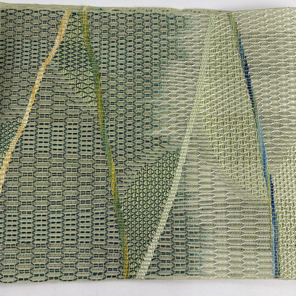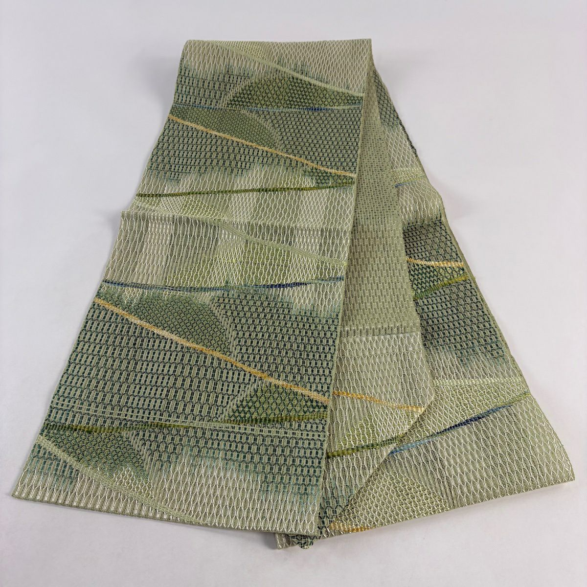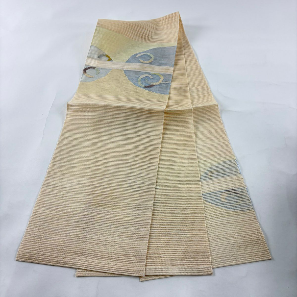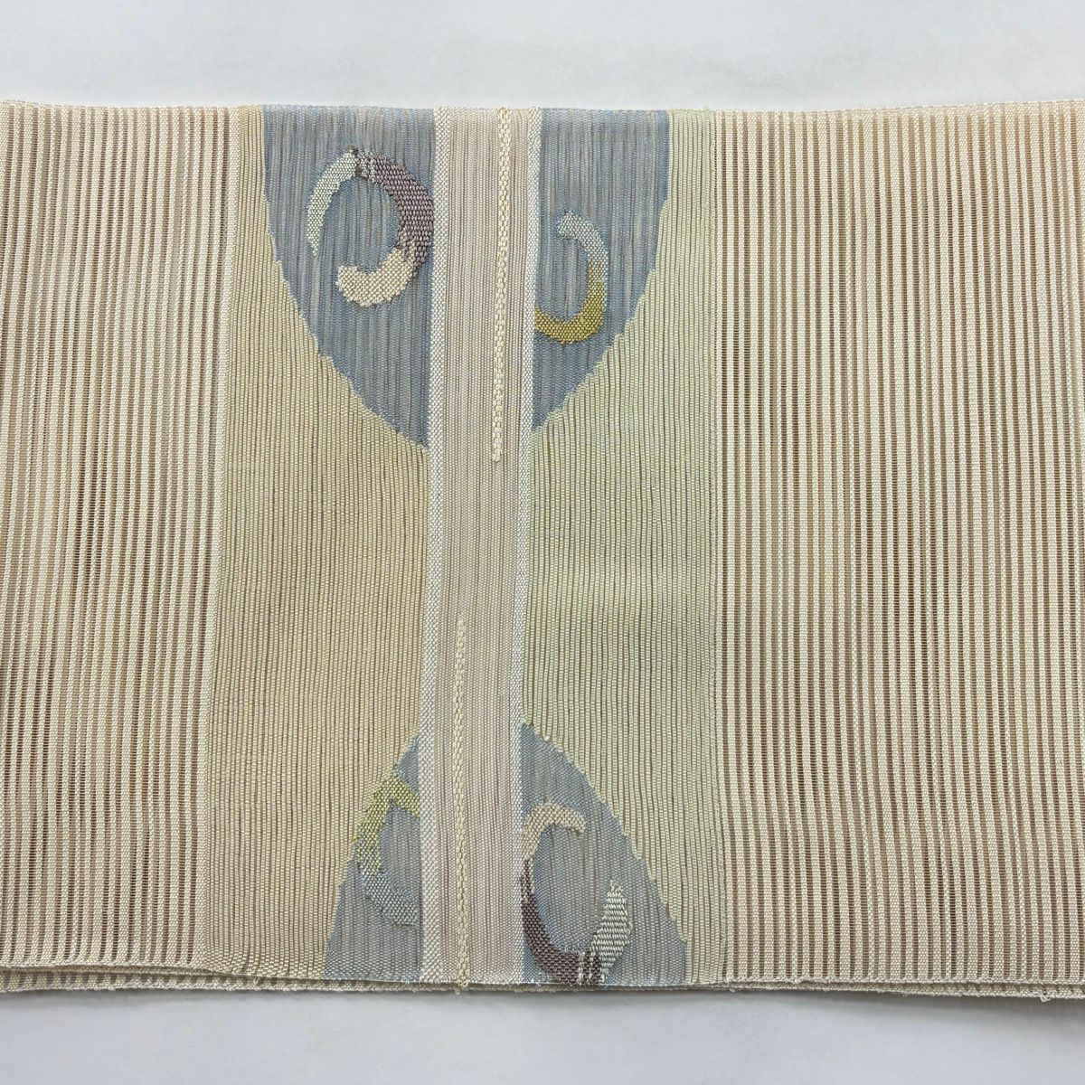 30%OFF 【美品】 名古屋帯 秀品 夏帯 絽 八寸名古屋帯 幾何学 縞 金銀糸 ベージュ 正絹 K30
