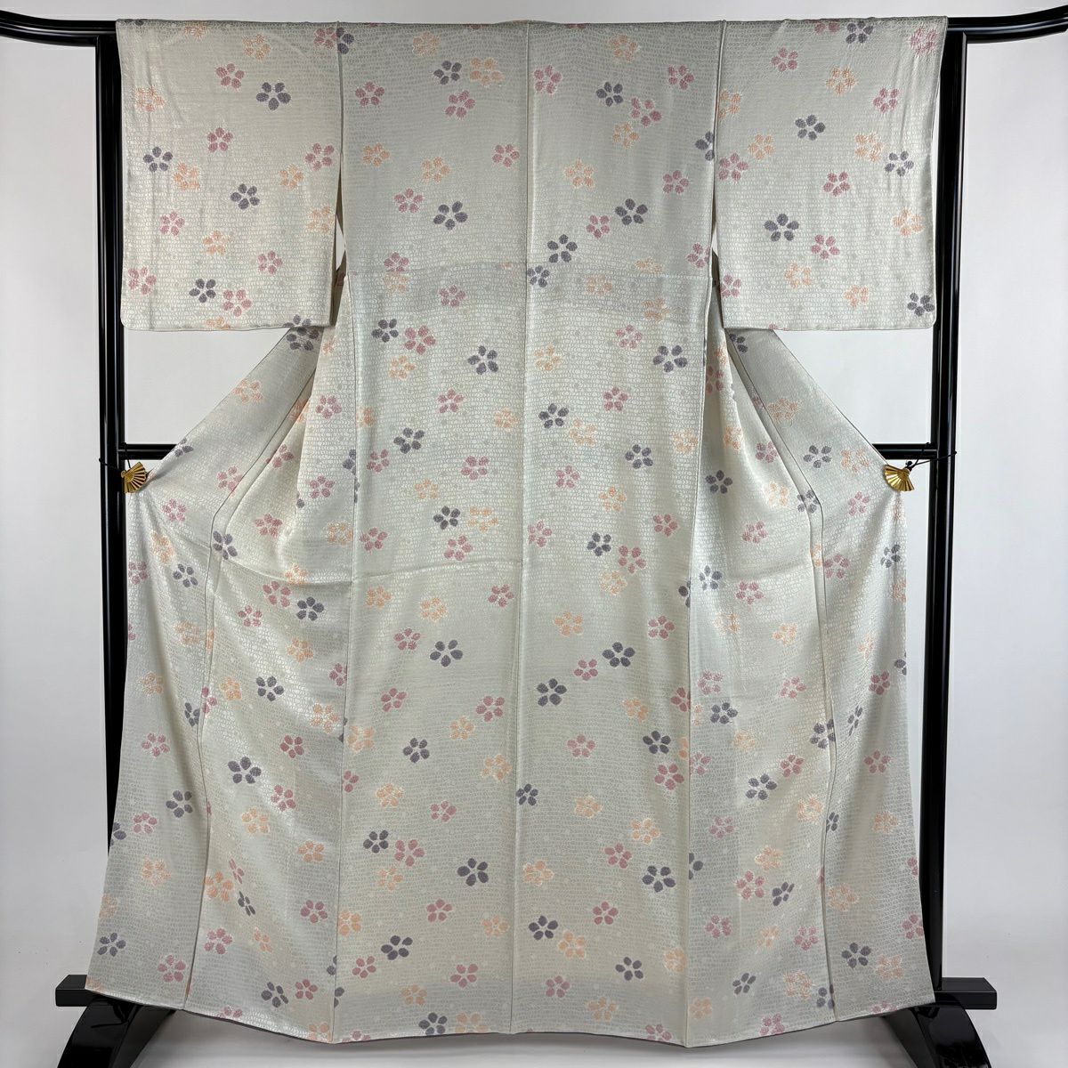 30%OFF 小紋 身丈162cm 裄丈63.5cm S 袷 花 地紋 絞り クリーム 正絹 秀品 K30