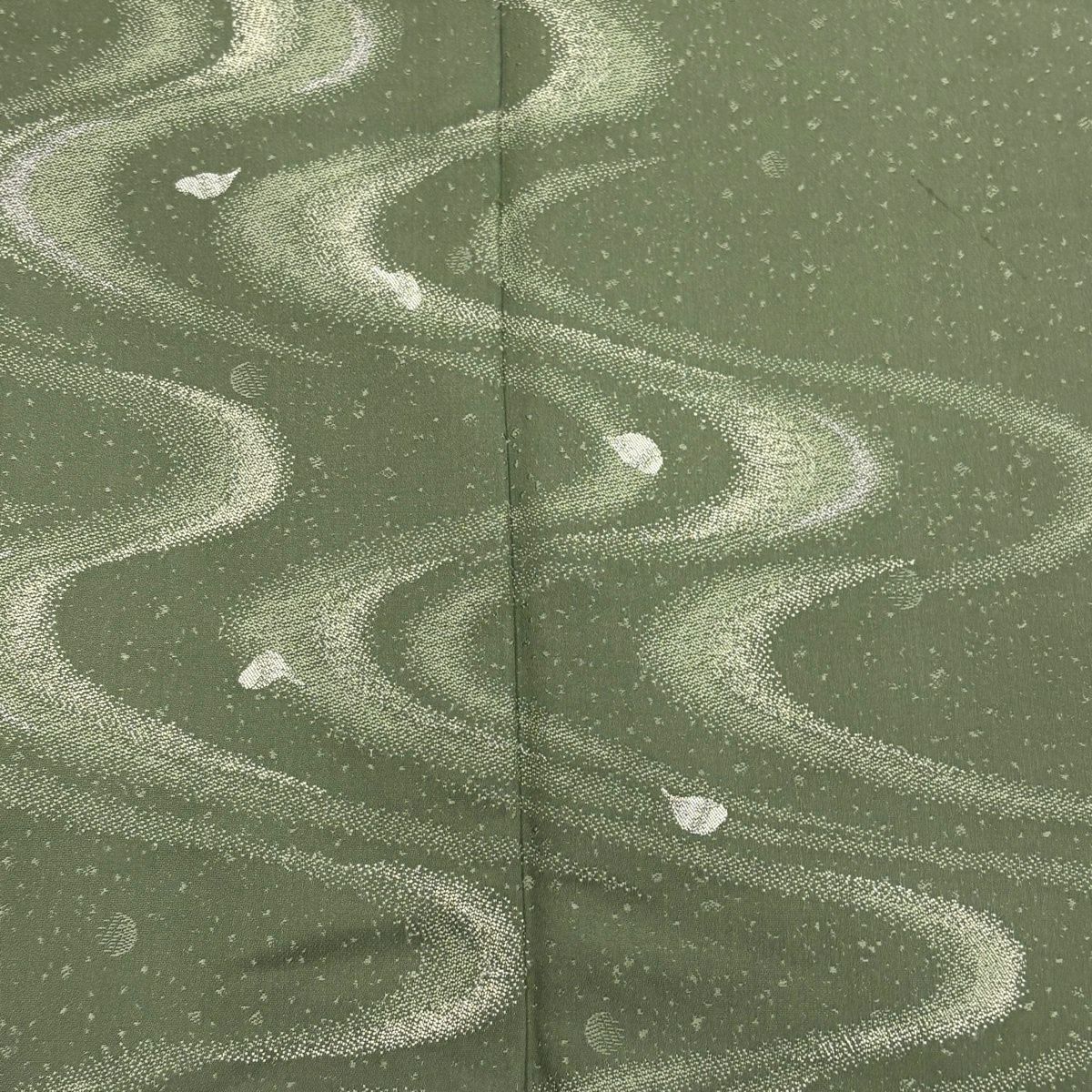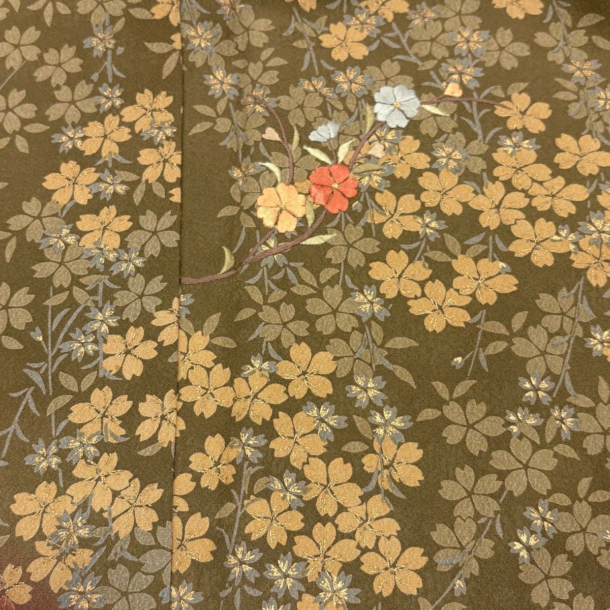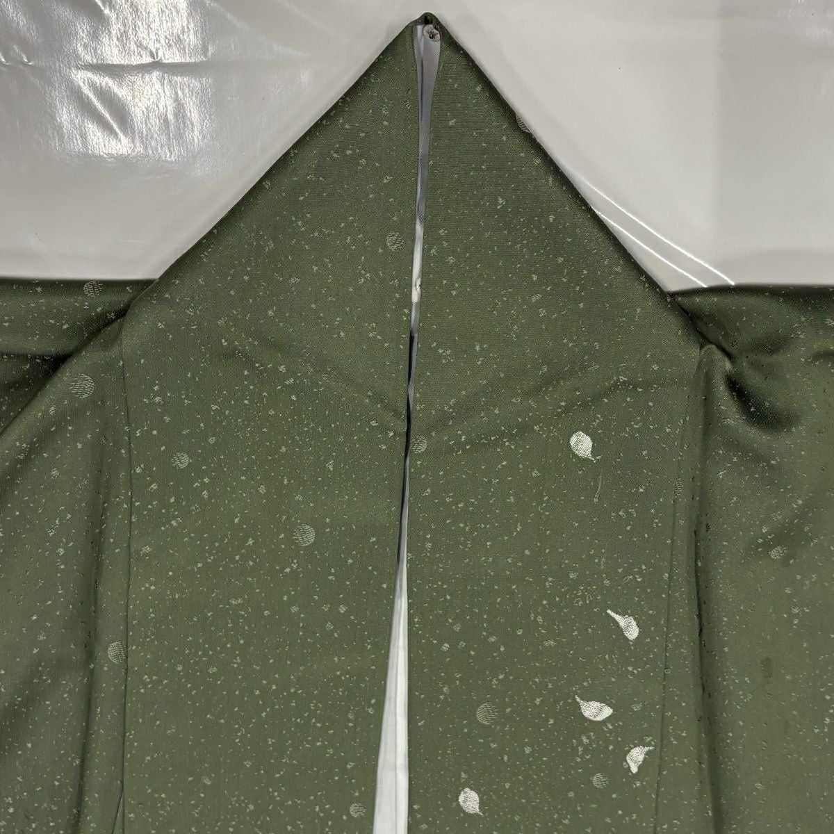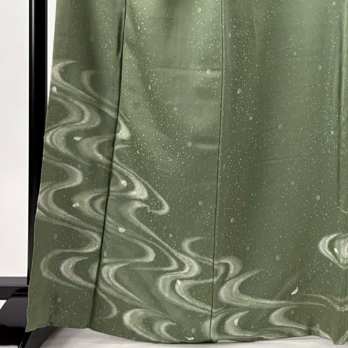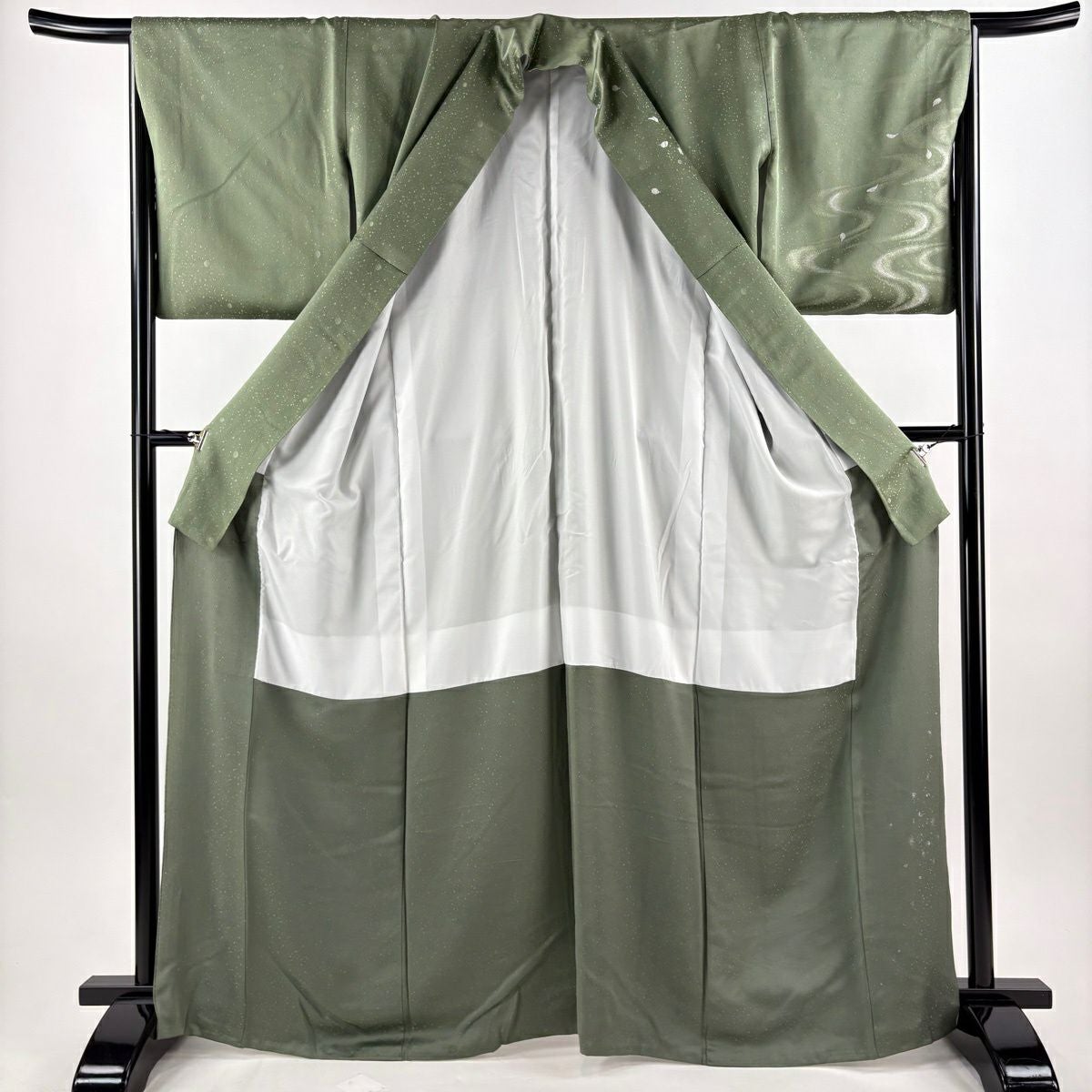 30%OFF 付下げ 身丈166cm 裄丈65cm M 袷 流水 花びら 箔 よもぎ色 正絹 秀品 K30