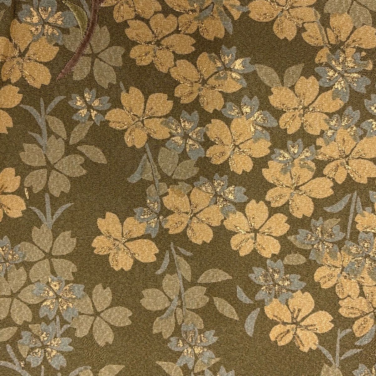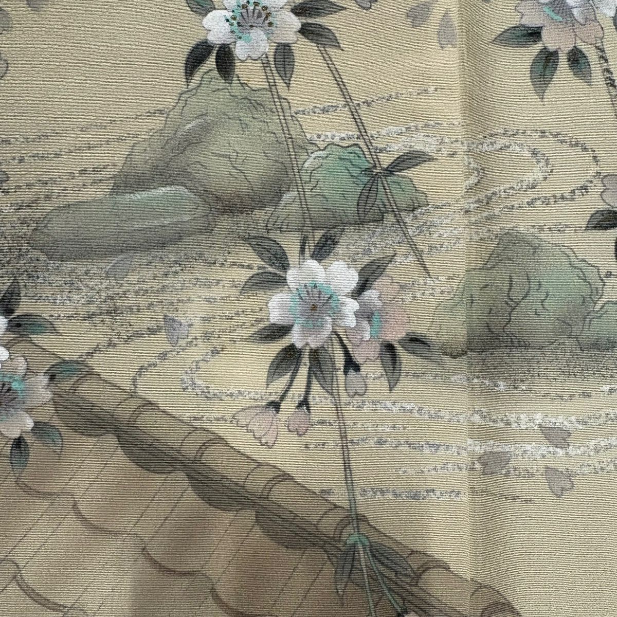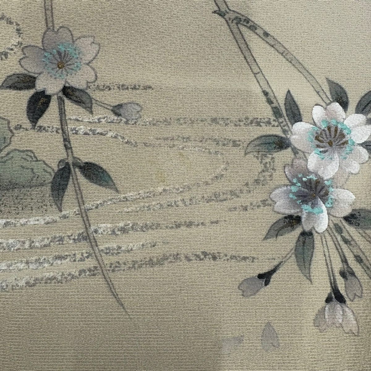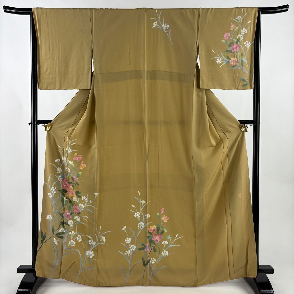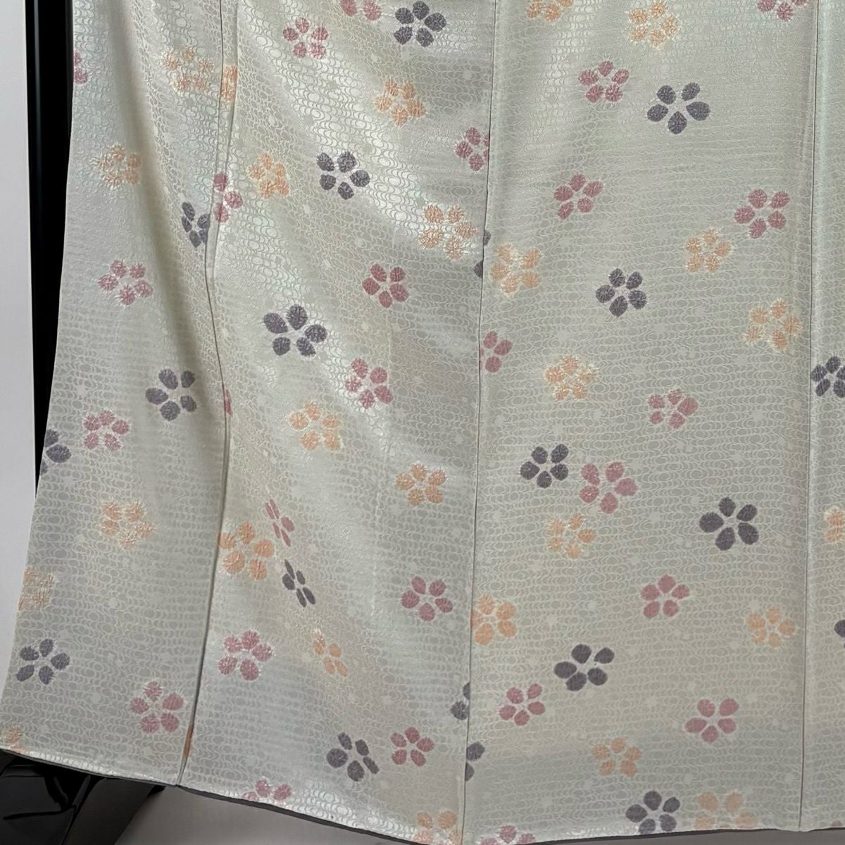 30%OFF 付下げ 身丈166cm 裄丈65cm M 袷 流水 花びら 箔 よもぎ色 正絹 秀品 K30