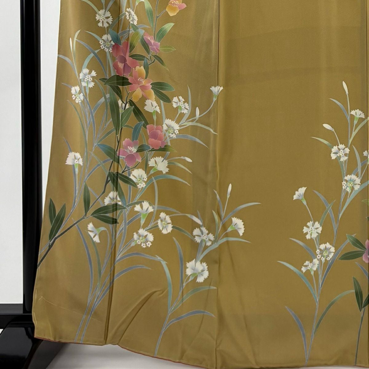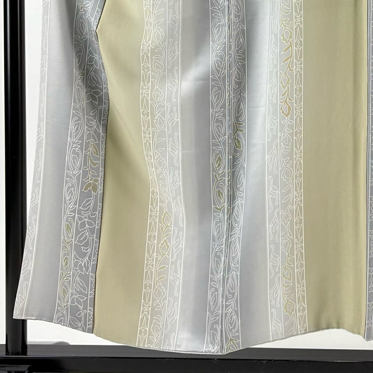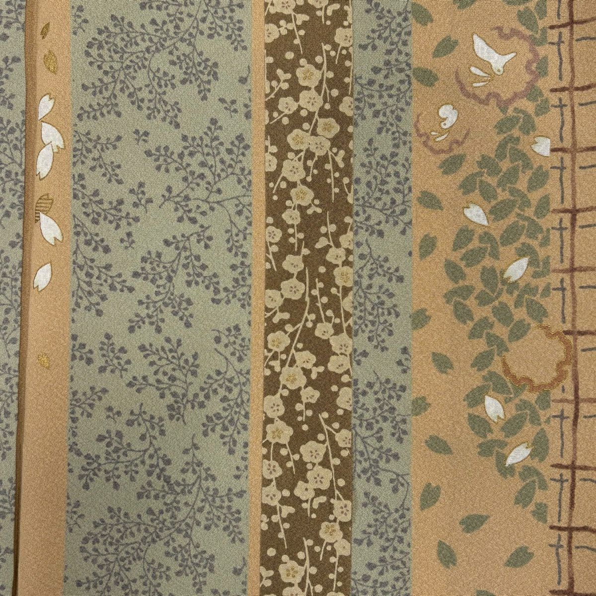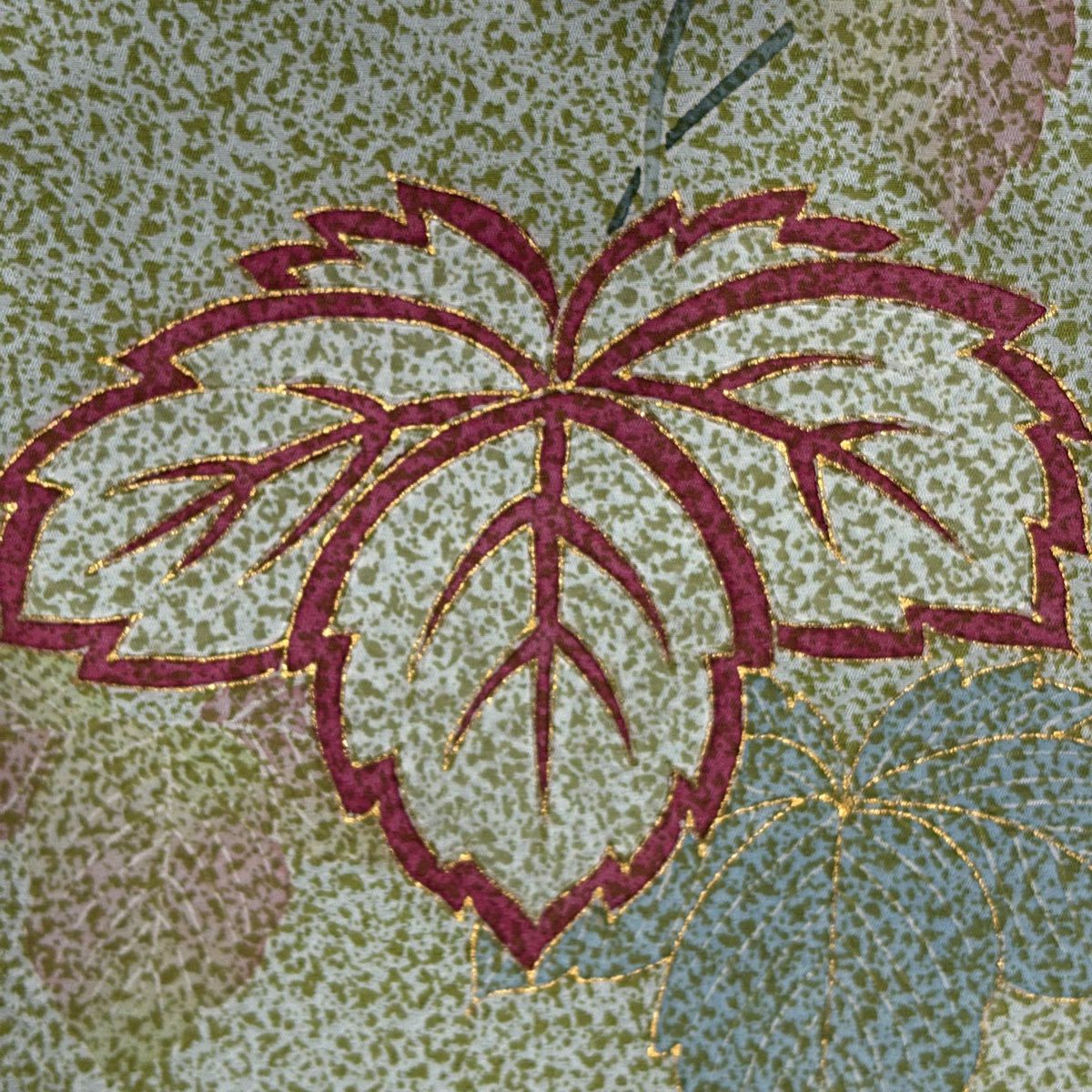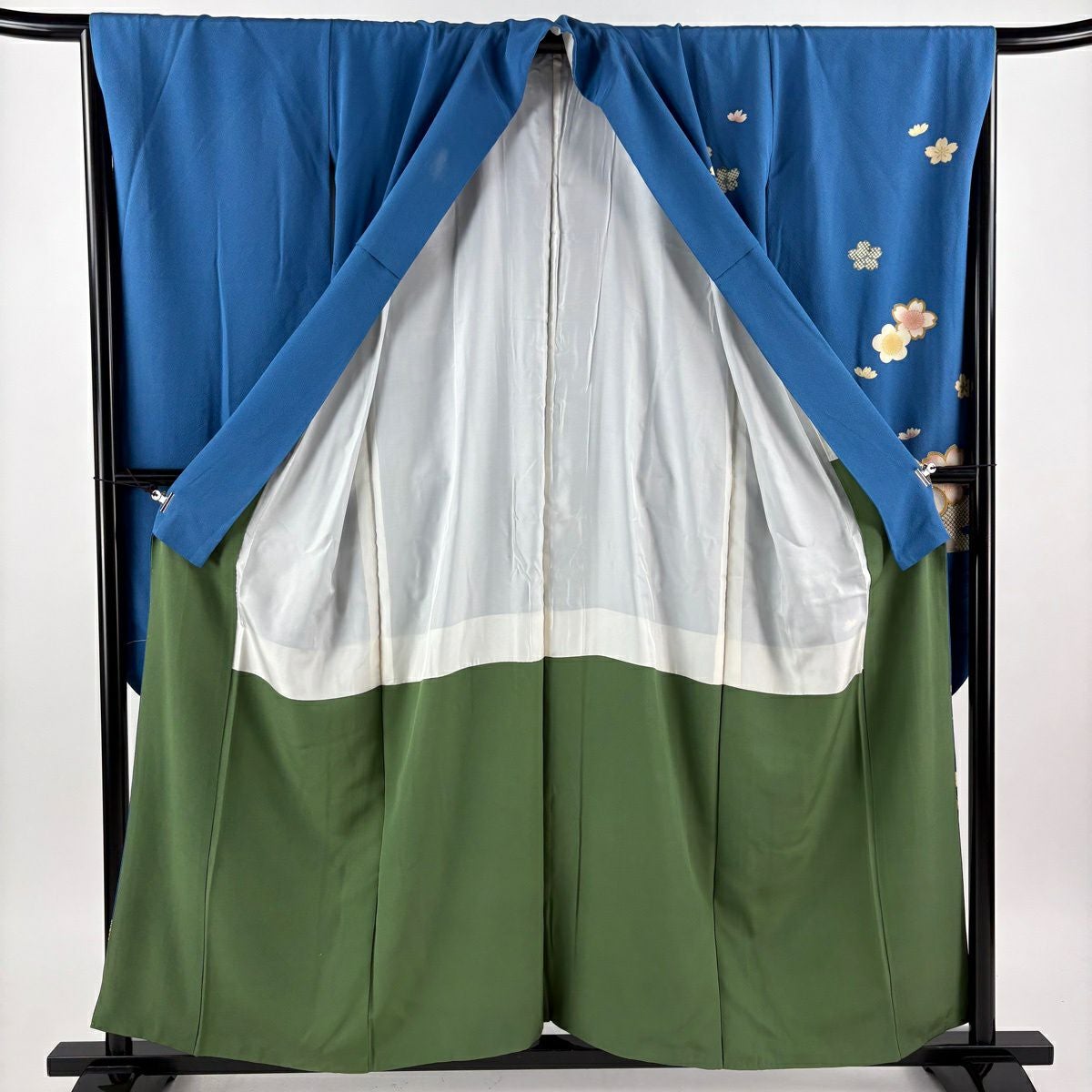 30%OFF 付下げ 身丈166cm 裄丈65cm M 袷 流水 花びら 箔 よもぎ色 正絹 秀品 K30