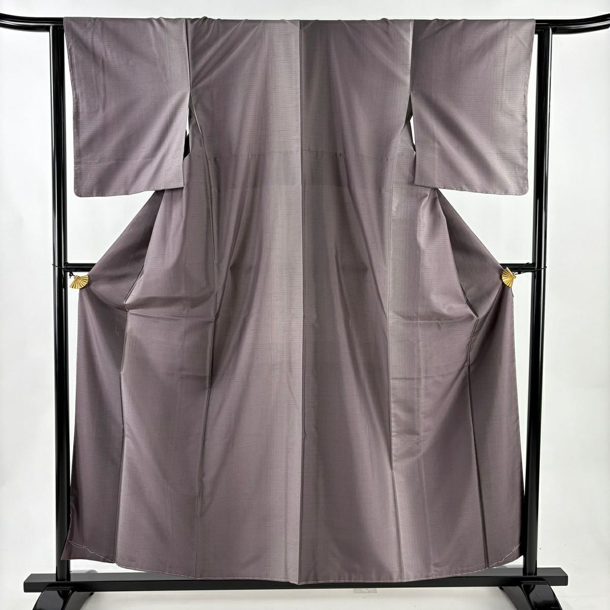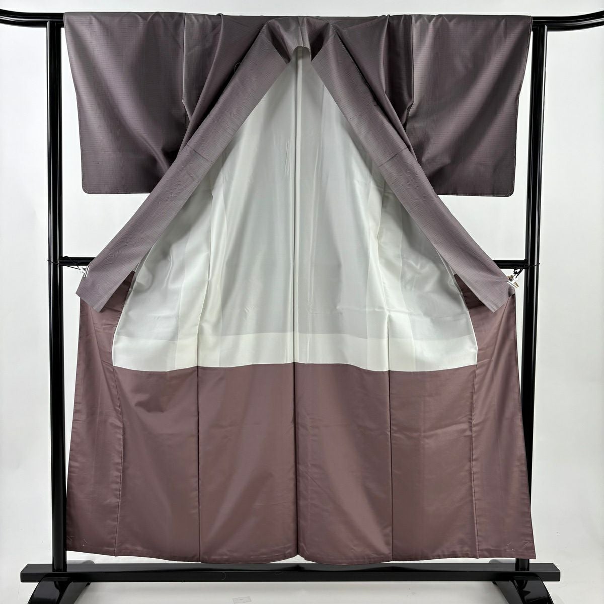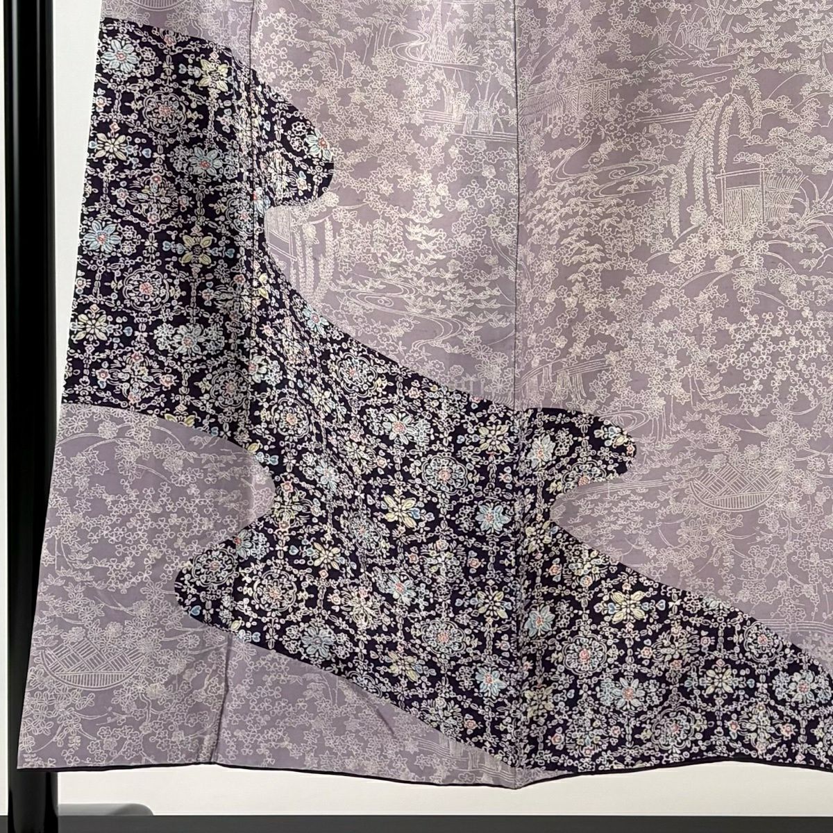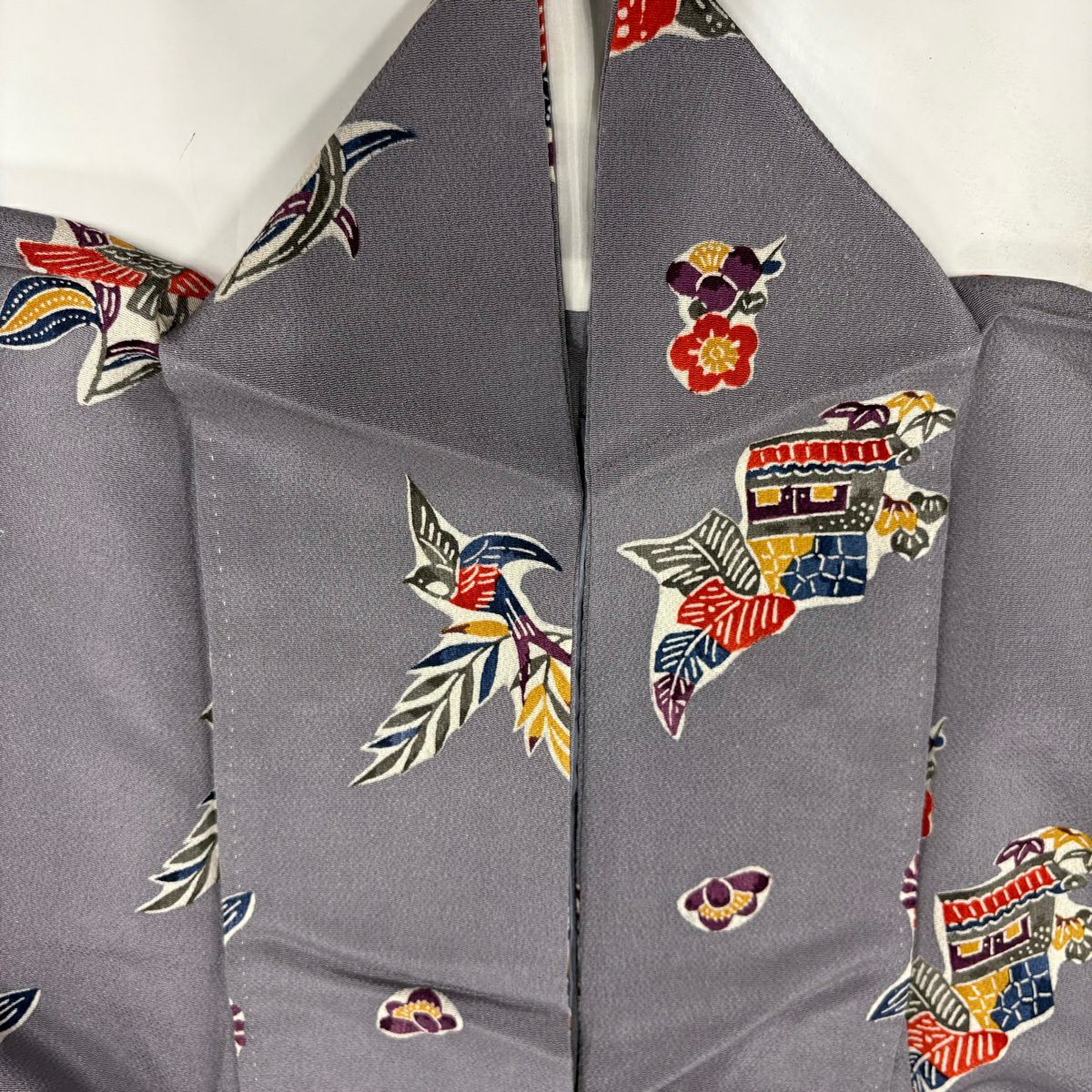 30%OFF 小紋 身丈155cm 裄丈65cm M 袷 胴抜き 花鳥 建物 縮緬 灰紫 正絹 秀品 K30