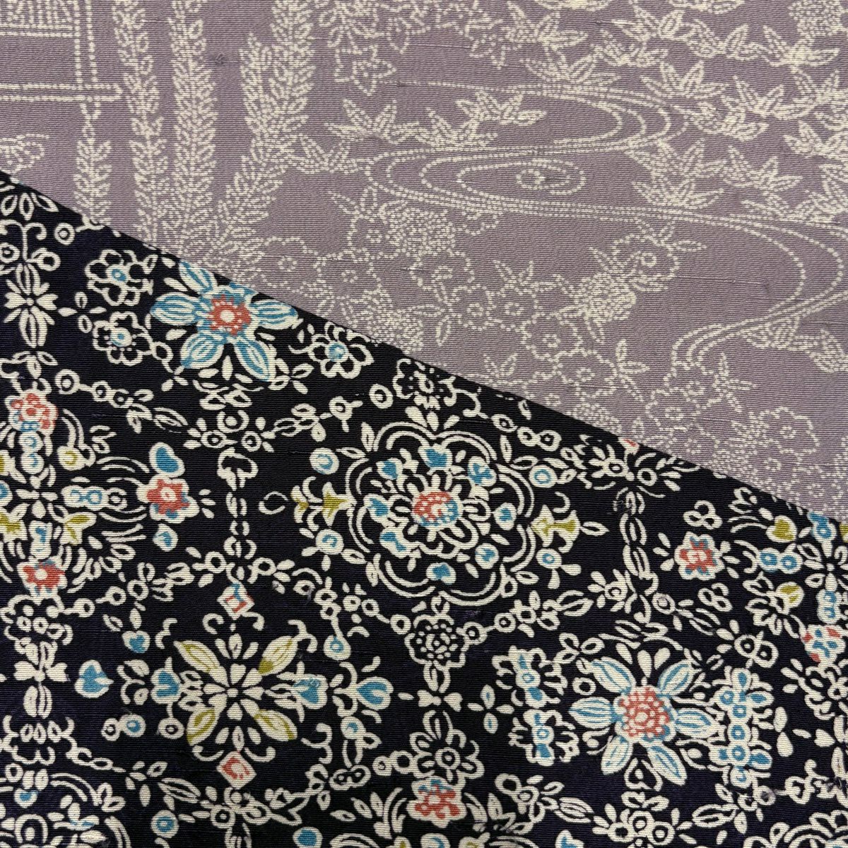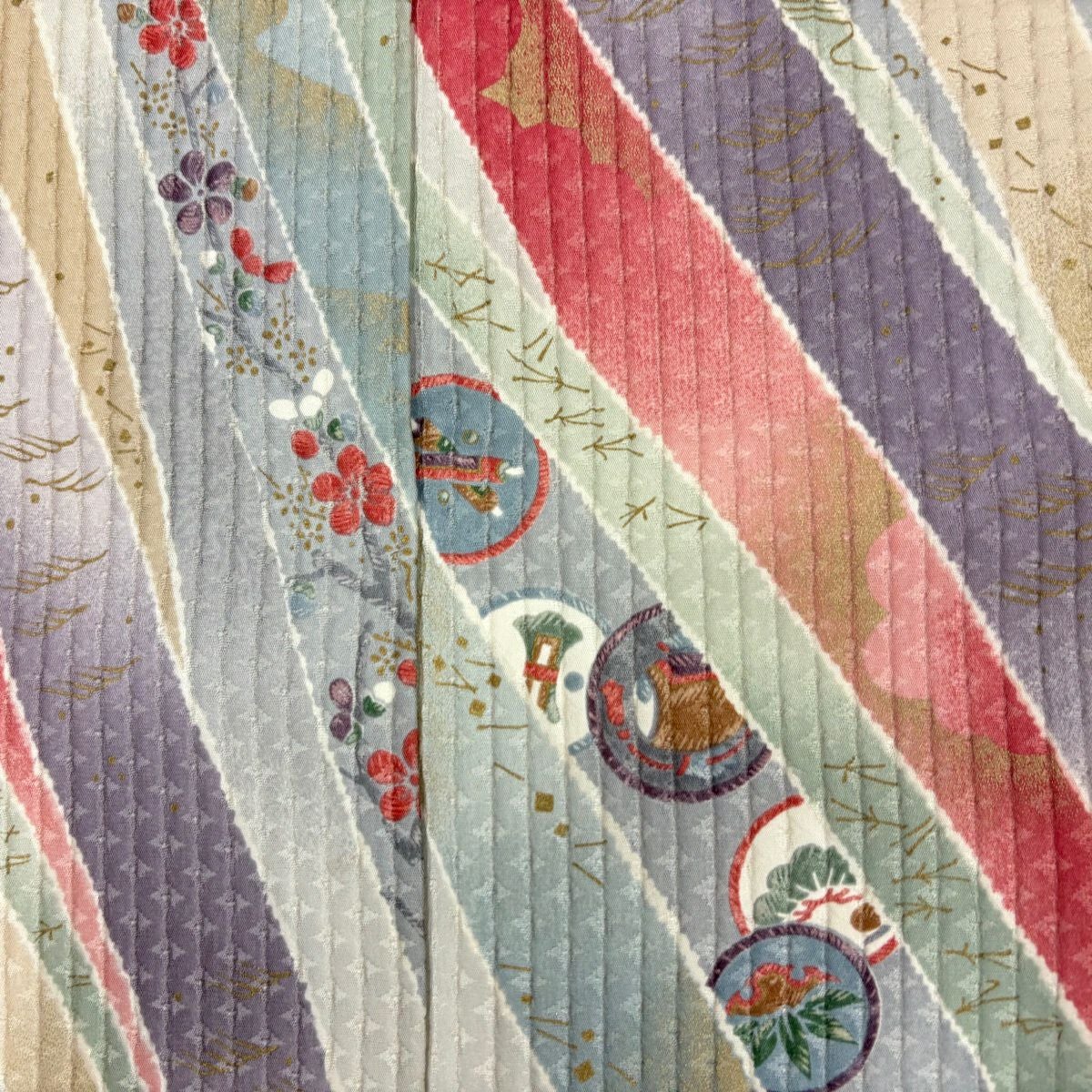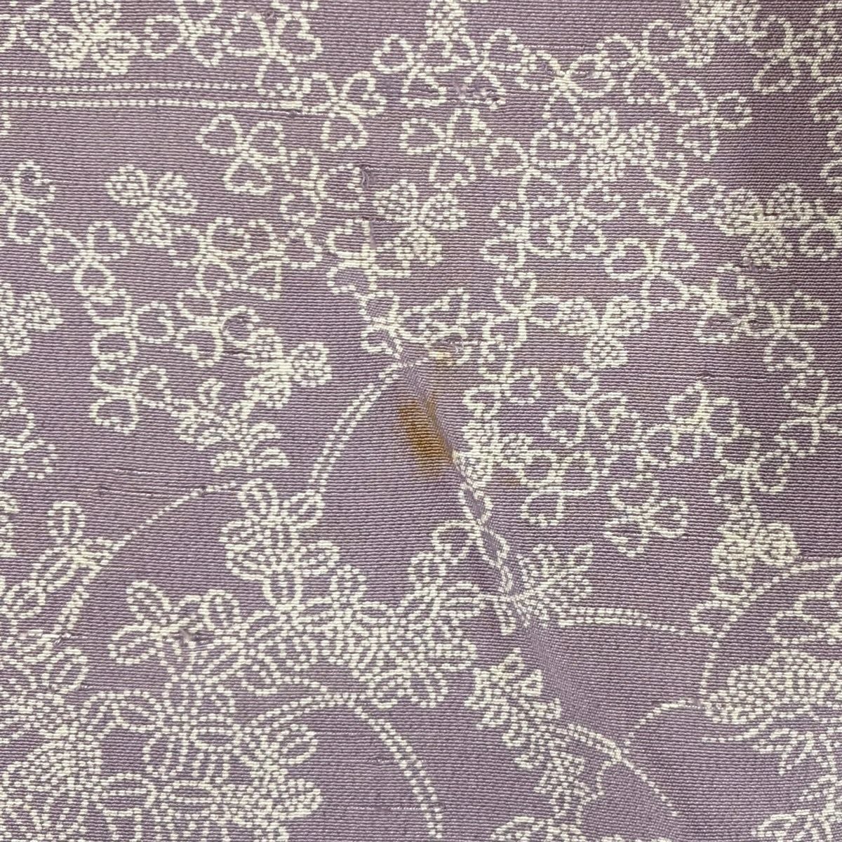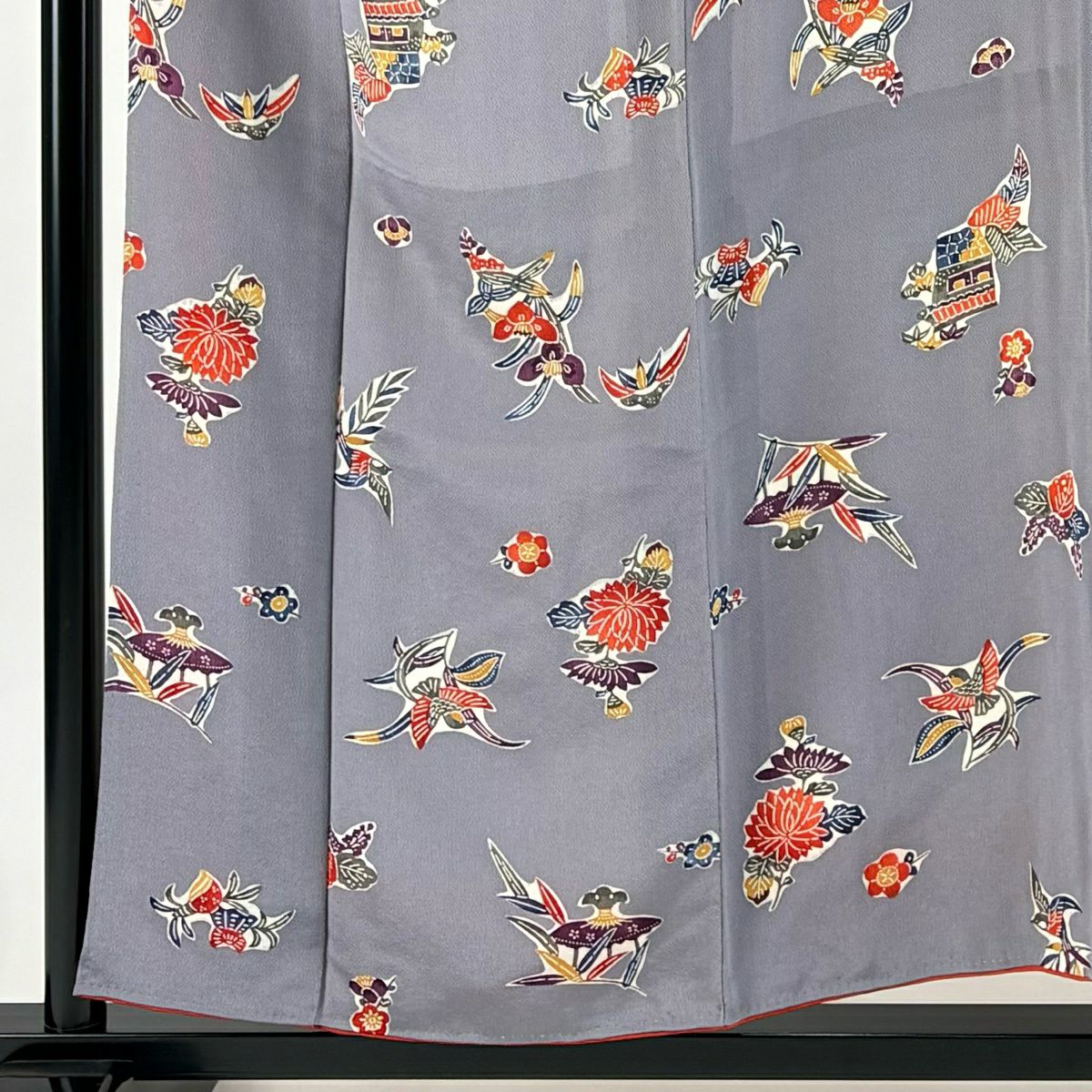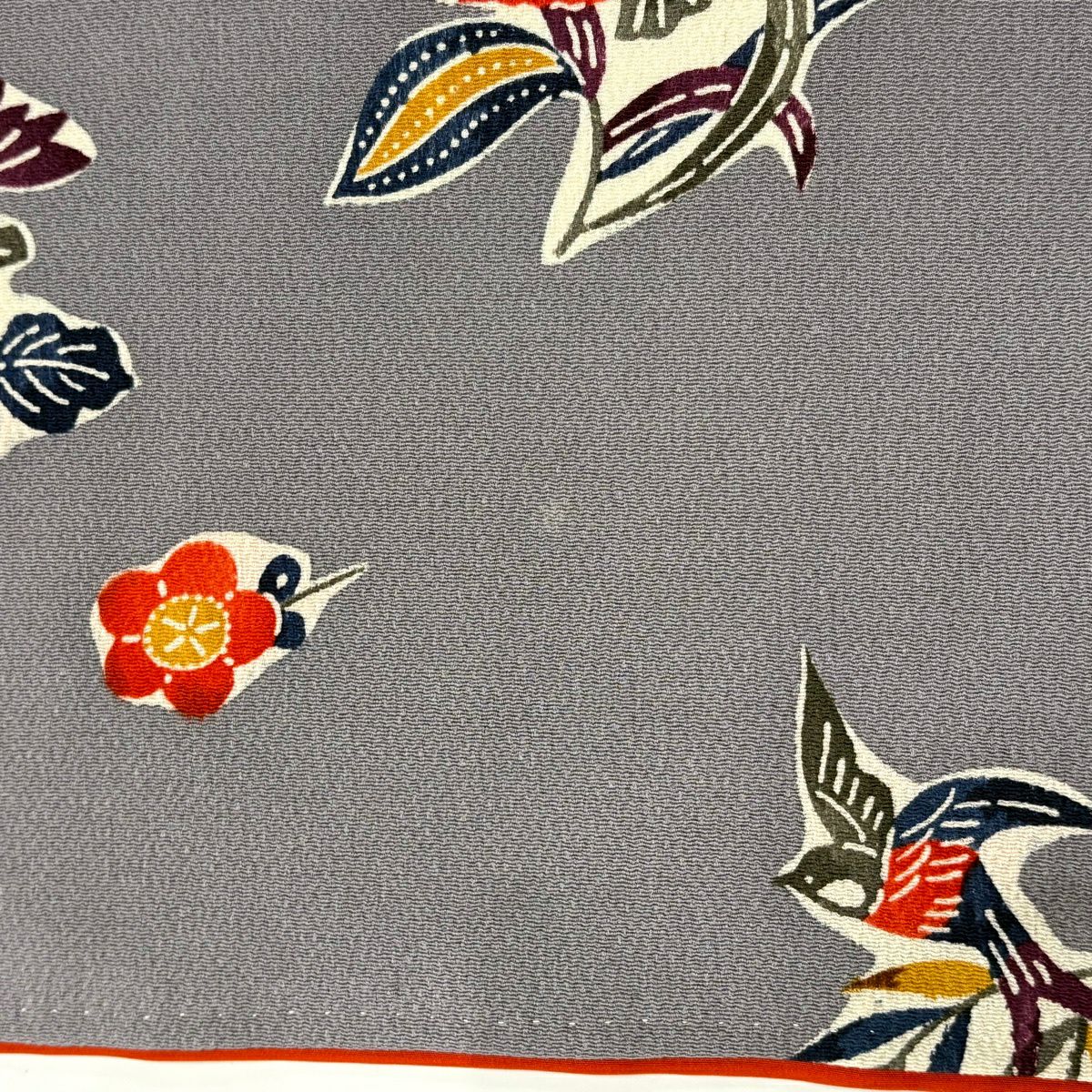 30%OFF 小紋 身丈155cm 裄丈65cm M 袷 胴抜き 花鳥 建物 縮緬 灰紫 正絹 秀品 K30