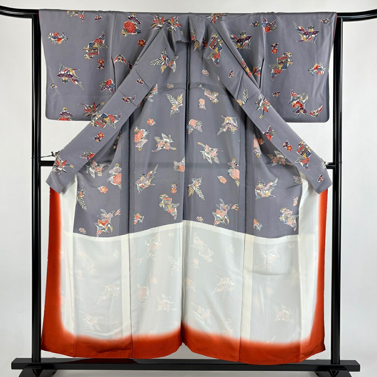 30%OFF 付下げ 身丈156.5cm 裄丈66cm M 袷 裾ぼかし 灰色 正絹 秀品 一つ紋 K30