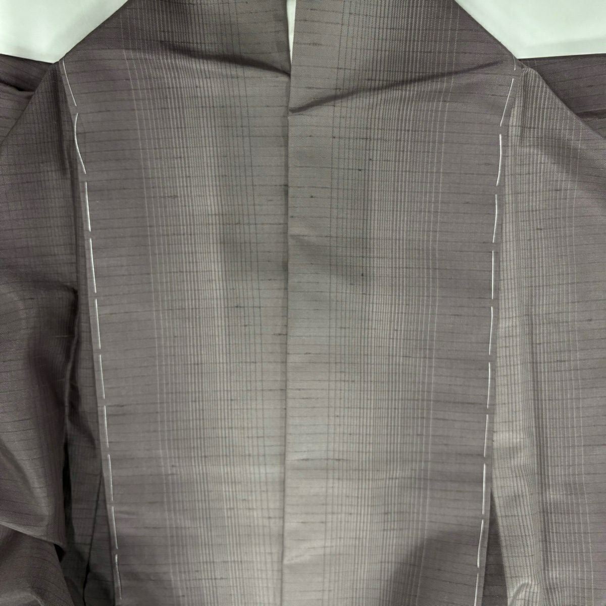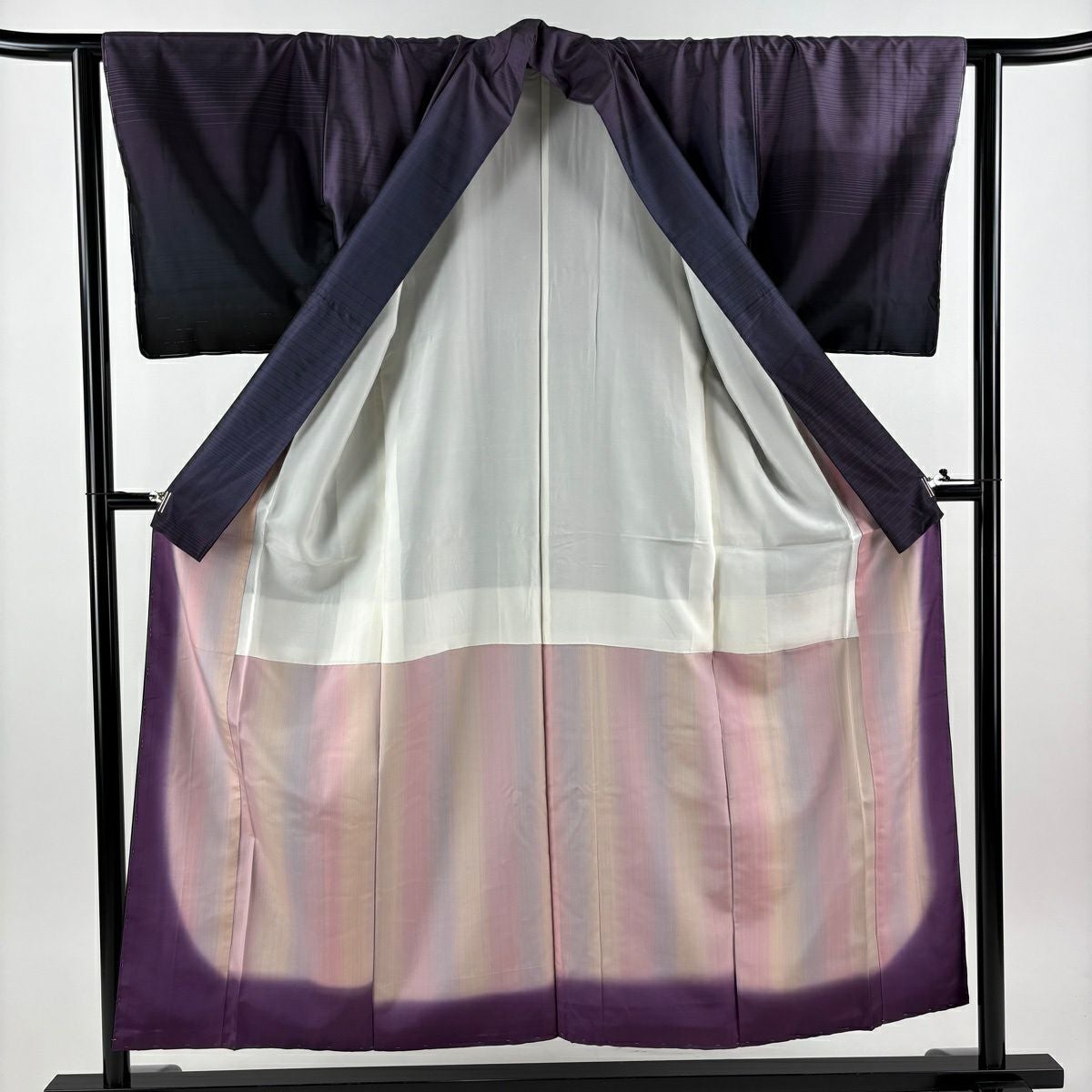 30%OFF 【美品】 紬 身丈158cm 裄丈62.5cm S 袷 縞 ぼかし 灰紫 正絹 秀品 K30