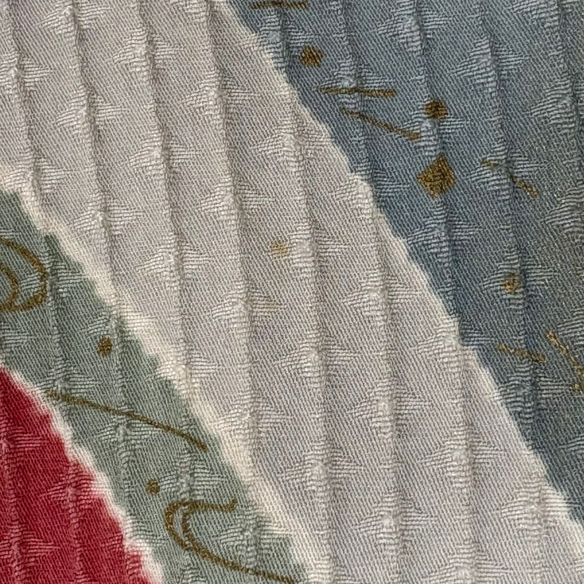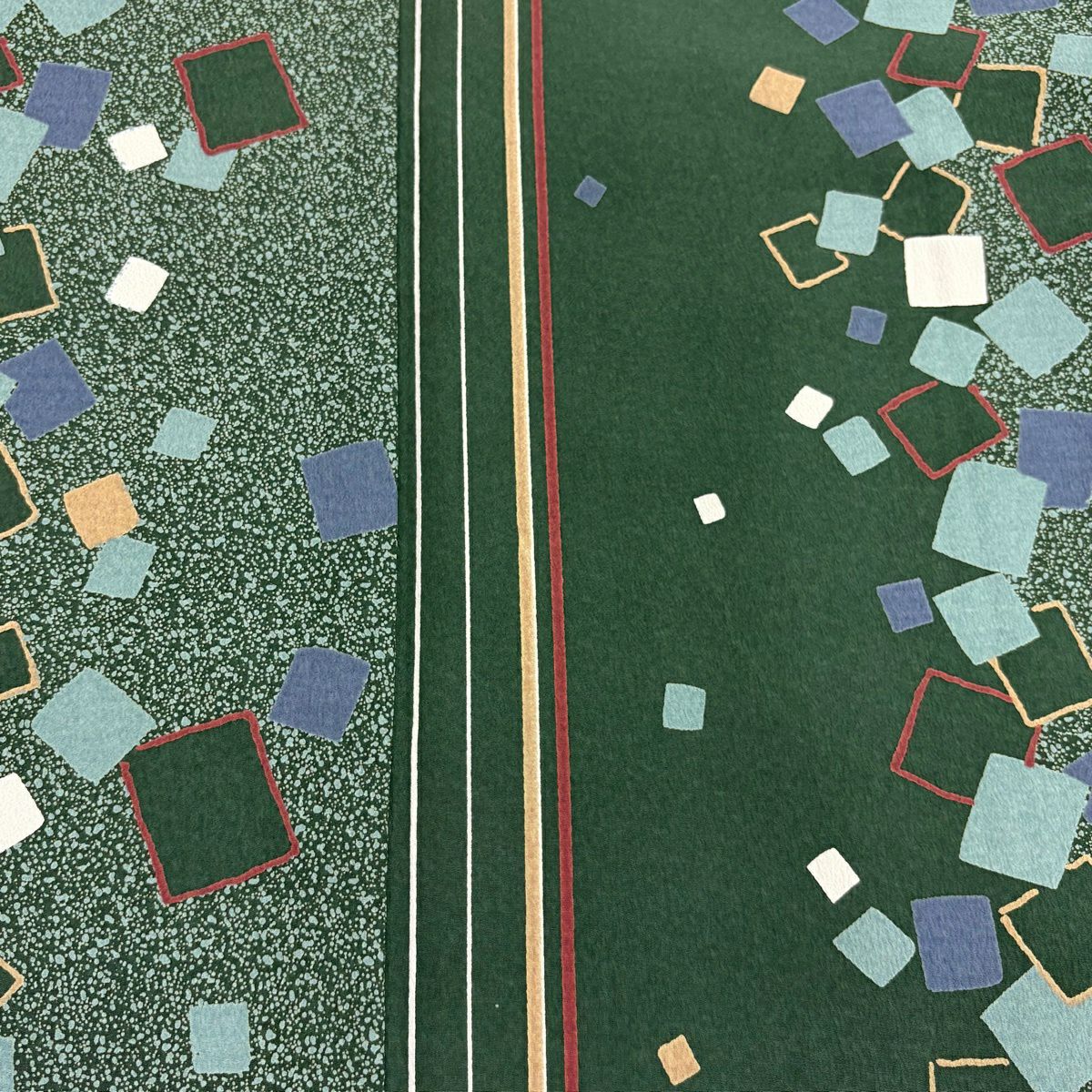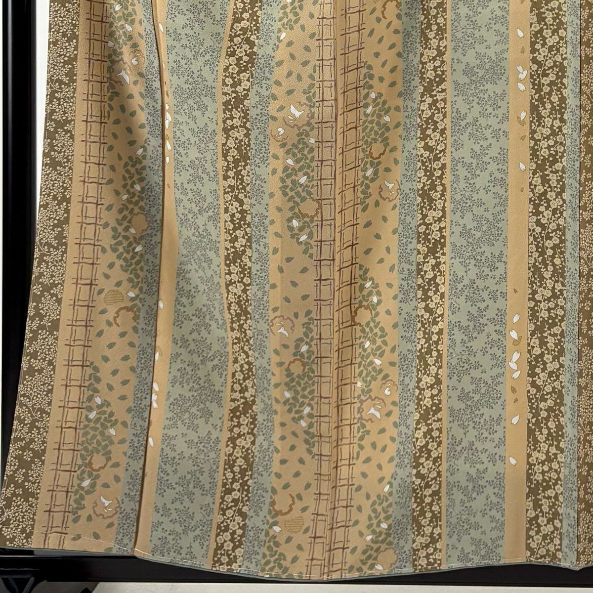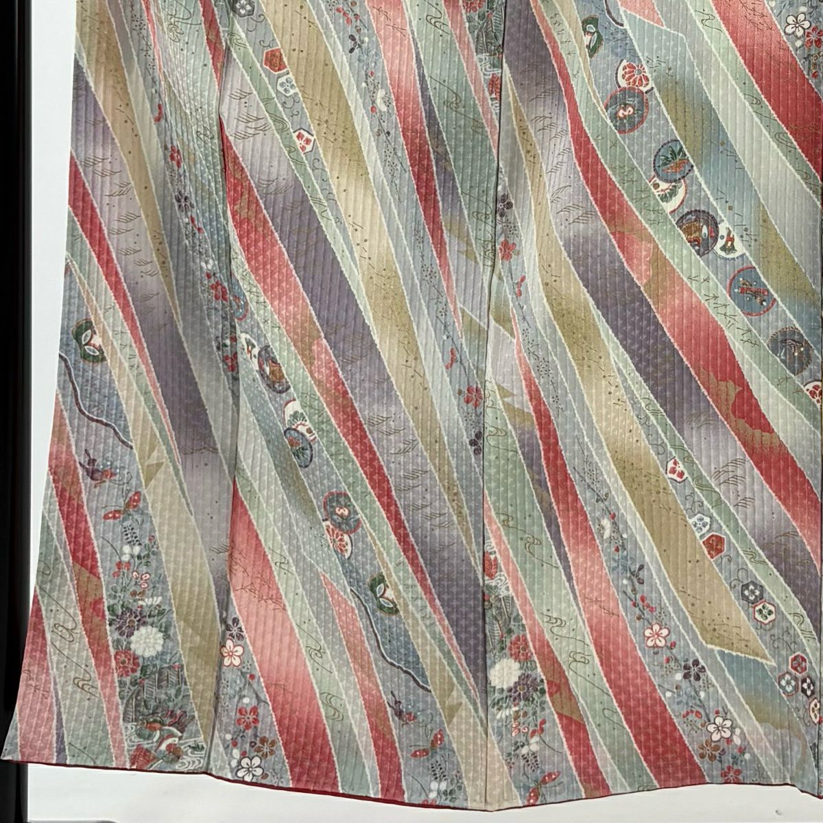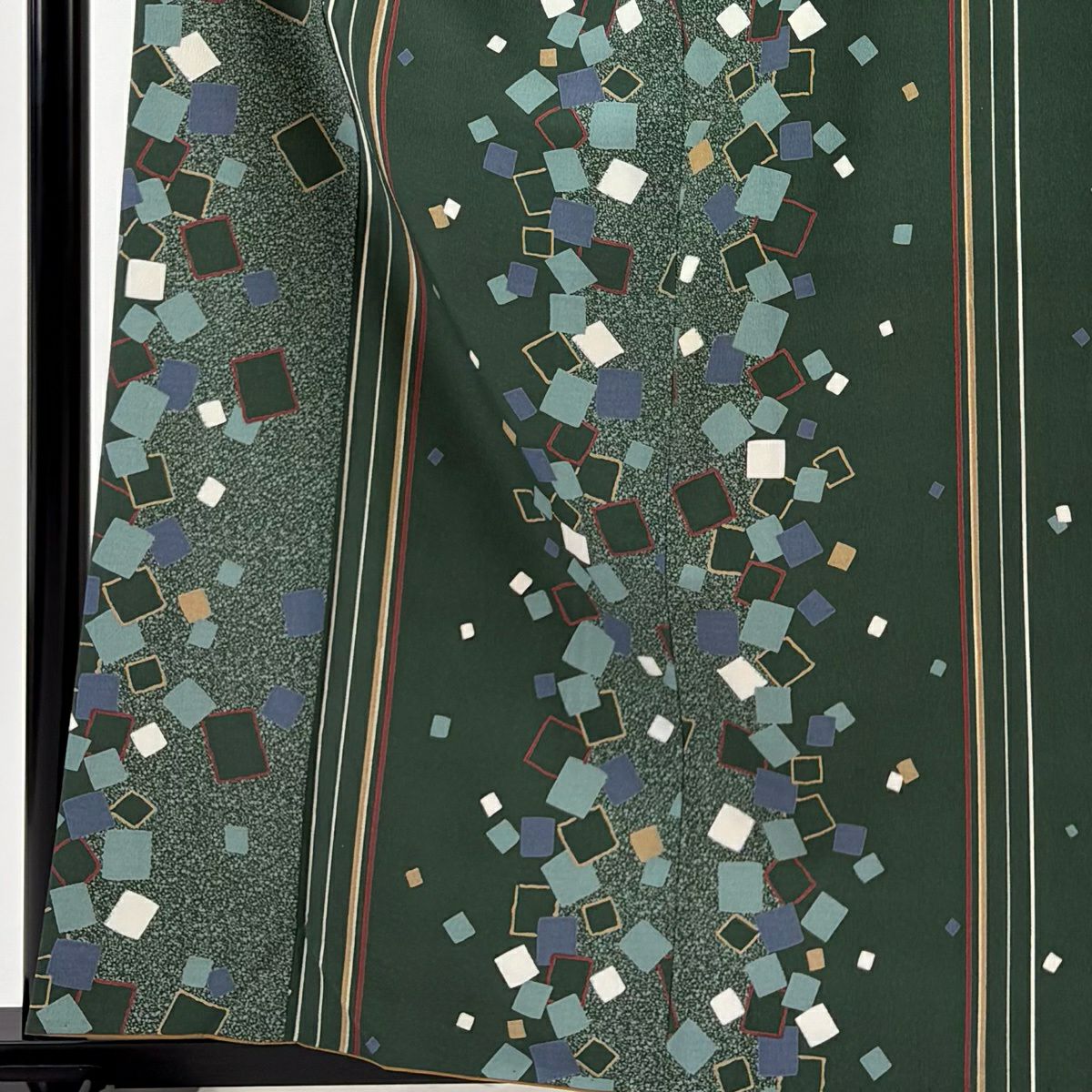 30%OFF 【美品】 小紋 身丈160cm 裄丈69cm L 袷 縦縞 幾何学 灰緑 化繊 秀品 K30