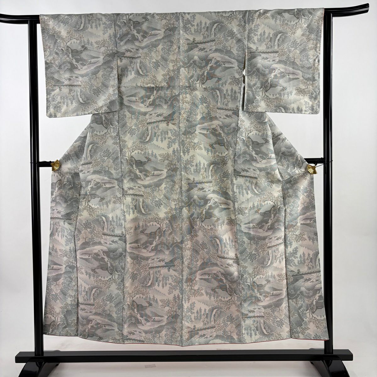 30%OFF 【美品】 紬 身丈154.5cm 裄丈63cm S 袷 滝 橋 クリーム 正絹 秀品 K30