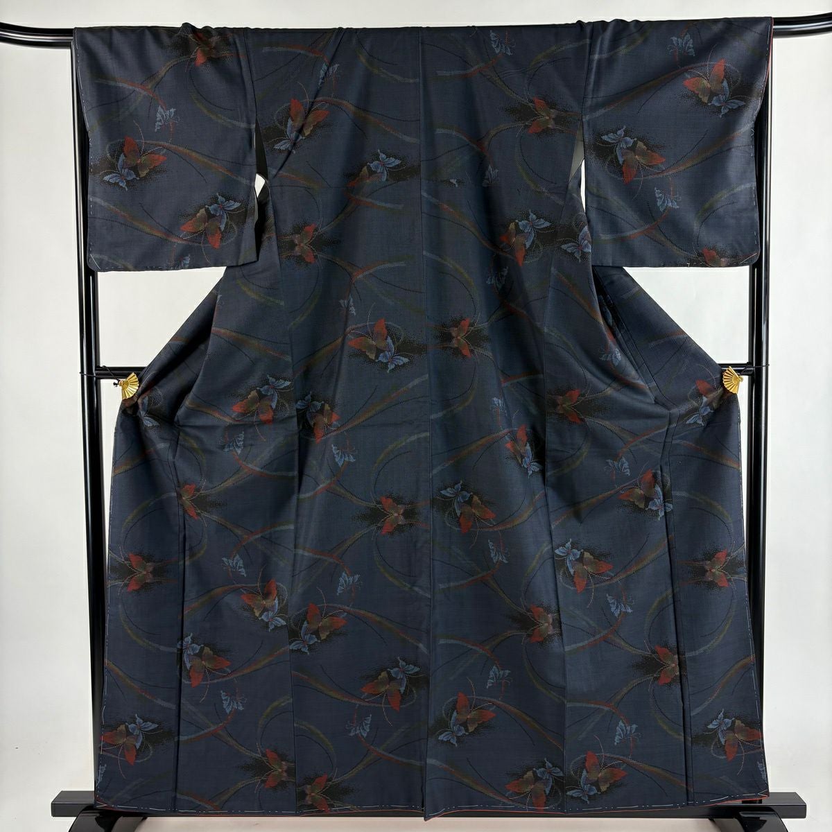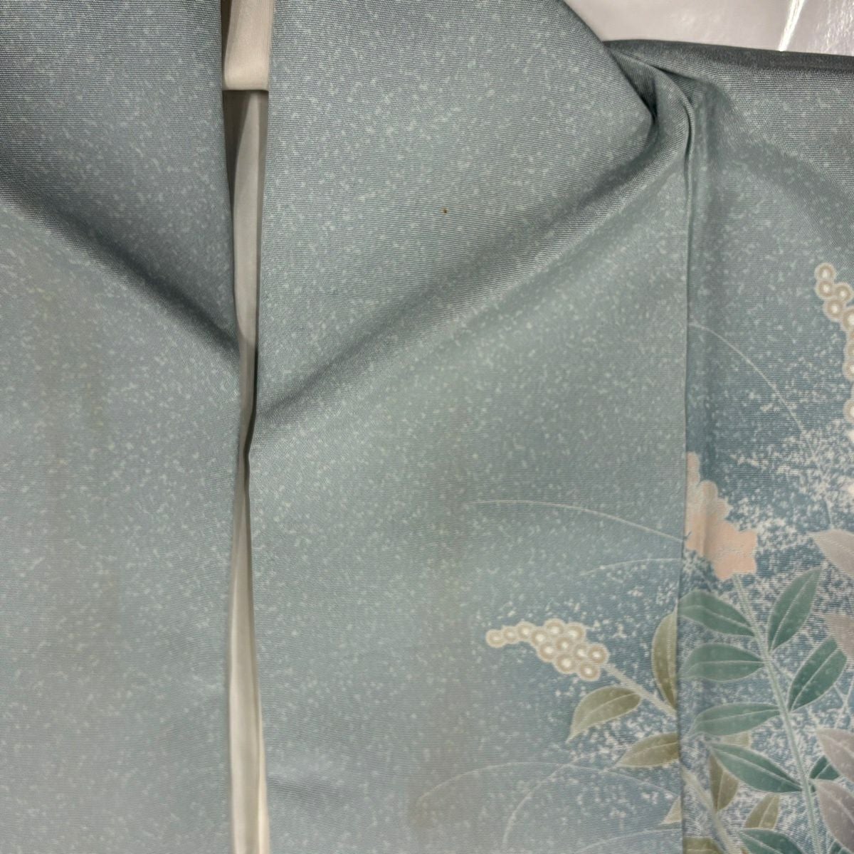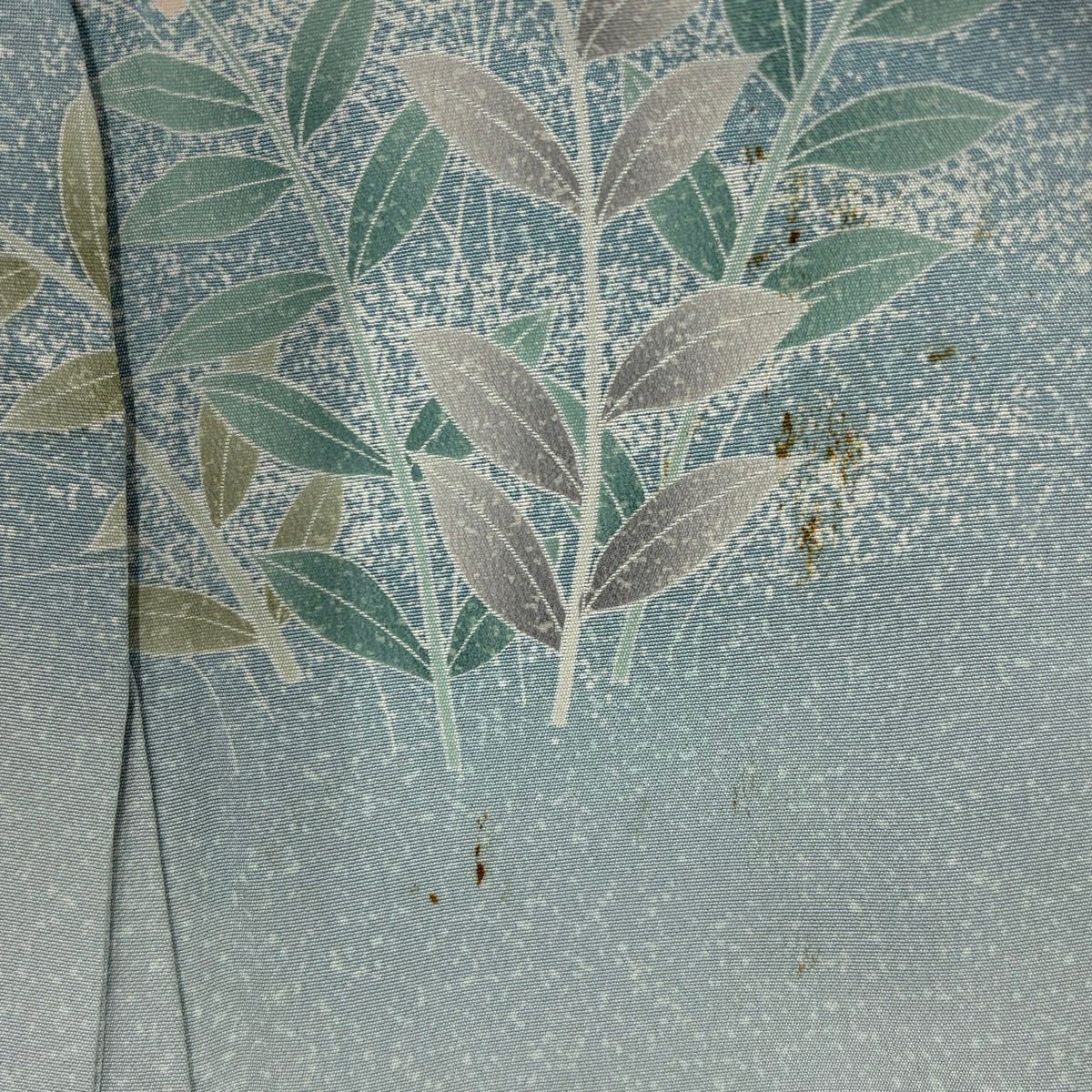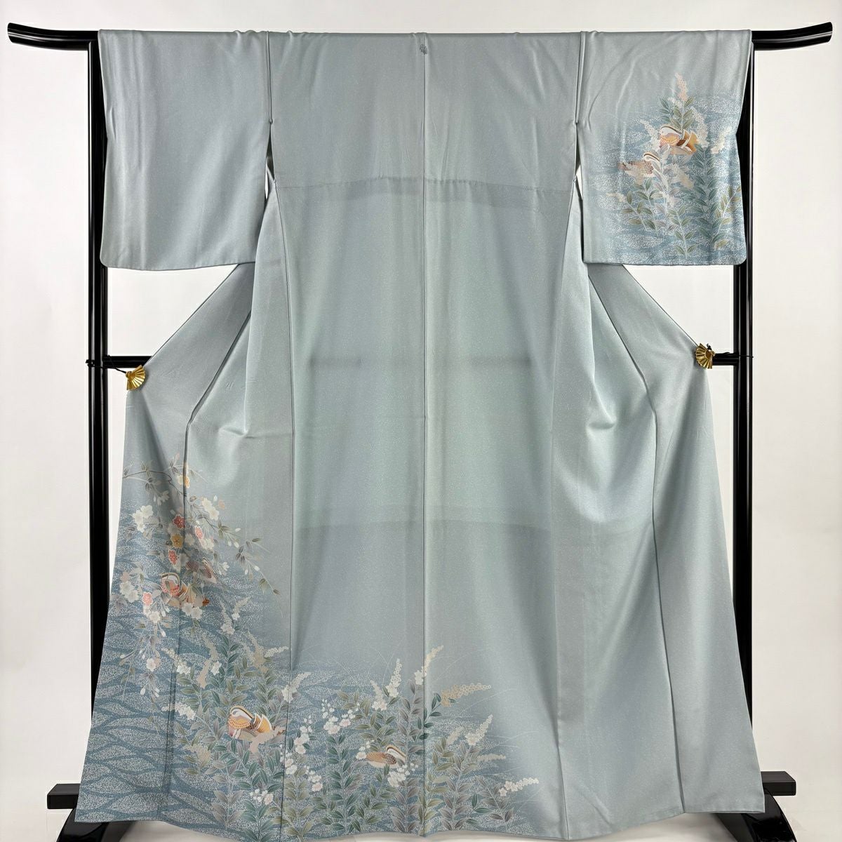 30%OFF 【美品】 小紋 身丈165cm 裄丈67cm M 袷 草花 流水 青灰色 正絹 秀品 K30