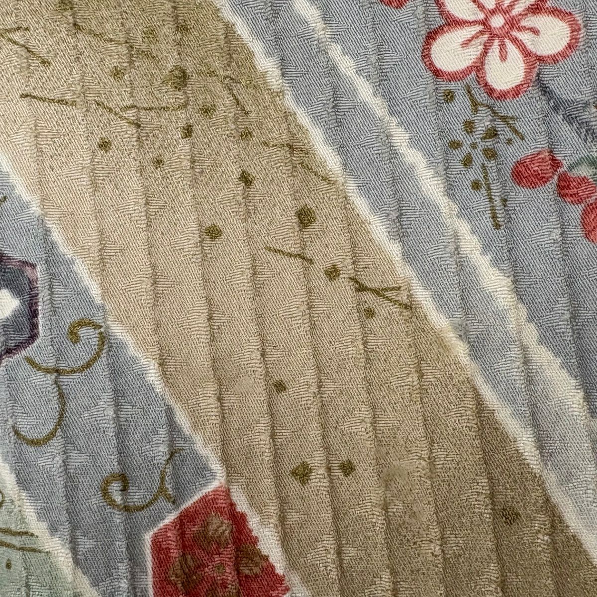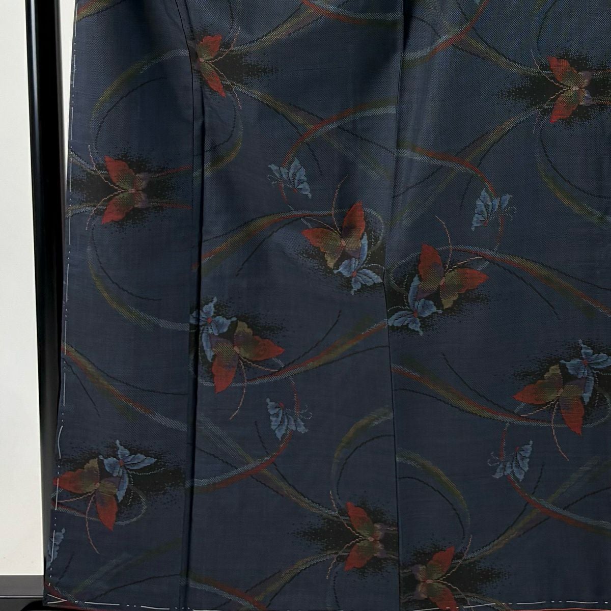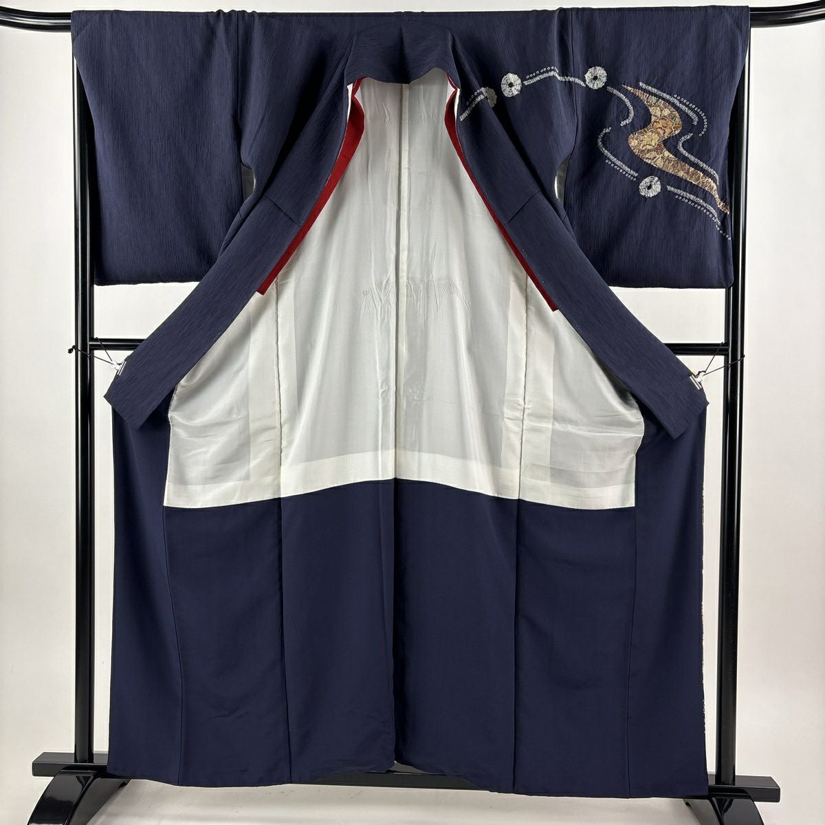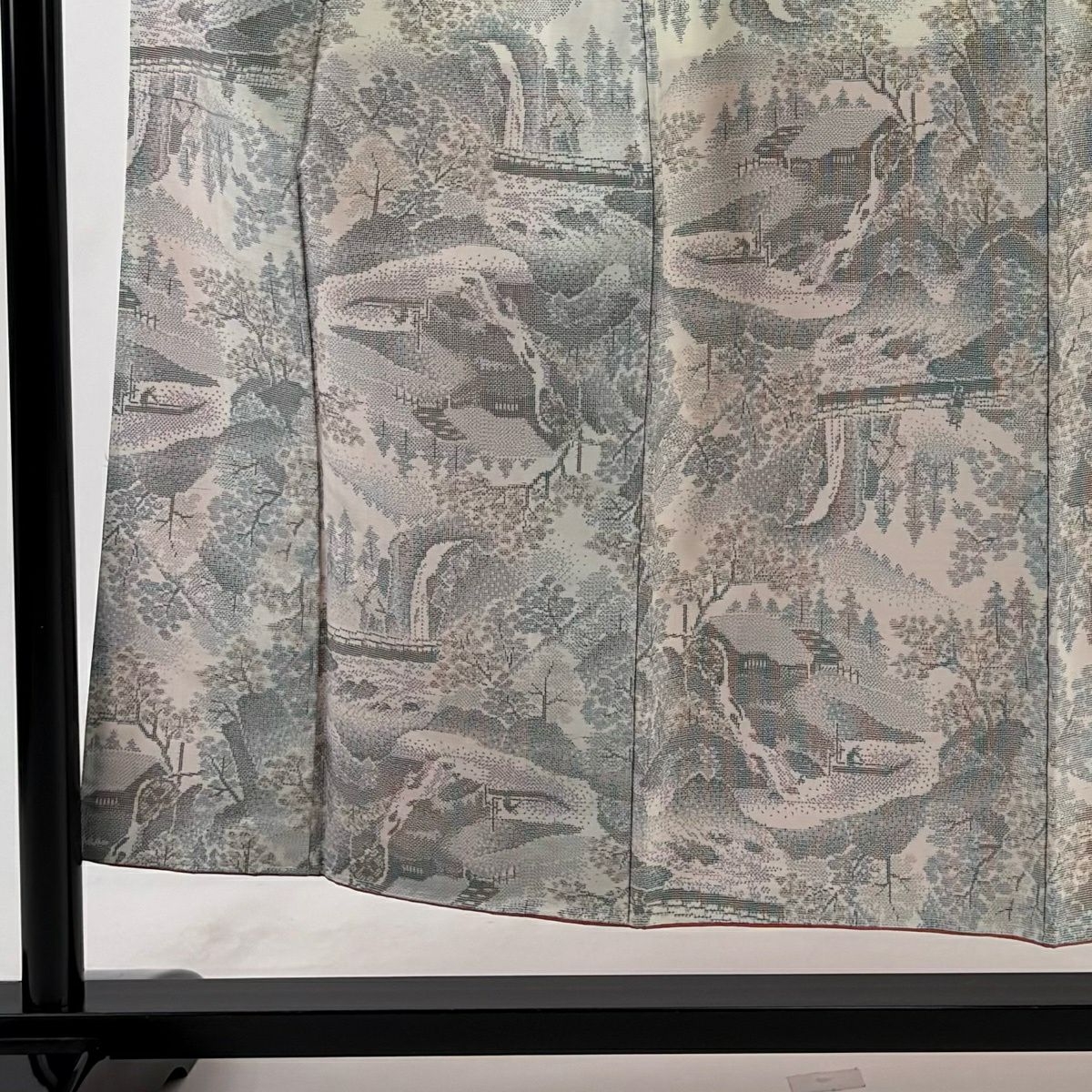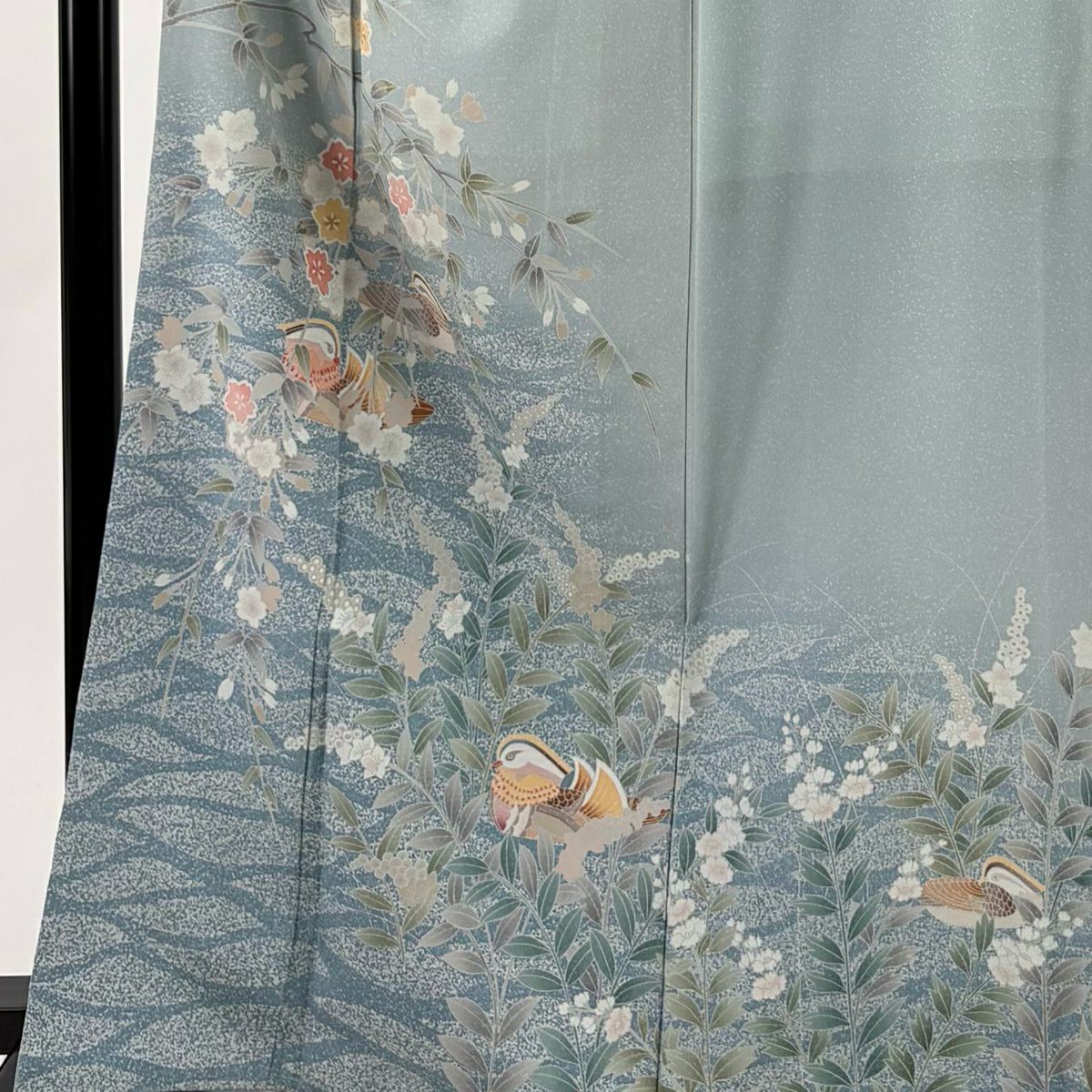 30%OFF 【美品】 小紋 身丈165cm 裄丈67cm M 袷 草花 流水 青灰色 正絹 秀品 K30